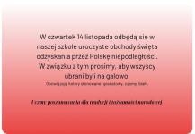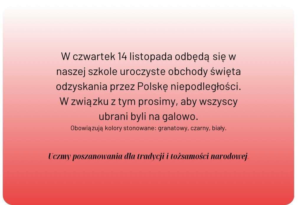Jesteś tutaj: Strona główna  › Aktualności  › Apel z okazji Dnia Niepodległości