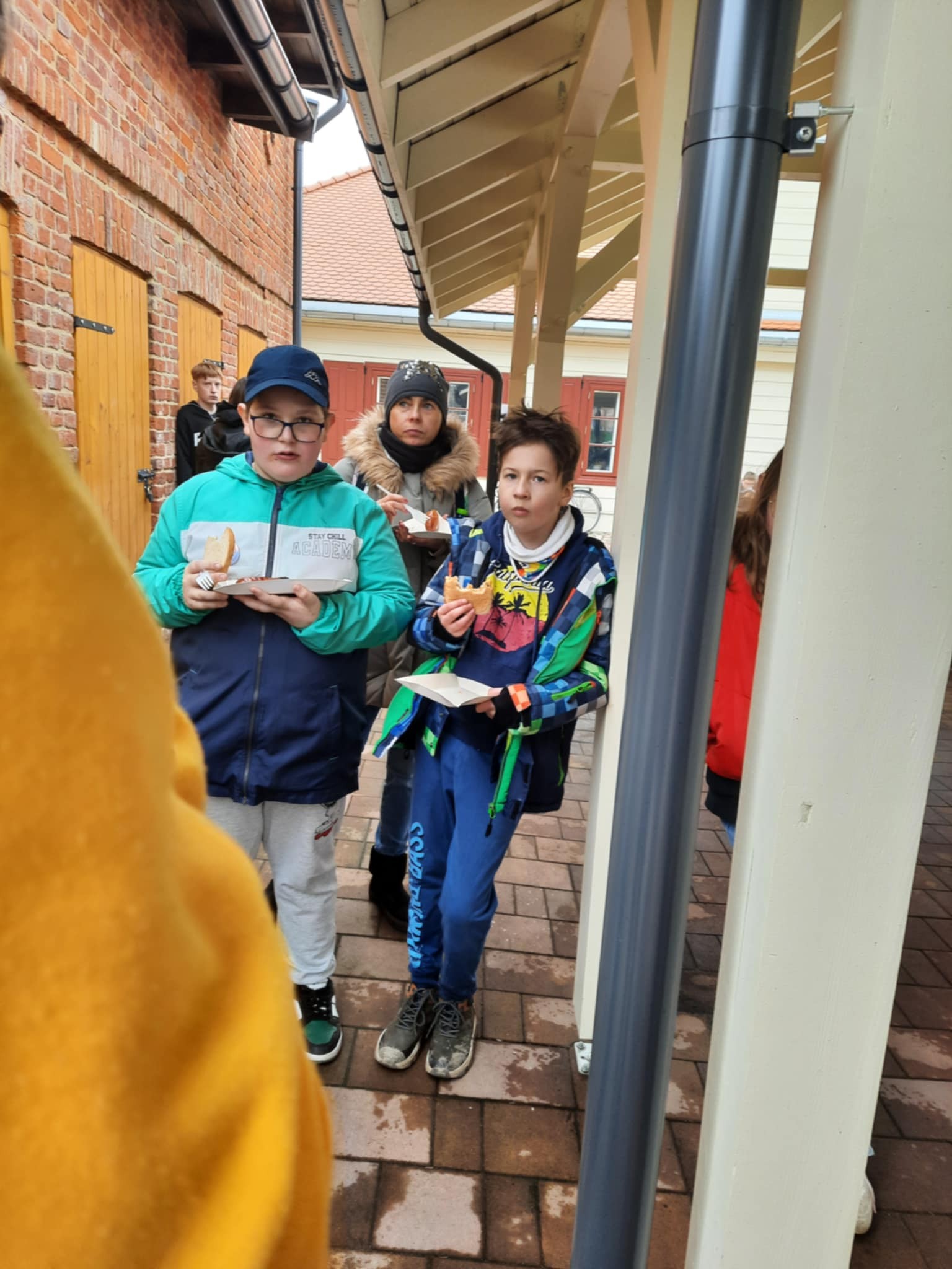 Tam czekała na nas kiełbaska, tosty oraz hciepła herbata.