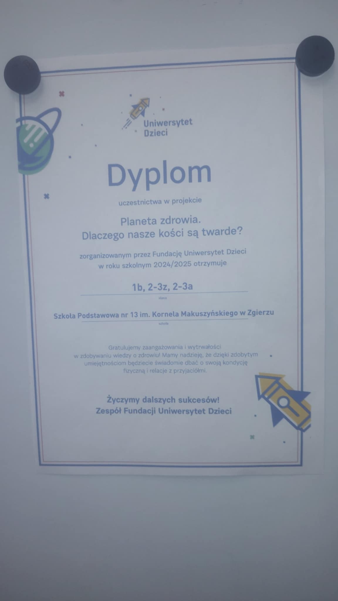 Klasy 1-3 z powodzeniem ukończyły ogólnopolski projekt edukacyjny Uniwersytetu Dzieci w Klasie o tematyce prozdrowotnej Planeta Zdrowia. Podczas realizacji projektu uczyliśmy się dbać o nasz dobrostan, pracowaliśmy z emocjami, odkrywaliśmy rolę poszczególnych narządów naszego ciała, łączyliśmy kreatywne zdobywanie wiedzy z dobrą zabawą.