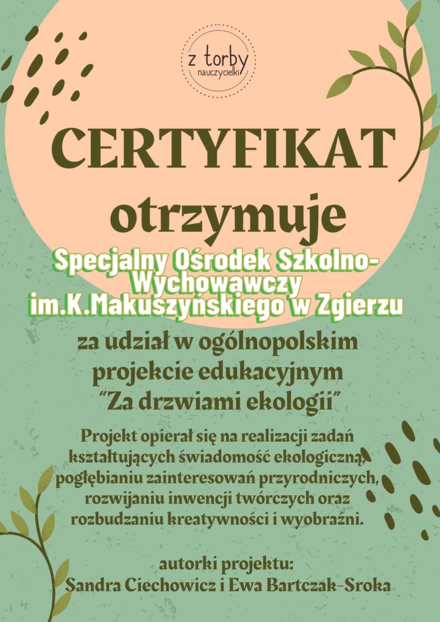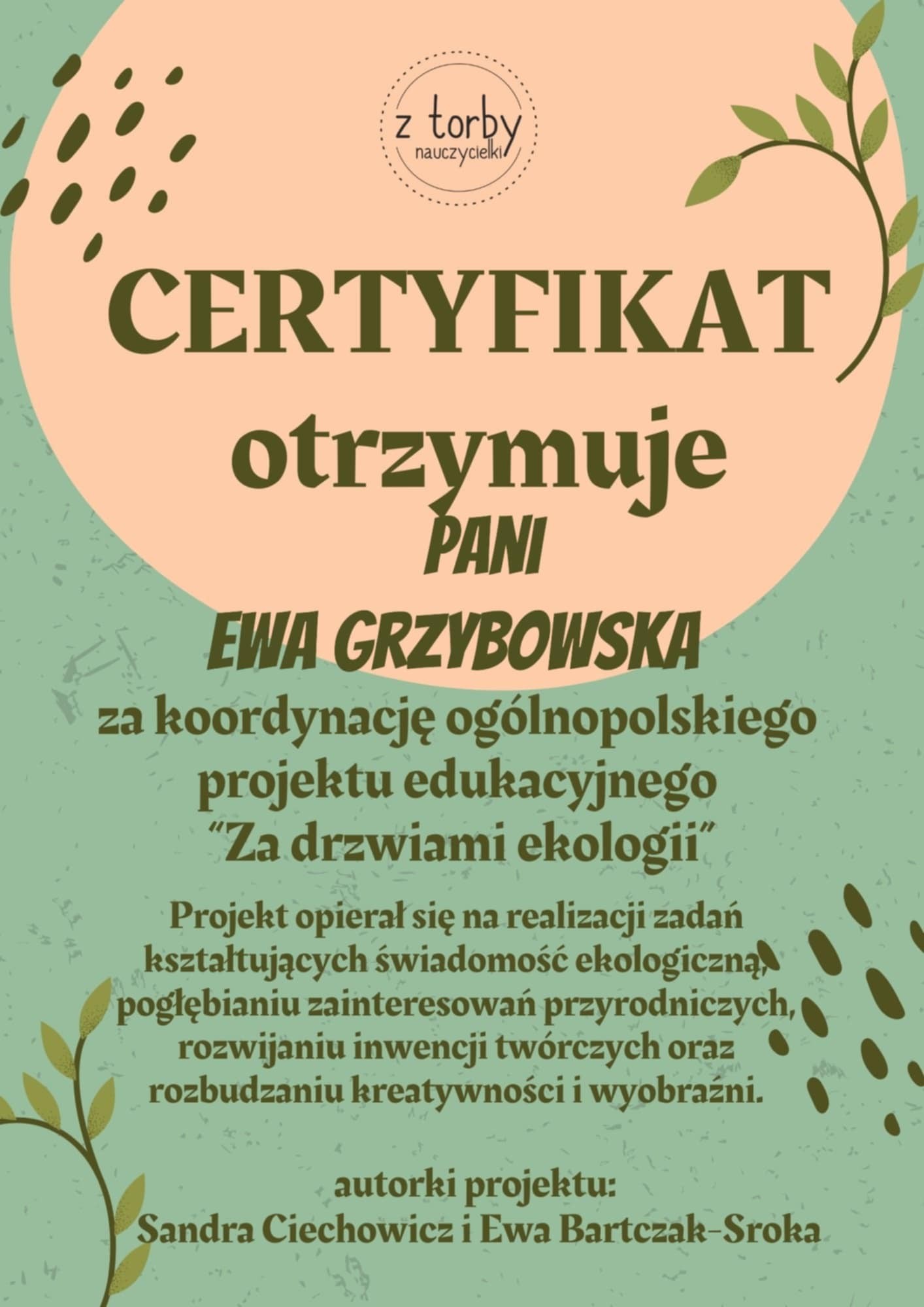 Serdecznie dziękujemy wszystkim, którzy zaangażowali się w nasz projekt ekologiczny! Dzięki Waszej pracy i wkładowi, nasza placówka z dumą otrzymała certyfikat, a my cieszymy się, że wspólnie możemy dbać o naszą planetę, wpajając najmłodszym przedszkolakom i uczniom wartość ekologii w codziennym życiu. Brawo my!