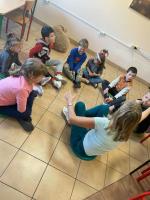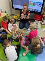 Grupa Pszczółek i Delfinków uczestniczyła w zajęciach o temacie "Żabka"