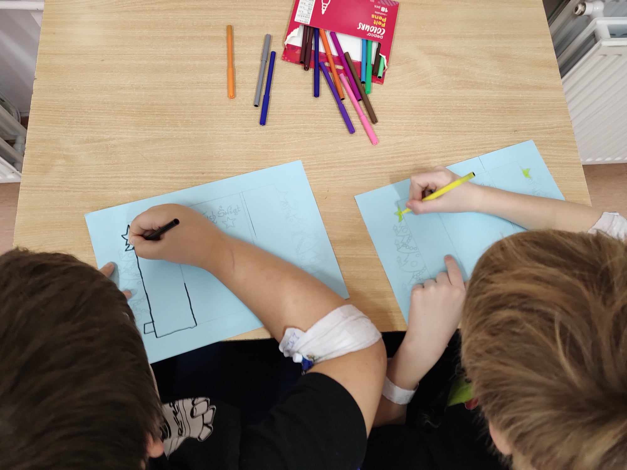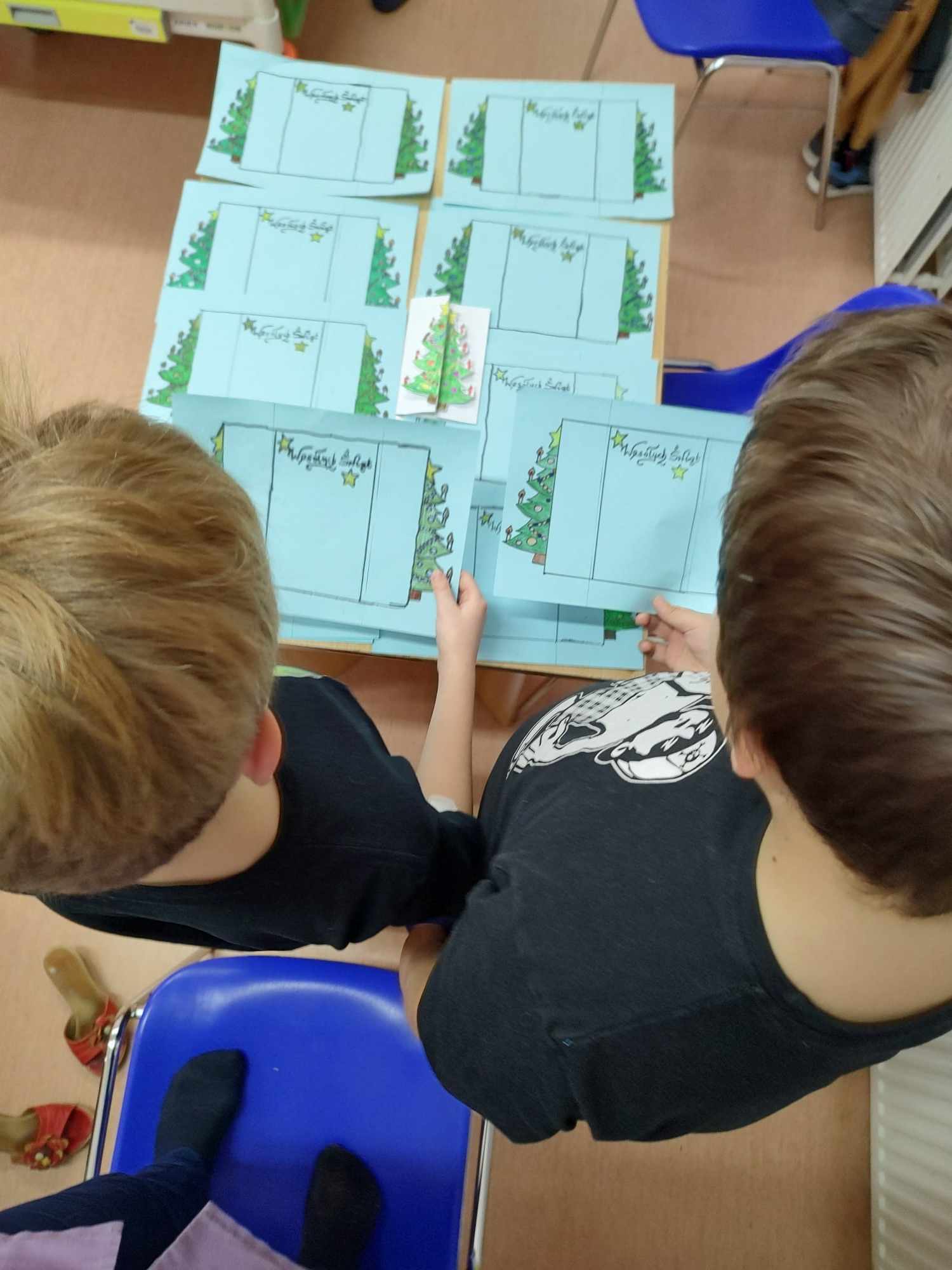 W oddziale pediatrycznym - pracowicie. Święta Bożego Narodzenia się zbliżają, a chore dzieci o starszych i chorych osobach pamiętają, aby przesłać serdeczne życzenia i kartki świąteczne przez siebie wykonane przekazać chorym dla ich czasu umilenia.