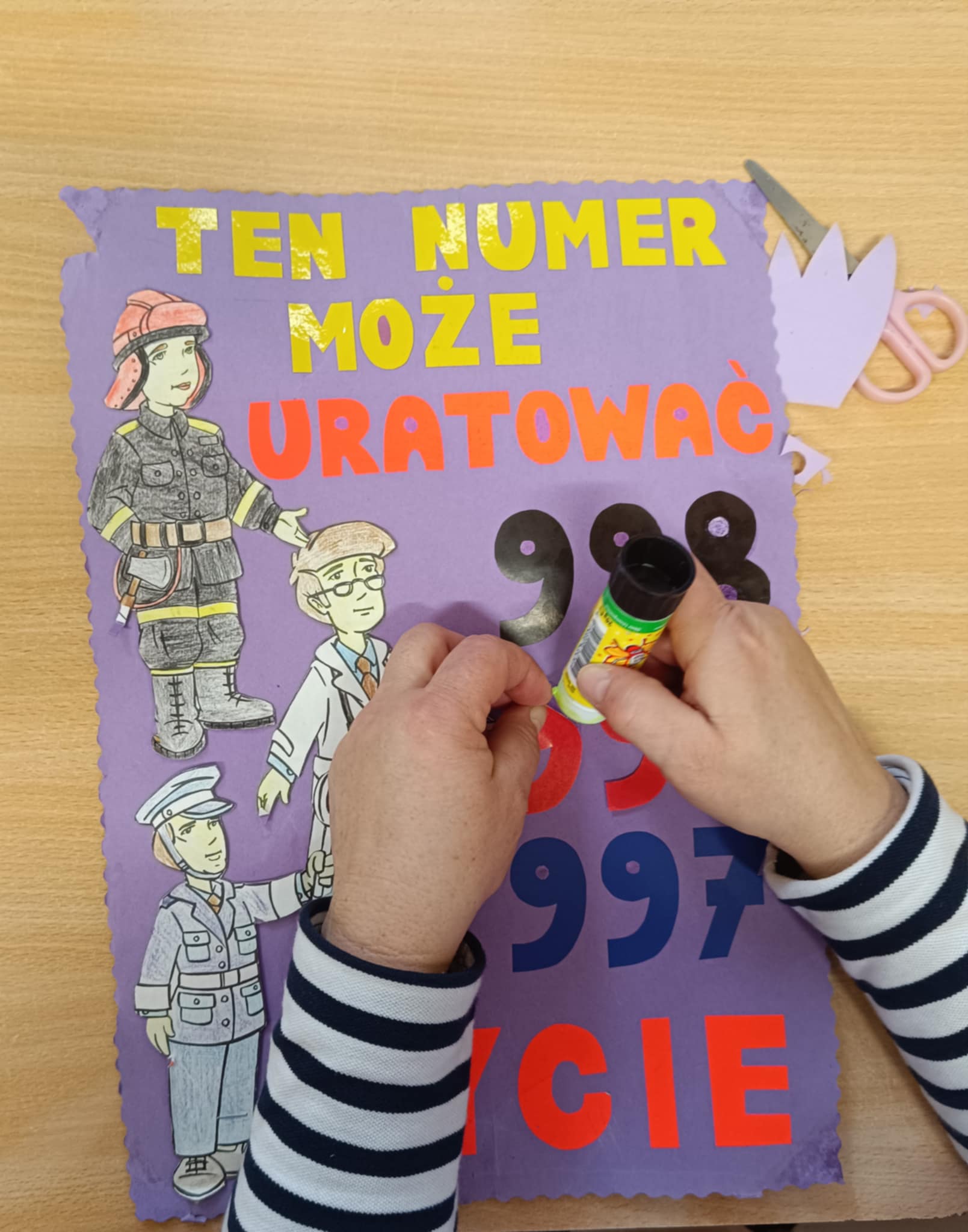 Przypadający na 11 lutego Dzień Numeru Alarmowego 112 to doskonała okazja, by powtórzyć zasady wzywania pierwszej pomocy. Dlatego przedszkolaki i dzieci z klasy III "Grupy szpitalnej" wzięły udział w zajęciach trenujących pewność siebie w nieprzewidzianych sytuacjach i umiejętność przewidywania konsekwencji różnych zachowań. Dzieci obejrzały film edukacyjny "Karolek i numer alarmowy 112", z którego dowiedziały się kiedy i jak należy używać numeru 112. Utrwaliły 5 kroków, jak prawidłowo wezwać pomoc i wykonały pracę plastyczną.