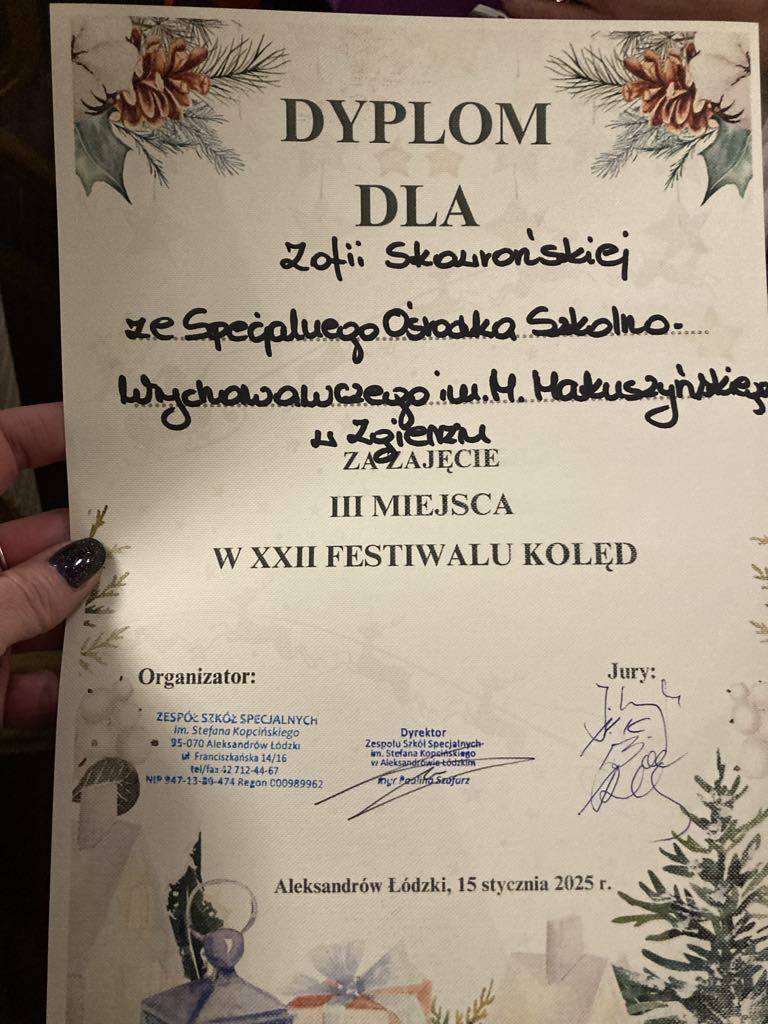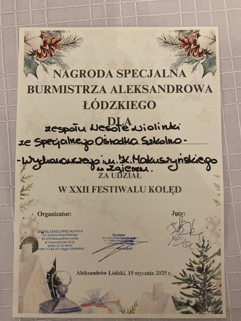 W tym roku nasze "Wesołe Wiolinki" za pastorałkę "Wesołych świąt" otrzymały Nagrodę Specjalną Pana Jacka Lipińskiego - Burmistrza Aleksandrowa Łódzkiego.