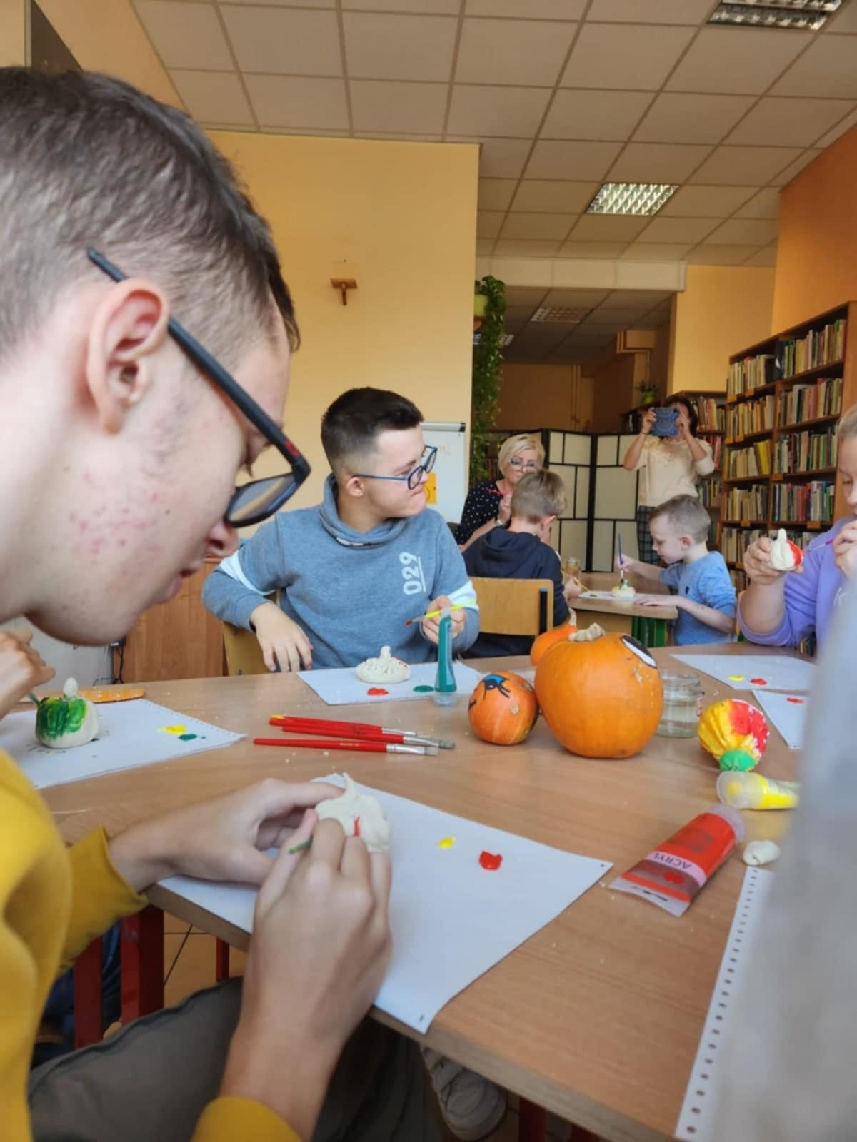 Kolejne zajęcia w Miejsko - Powiatowej Bibliotece za nami. Tym razem świętowaliśmy Dzień Dyni. Klasy 4-7 d i 5 k miały okazję stworzyć własne dynie z masy solnej, wysłuchać opowiadania oraz zwiedzić bibliotekę.