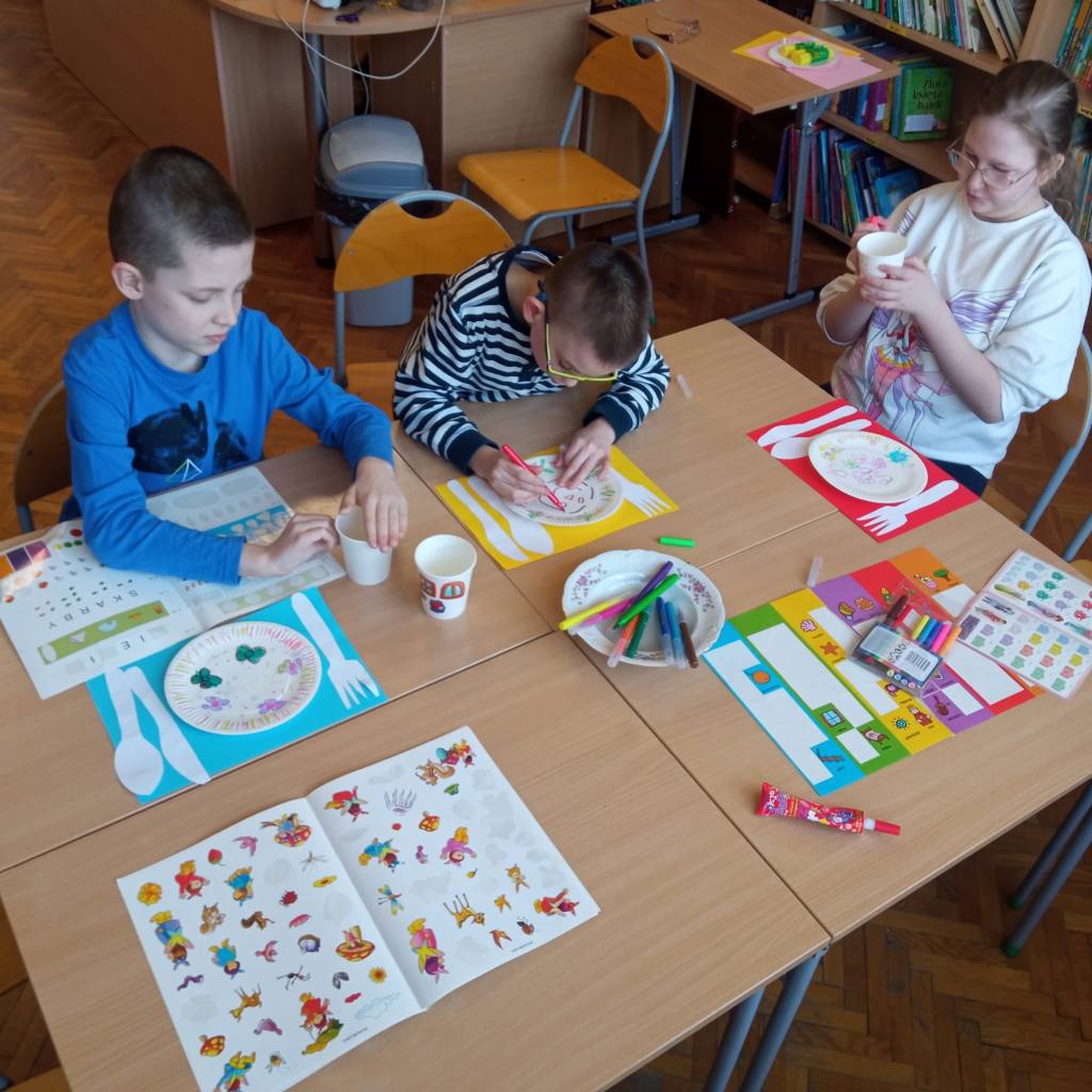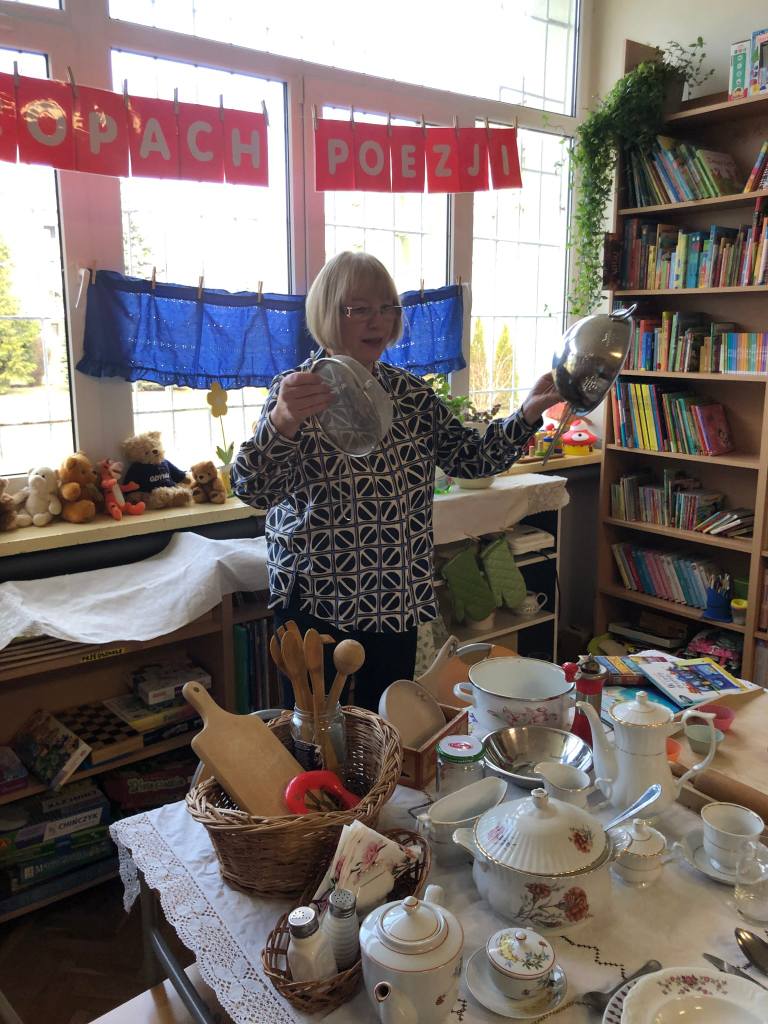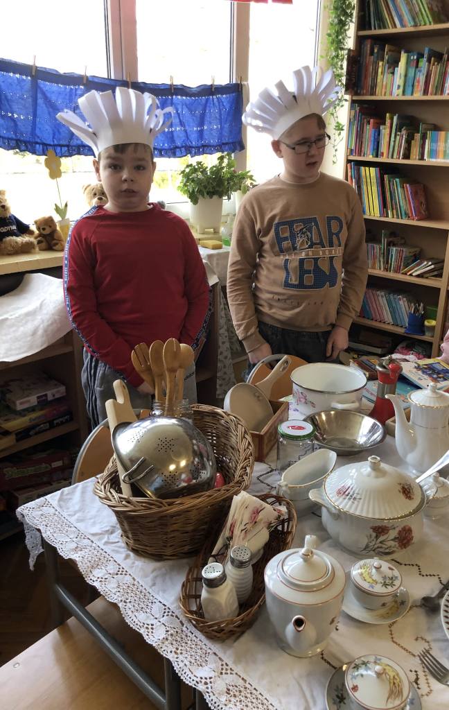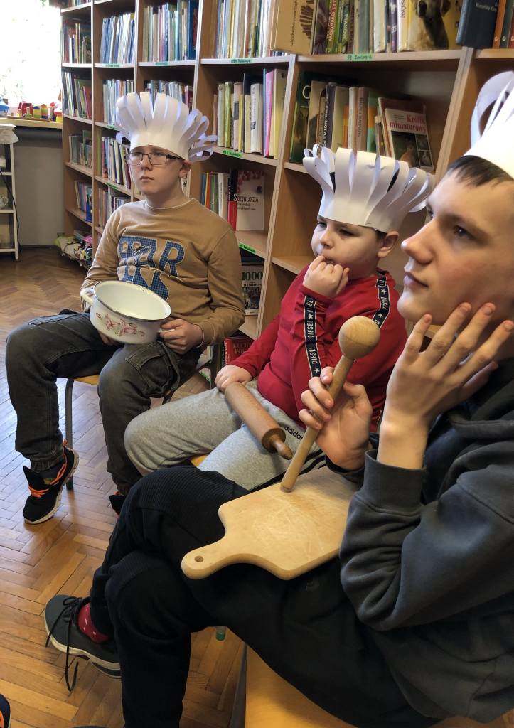 W ostatnich dniach dość niecodzienny widok można było ujrzeć w naszej bibliotece szkolnej. Wnętrze wypożyczalni na pewien czas zmieniło się bowiem w… kuchnię. Wszystko to za sprawą przyłączenia się naszej placówki do ogólnoszkolnej akcji promującej czytelnictwo wśród dzieci i młodzieży MARATON LITERACKI organizowanej przez Centrum Rozwoju Edukacji Województwa Łódzkiego w Zgierzu – Biblioteka Pedagogiczna w Zgierzu. Nietypowy wystrój wnętrza biblioteki związany jest z realizacją zajęć o poezji ukrytej w naszej codzienności pod hasłem NA TROPACH POEZJI. Źródłem inspiracji do przedsięwzięcia stały się różnorodne propozycje literackie ze zbiorów naszej biblioteki, które w sposób oryginalny i humorystyczny opisują przedmioty codziennego użytku. Rekwizyty zgromadzone w zaaranżowanym kąciku kuchennym, wysłuchane teksty literackie oraz zabawy edukacyjne dały uczniom sposobność do rozwijania umiejętności słuchania ze zrozumieniem oraz poszerzyły słownictwo i wiedzę odnośnie przedmiotów stanowiących wyposażenie kuchni. W dalszej części zajęć uczestnicy rozpoczęli pracę nad LAPBOOKIEM – kreatywną i interaktywną książką związaną z omawianą tematyką. Dzieci rysowały, kolorowały i wycinały elementy kuchennego wyposażenia. Wybierały fragmenty utworów, które najbardziej się im spodobały, a następnie umieszczały komponenty w wspólnie tworzonej teczce tematycznej. Opisane zajęcia to początek MARATONU LITERACKIEGO w naszej szkole. Kontynuacją akcji będzie konkurs dla klas na opracowanie kolejnych LAPBOOKÓW inspirowanych poezją ukrytą w naszej codzienności. Będziemy Państwa informować o dalszym przebiegu realizowanego przedsięwzięcia!