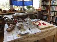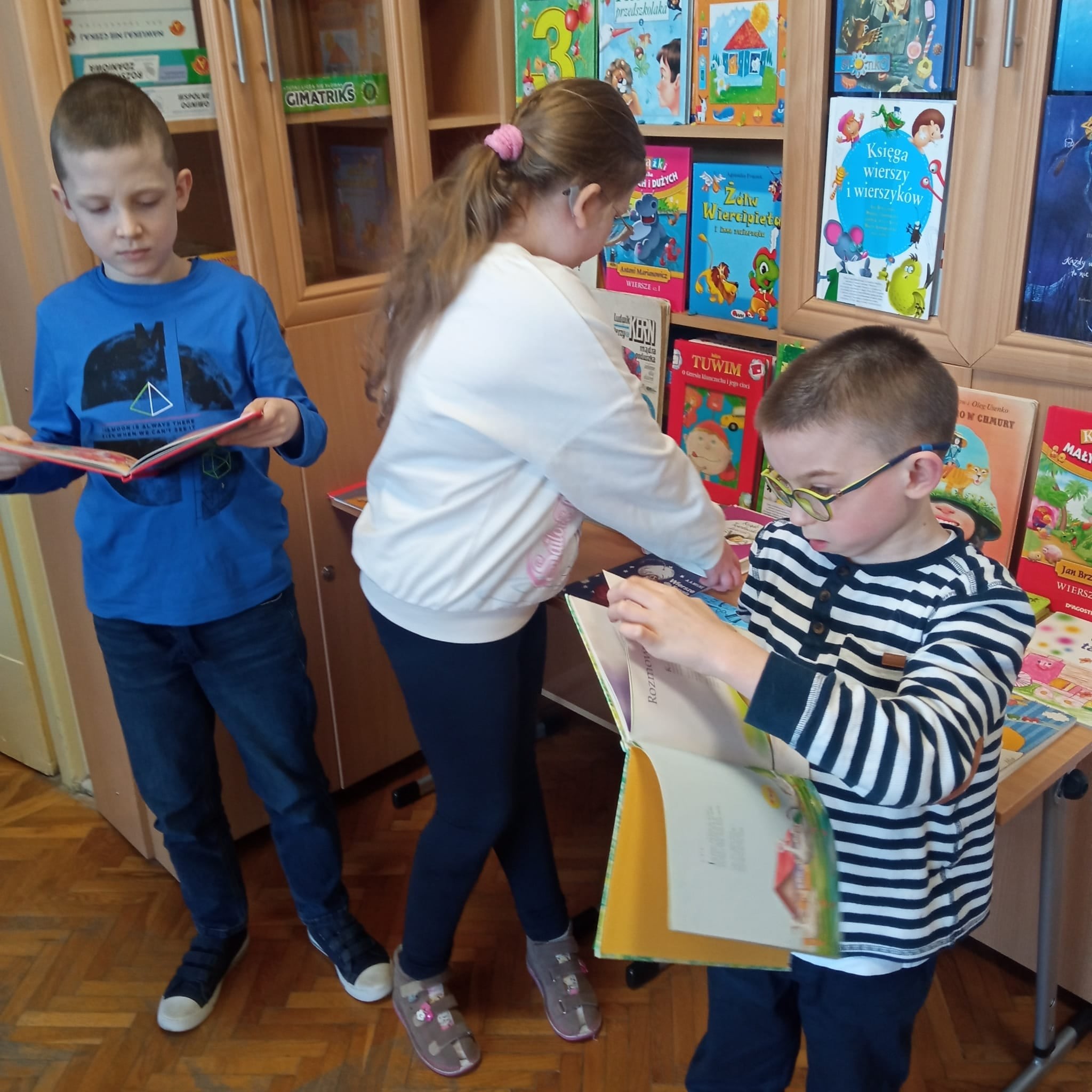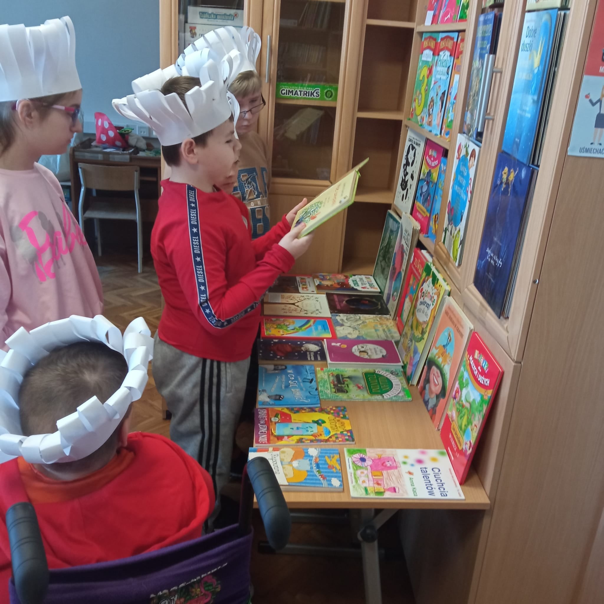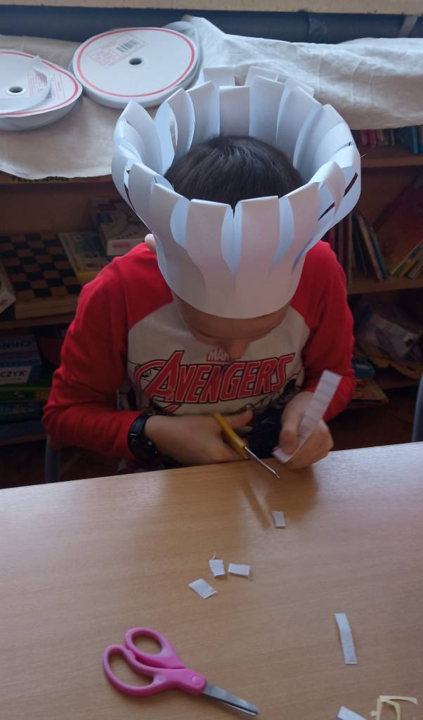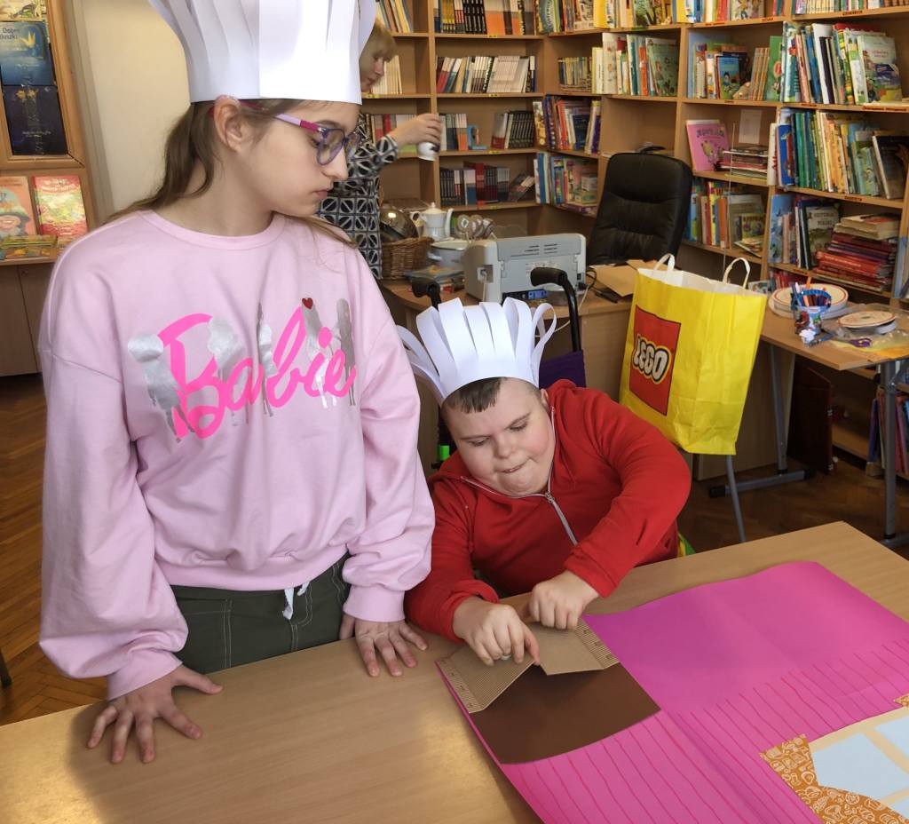 W ostatnich dniach dość niecodzienny widok można było ujrzeć w naszej bibliotece szkolnej. Wnętrze wypożyczalni na pewien czas zmieniło się bowiem w… kuchnię. Wszystko to za sprawą przyłączenia się naszej placówki do ogólnoszkolnej akcji promującej czytelnictwo wśród dzieci i młodzieży MARATON LITERACKI organizowanej przez Centrum Rozwoju Edukacji Województwa Łódzkiego w Zgierzu – Biblioteka Pedagogiczna w Zgierzu. Nietypowy wystrój wnętrza biblioteki związany jest z realizacją zajęć o poezji ukrytej w naszej codzienności pod hasłem NA TROPACH POEZJI. Źródłem inspiracji do przedsięwzięcia stały się różnorodne propozycje literackie ze zbiorów naszej biblioteki, które w sposób oryginalny i humorystyczny opisują przedmioty codziennego użytku. Rekwizyty zgromadzone w zaaranżowanym kąciku kuchennym, wysłuchane teksty literackie oraz zabawy edukacyjne dały uczniom sposobność do rozwijania umiejętności słuchania ze zrozumieniem oraz poszerzyły słownictwo i wiedzę odnośnie przedmiotów stanowiących wyposażenie kuchni. W dalszej części zajęć uczestnicy rozpoczęli pracę nad LAPBOOKIEM – kreatywną i interaktywną książką związaną z omawianą tematyką. Dzieci rysowały, kolorowały i wycinały elementy kuchennego wyposażenia. Wybierały fragmenty utworów, które najbardziej się im spodobały, a następnie umieszczały komponenty w wspólnie tworzonej teczce tematycznej. Opisane zajęcia to początek MARATONU LITERACKIEGO w naszej szkole. Kontynuacją akcji będzie konkurs dla klas na opracowanie kolejnych LAPBOOKÓW inspirowanych poezją ukrytą w naszej codzienności. Będziemy Państwa informować o dalszym przebiegu realizowanego przedsięwzięcia!