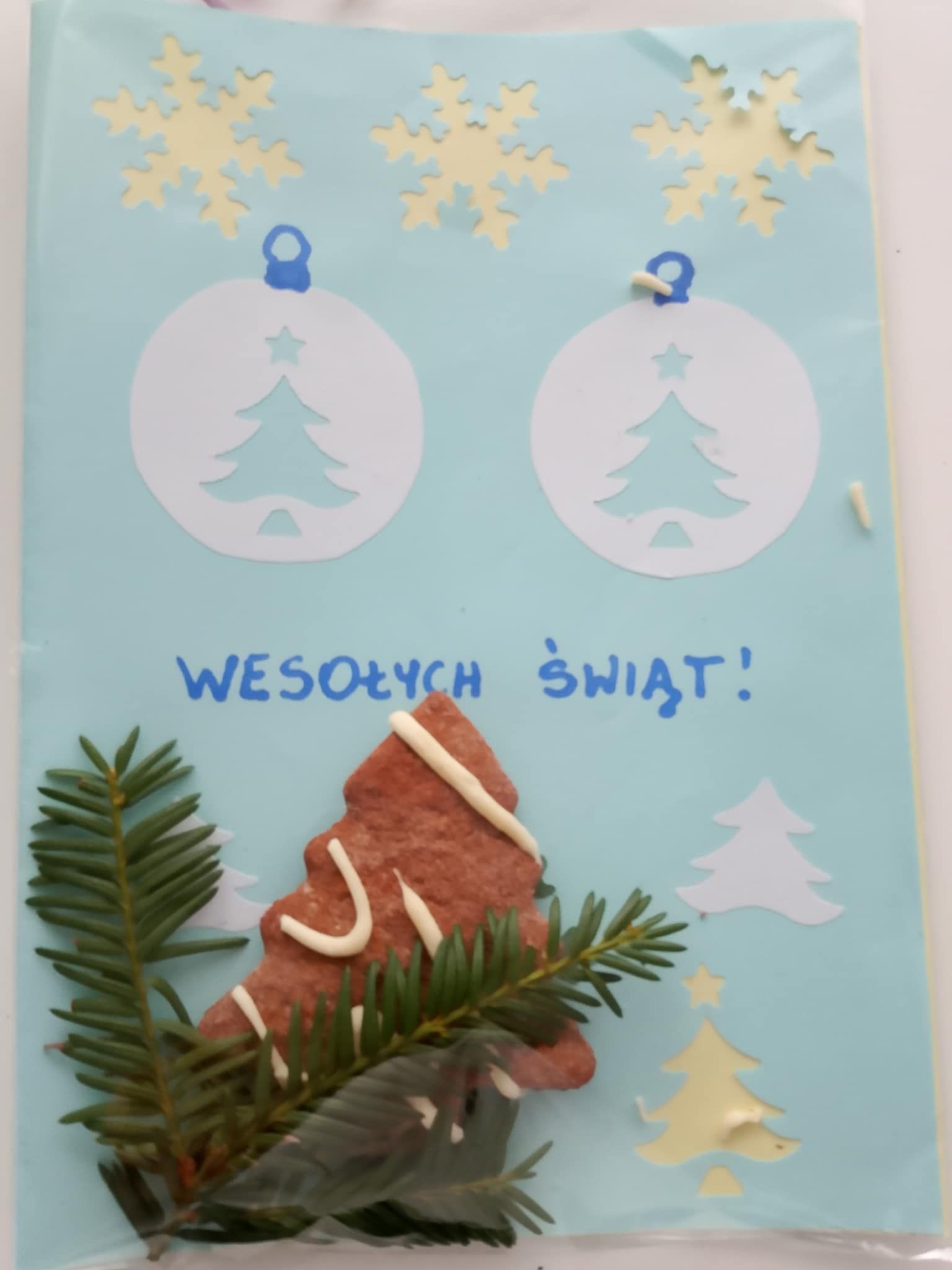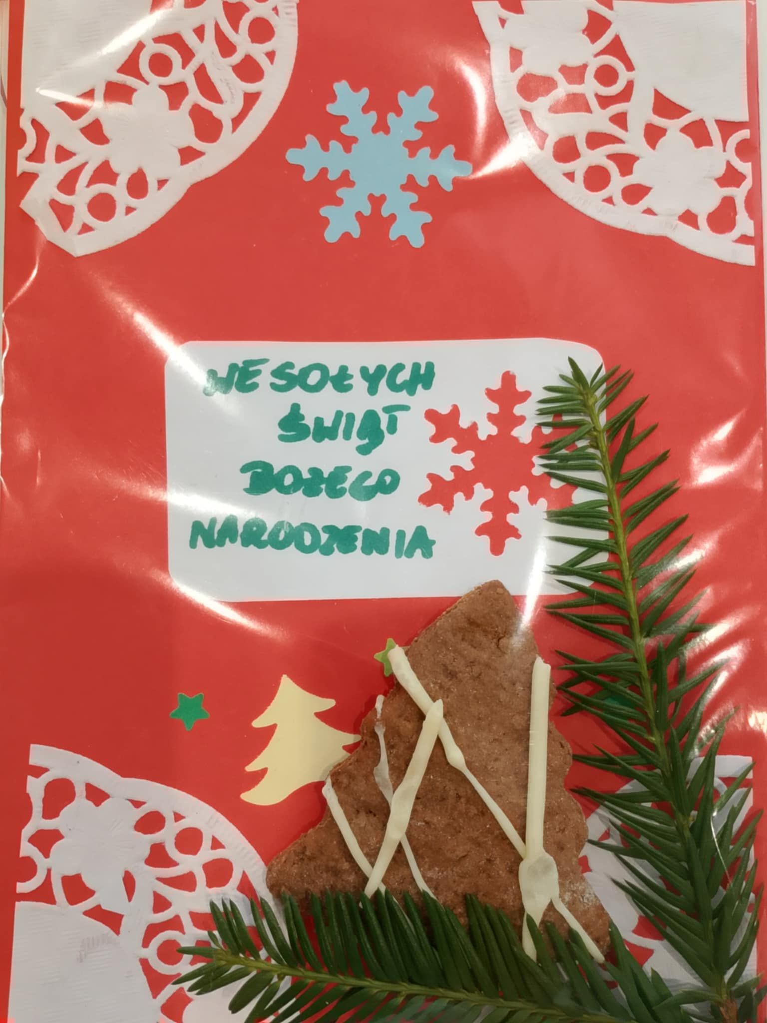 Dzieci z grup wychowawczych wykonały własnoręcznie kartki świąteczne a uczniowie Szkoły Branżowej upiekli pierniczki dla podopiecznych Domu Pomocy Społecznej.