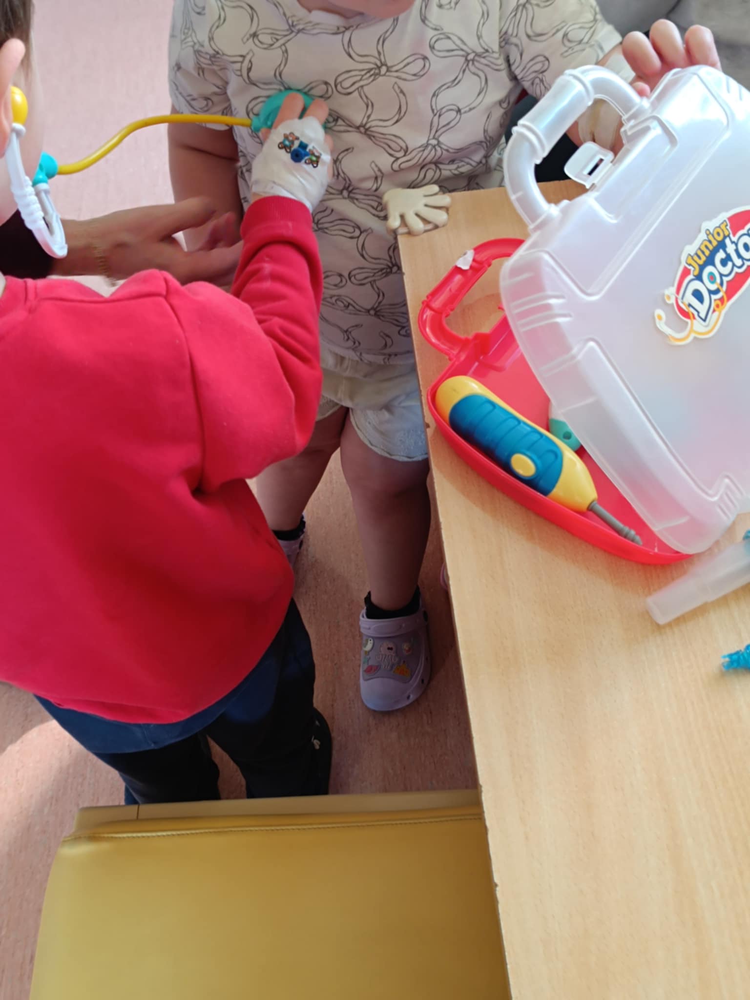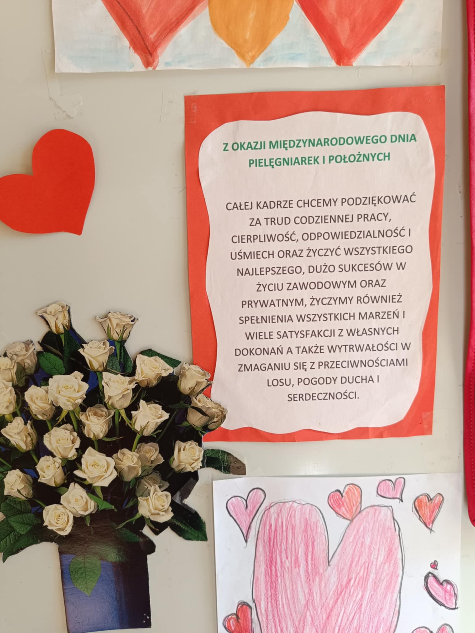 Z okazji tego święta dzieci z "Grupy szpitalnej" dowiedziały się o trudnym zawodzie pielęgniarki, a także wzbogaciły i utrwaliły swoje wiadomości na temat sposobów dbania o zdrowie i higienę. Dla przedszkolaków największą atrakcją były wykonywane na swoich kolegach i koleżankach "zabiegi". Dla Pań i Panów pracujących w Oddziale Pediatrycznym wykonały bukieciki, do których został doręczony mały upominek. Oczywiście nie zabrakło życzeń i słodkiego poczęstunku.