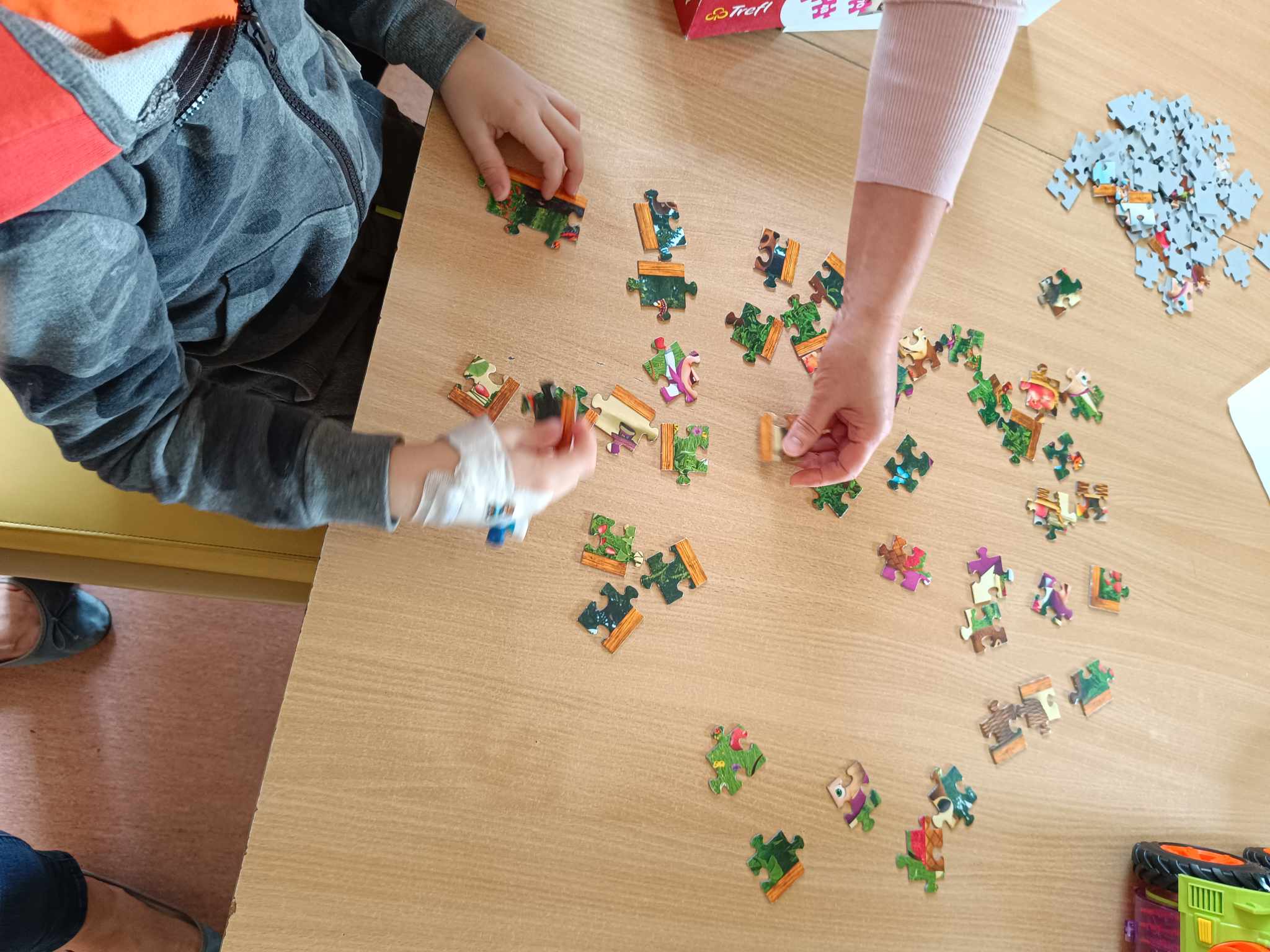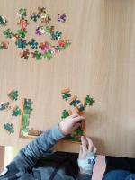 W oddziale pediatrycznym pamiętamy o "Międzynarodowym Dniu Układania Puzzli", gdyż puzzle w szpitalu to nie tylko zabawa, ale także terapia. Układanie puzzli pozwala chorym dzieciom na oderwanie od myślenia o chorobie i zabiegach. Puzzle dają ukojenie negatywnych emocji, wyciszenie, skupienie na przyjemnym działaniu, pomagają zmniejszyć poziom stresu związanego z hospitalizacją. Puzzle to także świetne ćwiczenie dla mózgu. Wspiera rozwój umysłowy - angażuje różne części mózgu, w tym pamięć wzrokową, oraz zdolności analityczne i logiczne. Puzzle uczą dzieci i młodzież cierpliwości i umiejętności dążenia do celu, mimo trudności. Rodzice chorych dzieci także chętnie podejmują z nimi te działania.