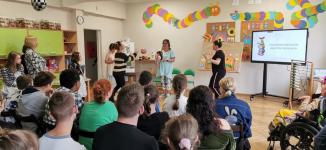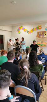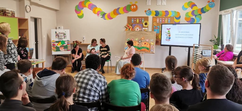 Tradycyjnie, w październiku, obchodzimy Międzynarodowy Miesiąc Bibliotek Szkolnych. To dobra okazja do zaprezentowania potencjału bibliotek i nawiązania bliższych relacji ze społecznością szkoły. Przez cały miesiąc w bibliotece odbywały się zajęcia zachęcające do czytania książek i zacieśniania więzi z kolegami i koleżankami z równoległych klas. Uczniowie uczestniczyli w konkursie na plakat, którego tematyka nawiązywała do tegorocznego hasła MMBS - „Poznajmy się w bibliotece”. Wszystkie prace zostały wyeksponowane i dodały kolorytu imprezie czytelniczej, której tematem przewodnim było głośne czytanie. Wspólna zabawa rozpoczęła się od inscenizacji wiersza Marii Konopnickiej „Czytamy” w popisowym wykonaniu naszych Pań Dyrektor oraz występu uczniów klas Ib i II/IIIZ, którzy zaprezentowali jedną z przygód małpki Fiki-Miki. Videozagadki oraz przedmioty ukryte w „magicznym worku” były zachętą do wspólnej zabawy w odgadywanie tytułów książek i imion bohaterów bajek, a tropienie liter ukrytych w książkach zaowocowało odnalezieniem hasła tegorocznej imprezy – CZYTAMY. Na zakończenie każdy z uczniów otrzymał książkę i piękną, kolorową zakładkę wykonaną przez uczniów klasy II/IIIc.