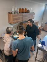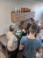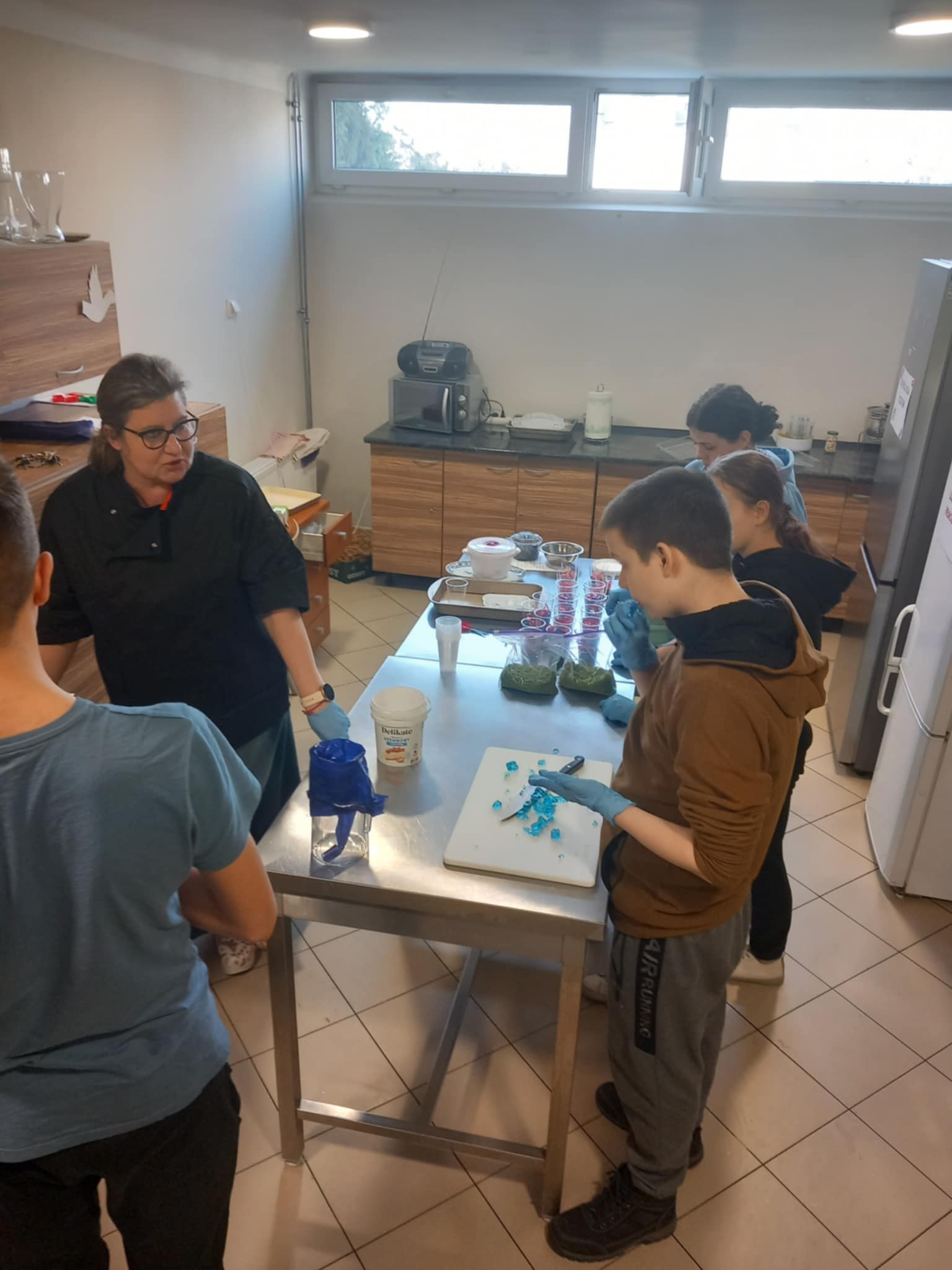Dzisiaj odwiedzili nas uczniowie klas ósmych z zaprzyjaźnionego z nami Zespołu Szkół Specjalnych w Ozorkowie. Uczniowie "od kuchni" poznawali tajniki zawodu kucharz i z niewielką pomocą nauczyciela zajęć praktycznych wykonali kokosanki a'la rafaello i deser owocowy leśny mech. Mieli również okazję obejrzeć naszą szkołę i uczestniczyć w zajęciach edukacyjnych o tematyce kulinarnej.