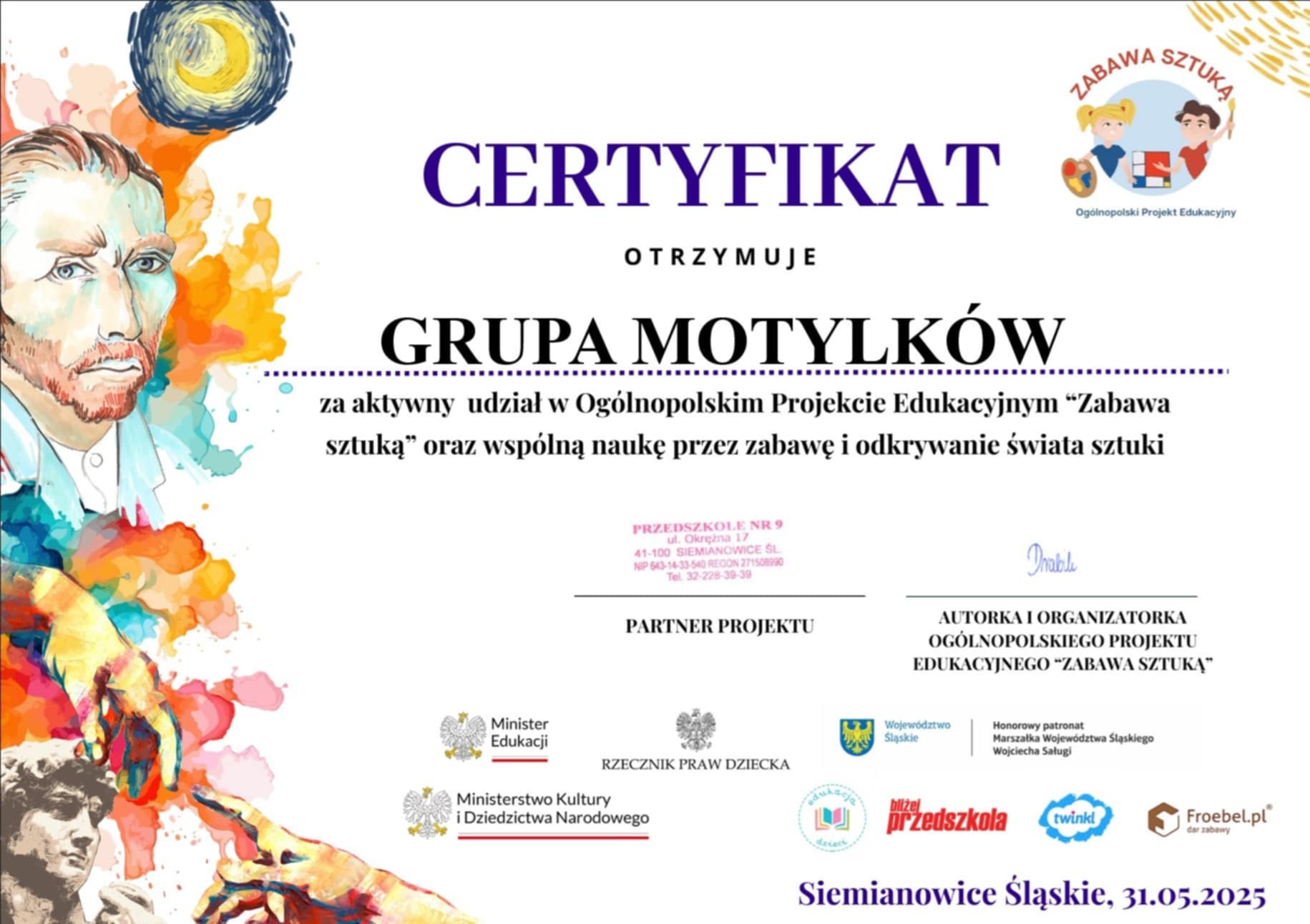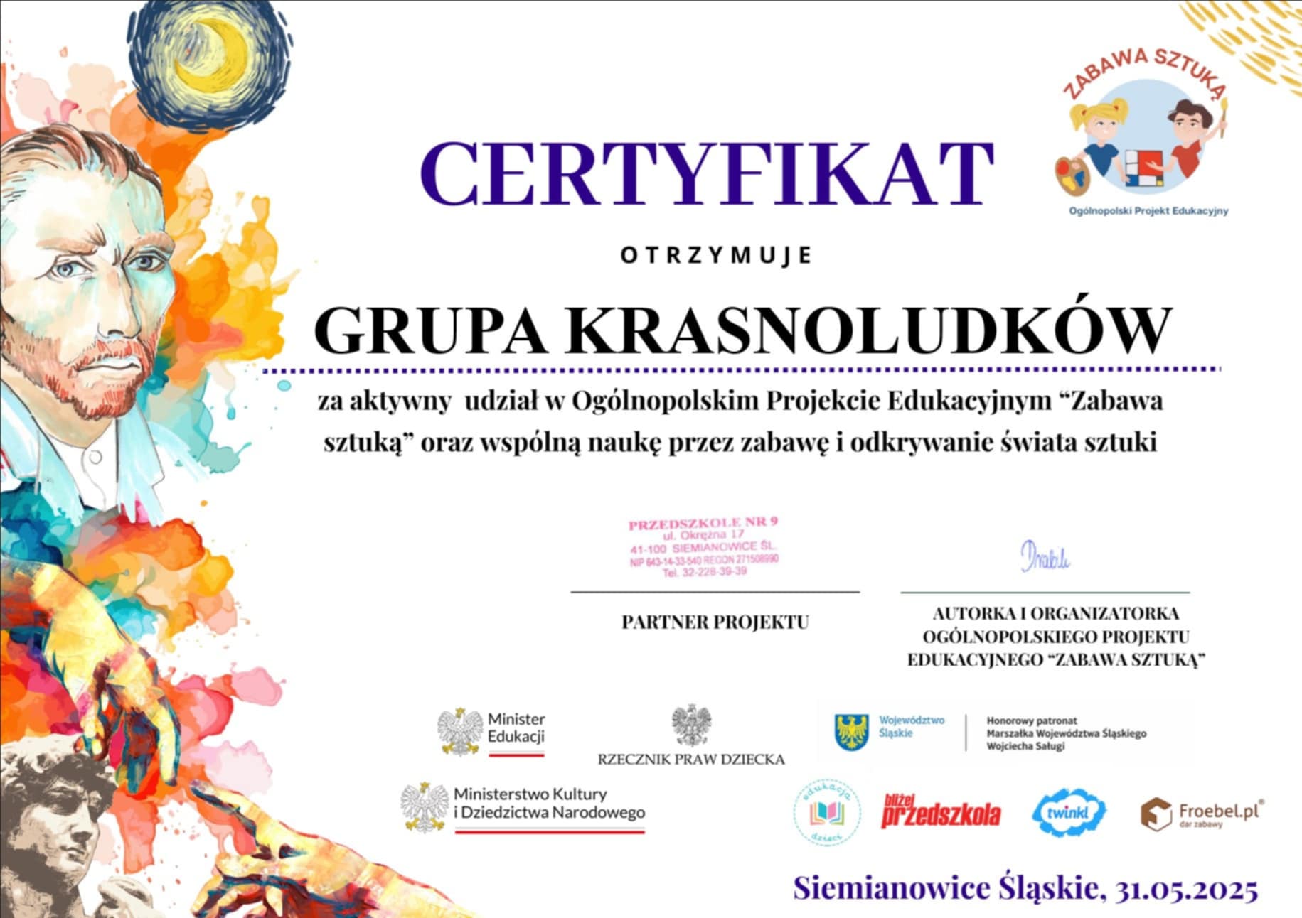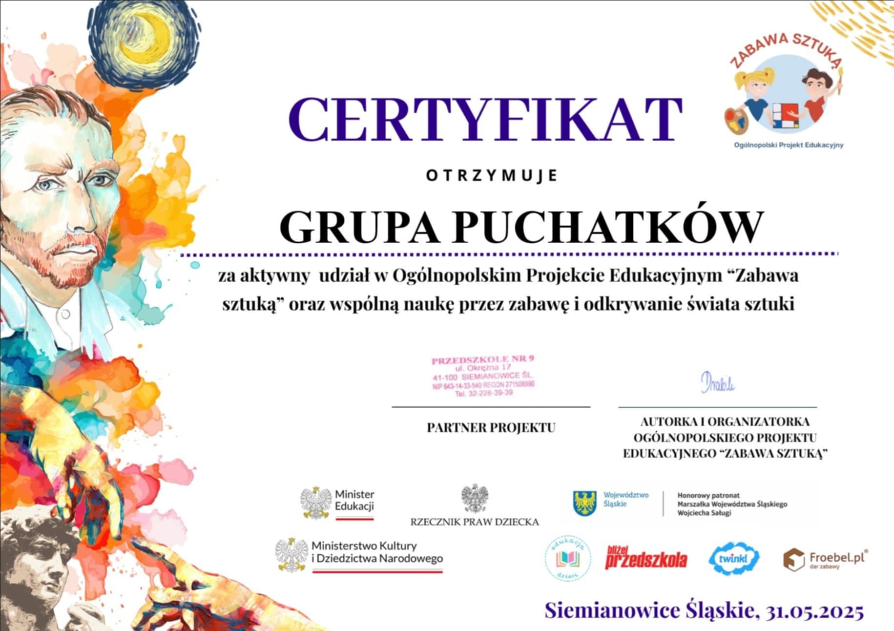 Przedszkolaki z grup Puchatków, Misiów, Krasnoludków, Motylkiów i Biedronek ukończyły projekt edukacyjny „Zabawy ze sztuką”. Było twórczo i wesoło.