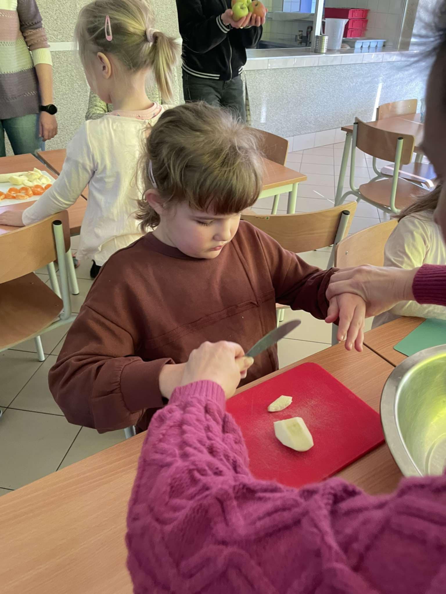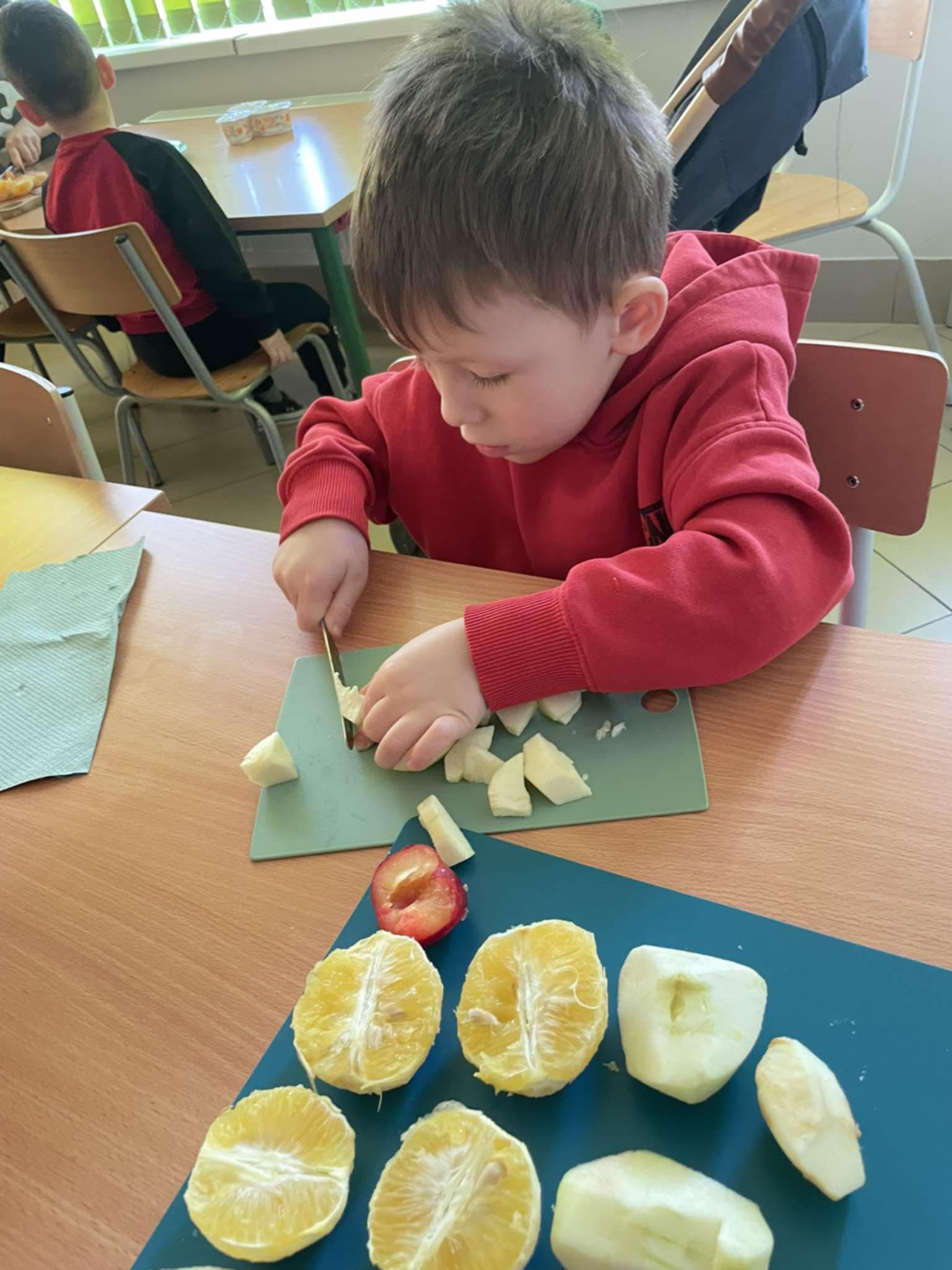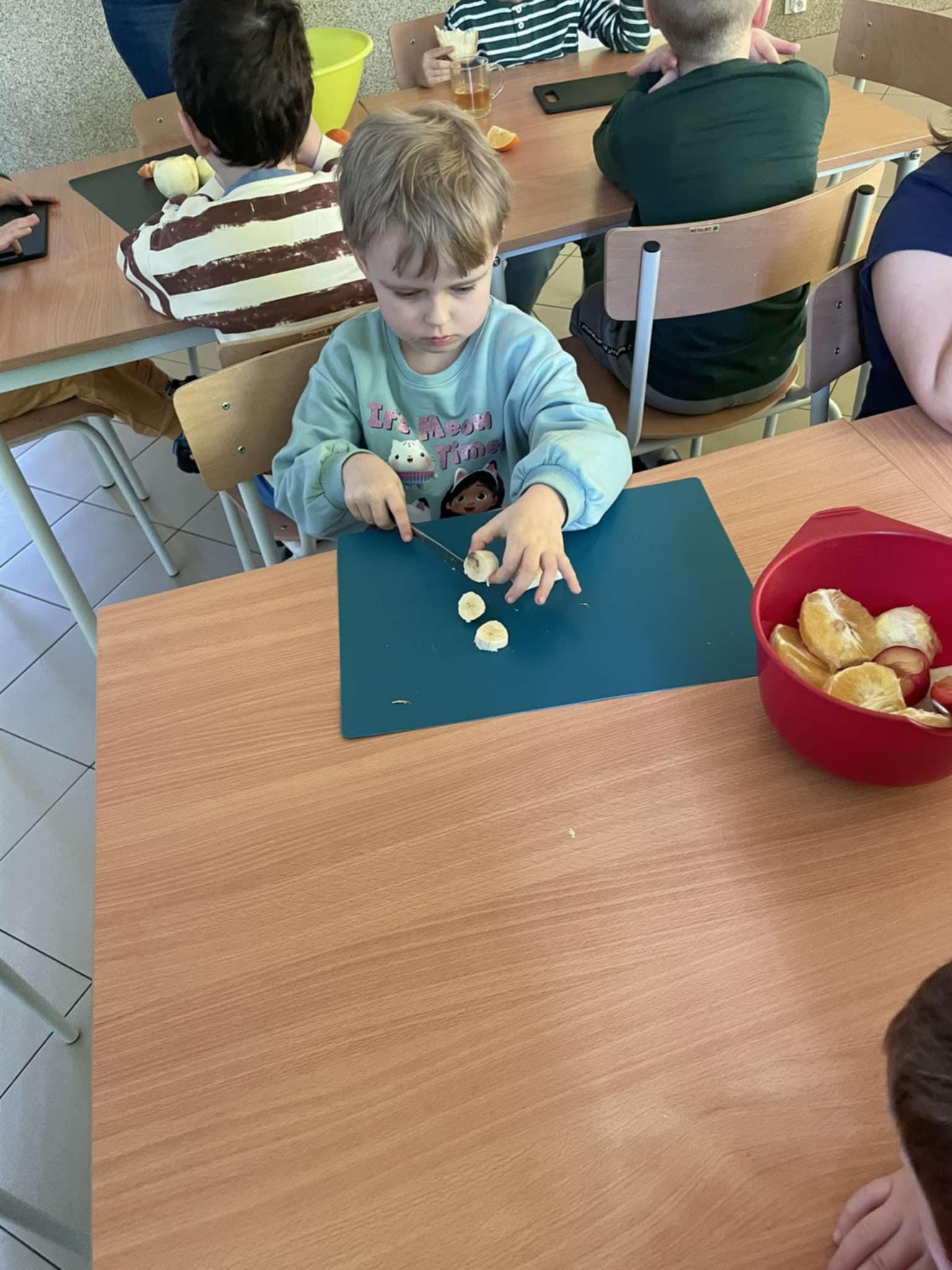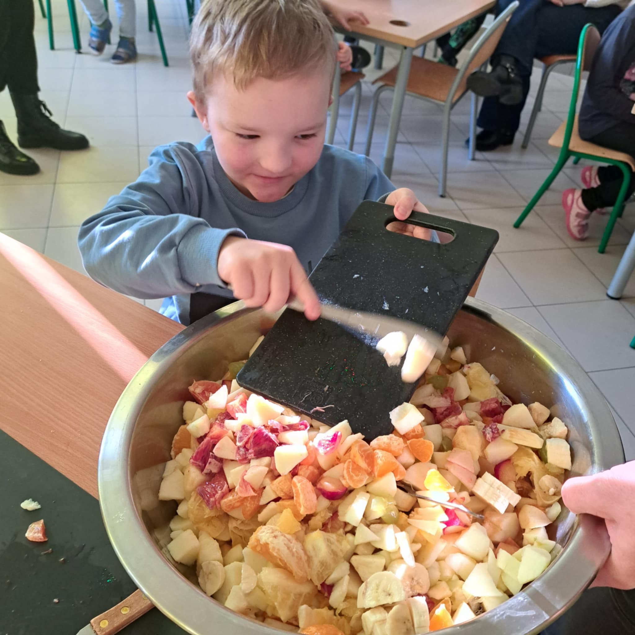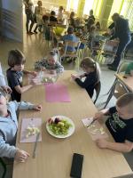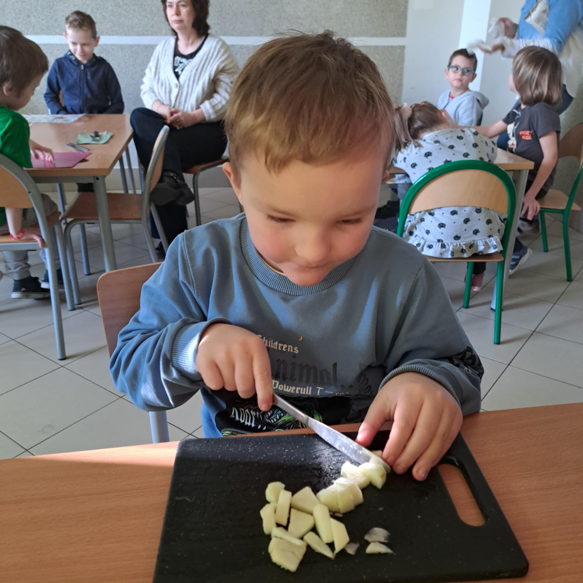 W ramach promocji zdrowia przedszkolaki przygotowały sałatkę owocową - Projekt "Mali kucharze - gotować każdy może".