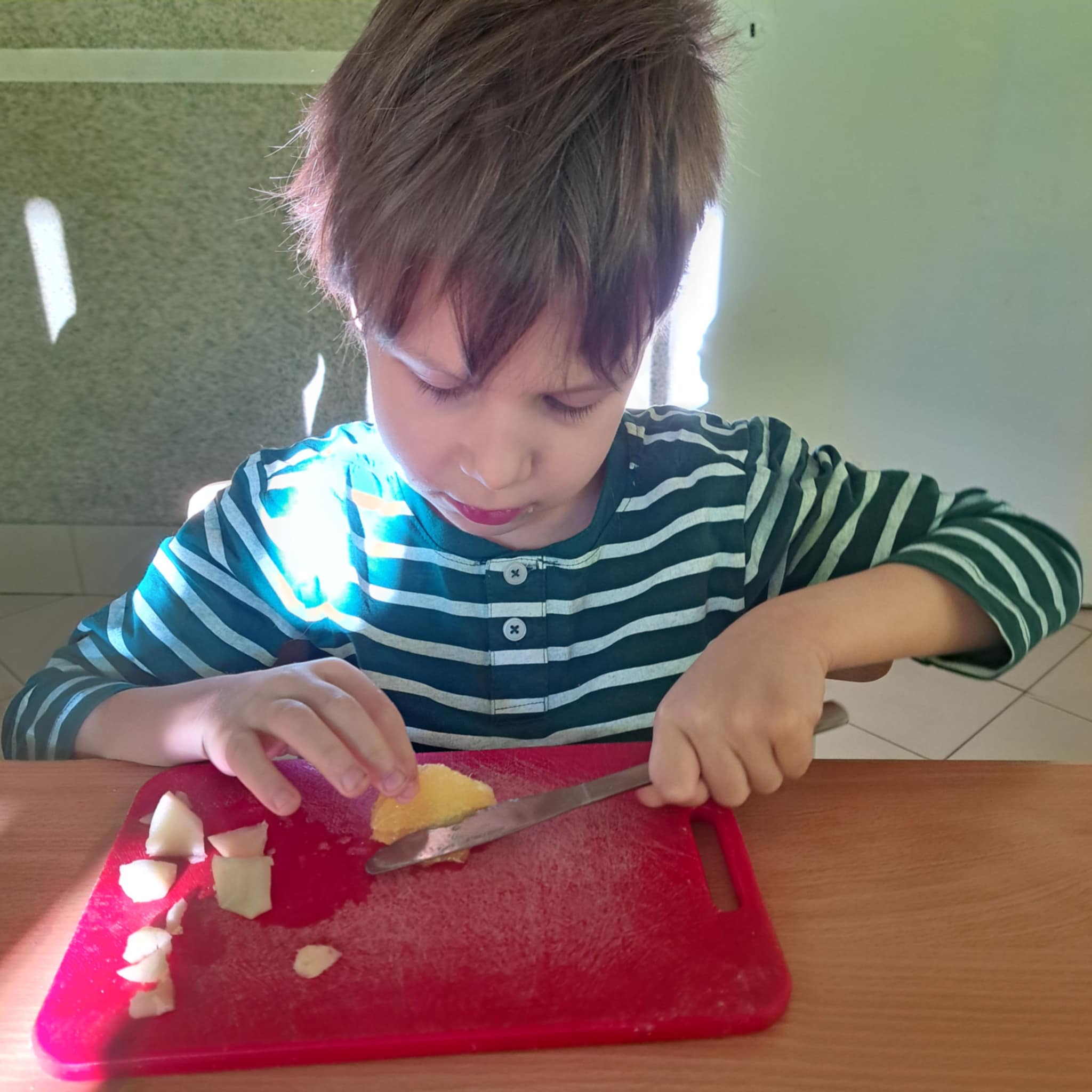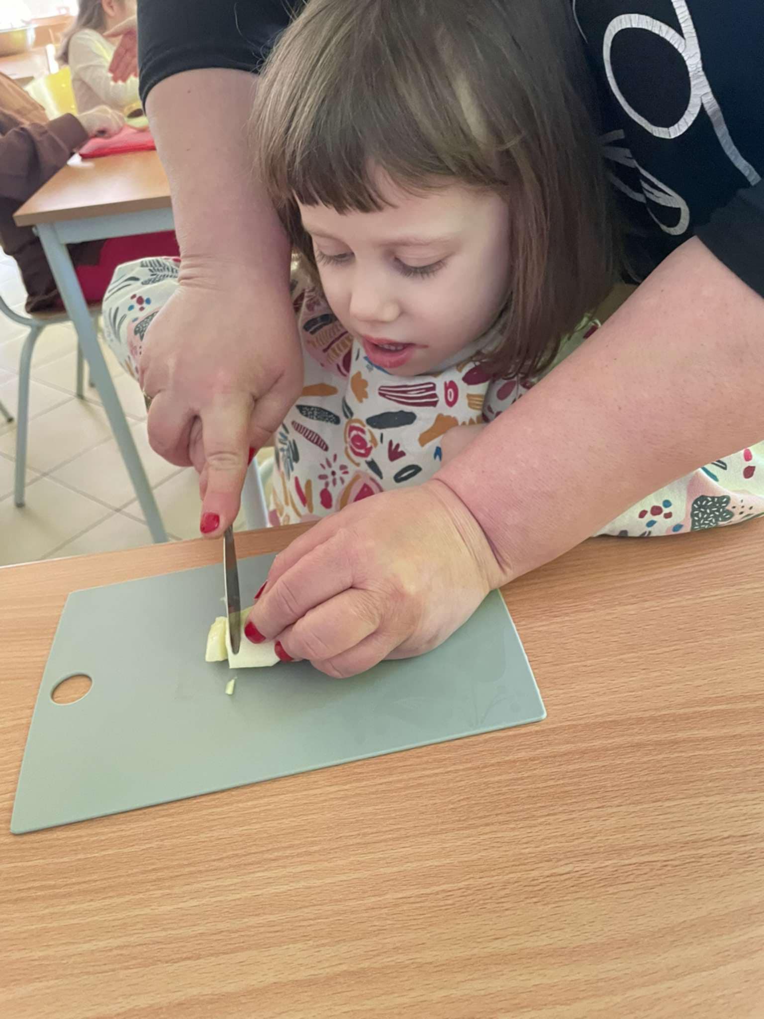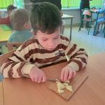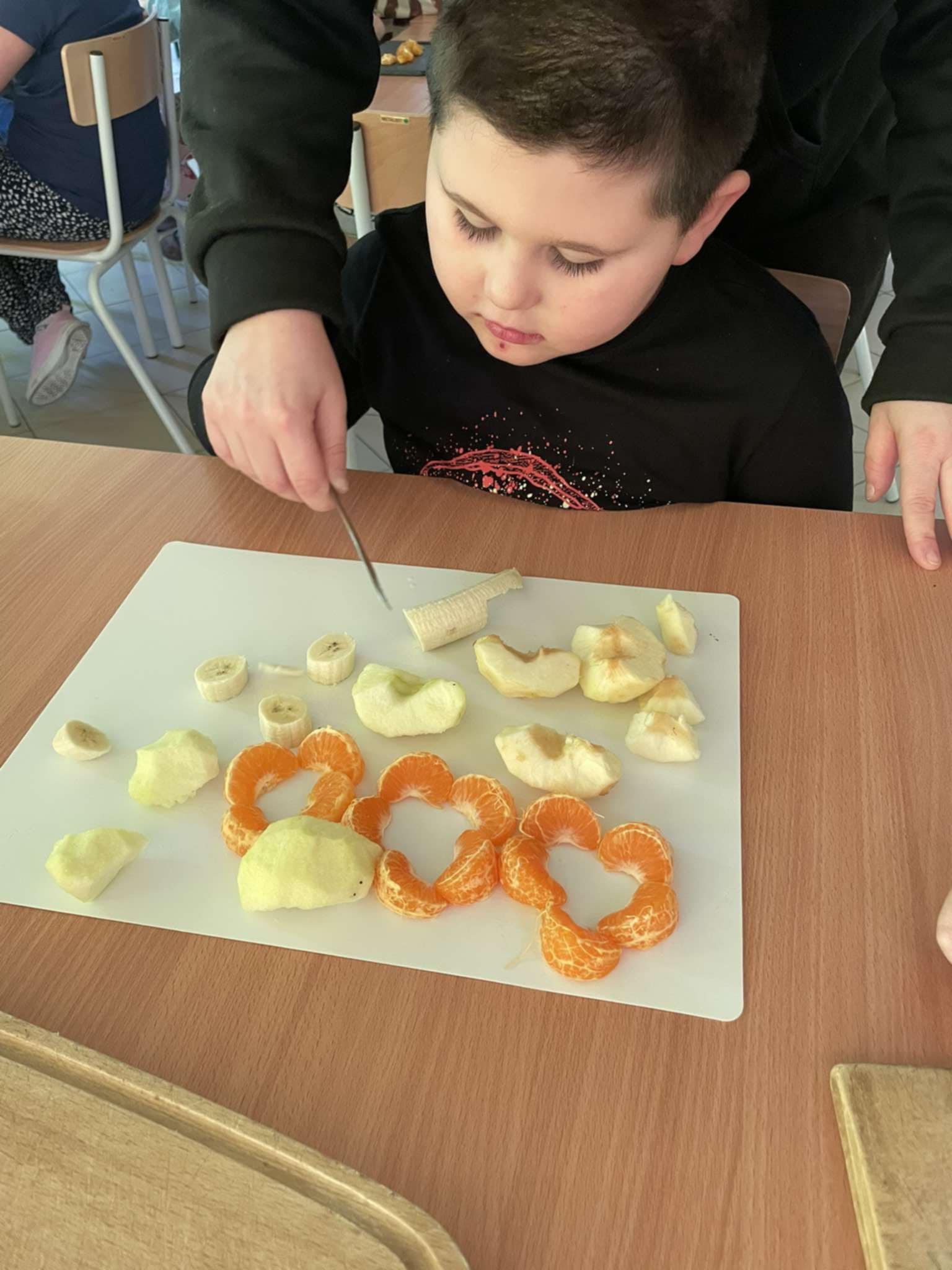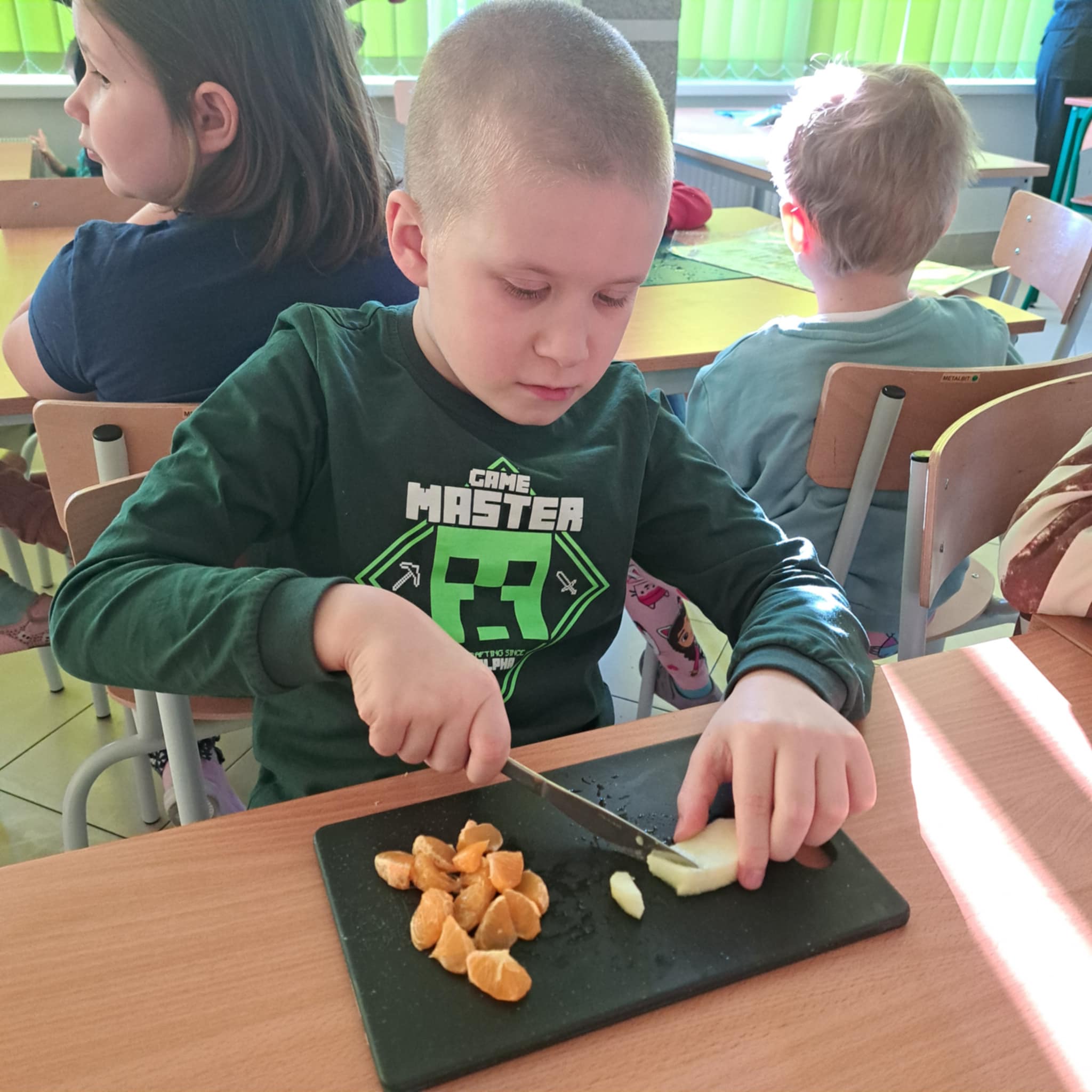 W ramach promocji zdrowia przedszkolaki przygotowały sałatkę owocową - Projekt "Mali kucharze - gotować każdy może".