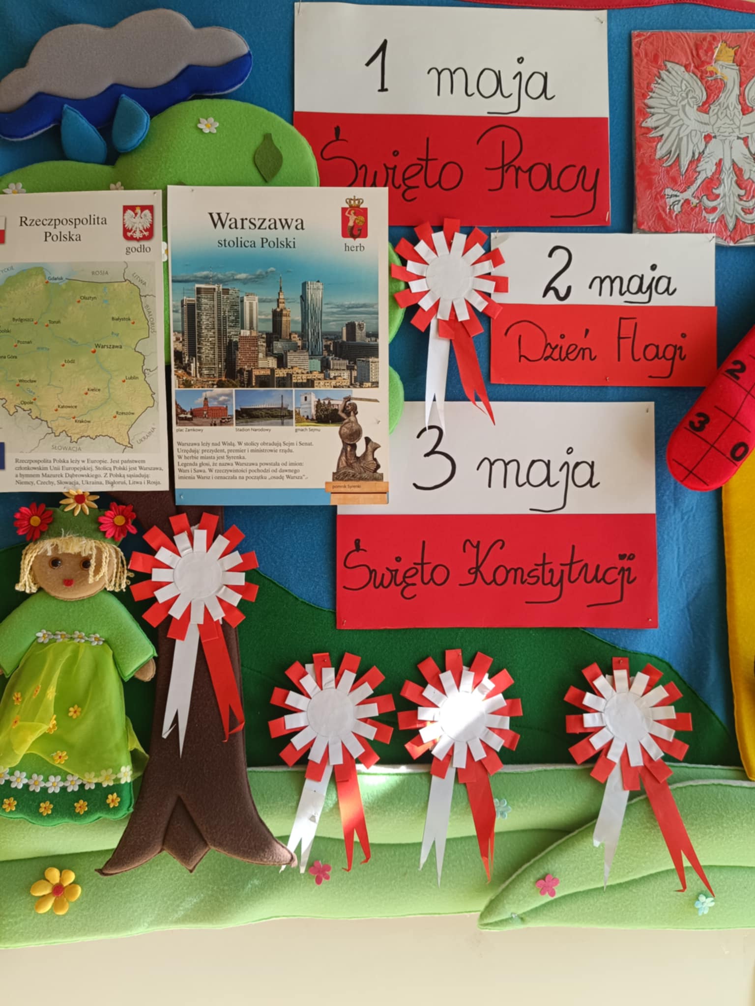 W dniu 30.04.2025 r. przedszkolaki z "grupy szpitalnej" obchodziły Święto Konstytucji 3 Maja. Święto to było okazją do rozmów o patriotyzmie, symbolach narodowych oraz znaczeniu ojczyzny w naszym życiu. Z tej okazji przedszkolaki wyruszyły (z wykorzystaniem książek, albumów o naszym kraju) w "podróż po Polsce", która uświadomiła im, że nawet najtrudniejsze chwile kiedyś się kończą i nastają lepsze dni pełne radości.