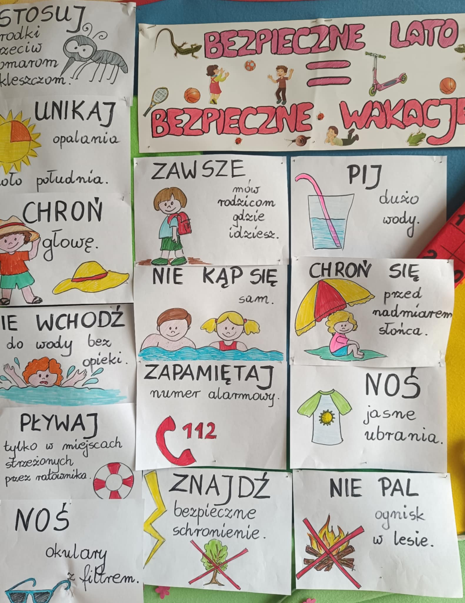 Zbliżający się czas letniego wypoczynku to doskonała okazja do relaksu, podróży i zabawy. Należy jednak pamiętać, że bezpieczeństwo powinno być na pierwszym miejscu. Dlaczego przedszkolaki z "Grupy szpitalnej" podczas zajęć przypomniały sobie zasady, które pozwalają spędzić wakacje w sposób odpowiedzialny i bezpieczny.
