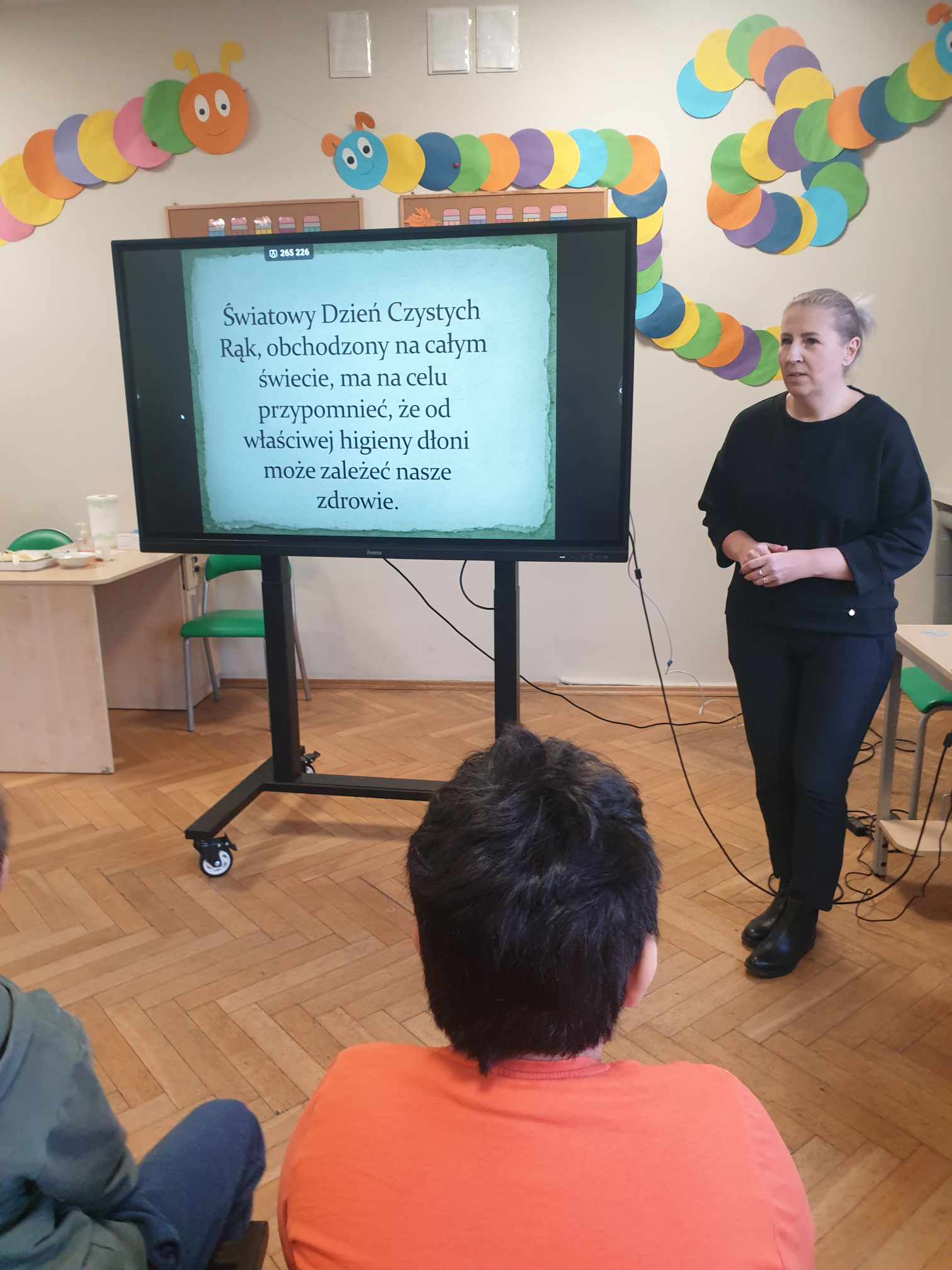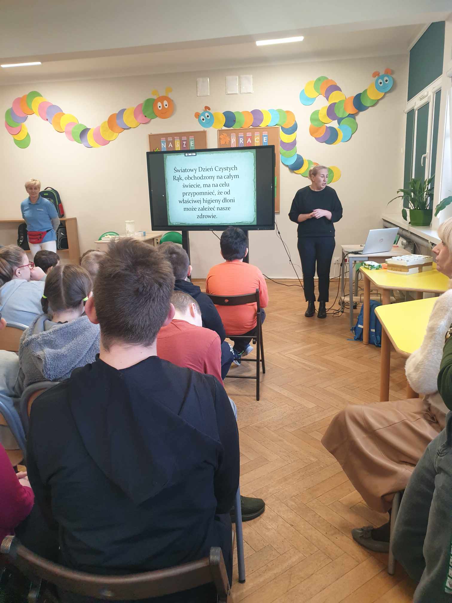 Jak co roku, z okazji Światowego Dnia Mycia Rąk, Zespół ds. Promocji Zdrowia przeprowadził zajęcia edukacyjne. Dzieci zostały zapoznane z zasadami higieny dłoni oraz nauczyły się, jak prawidłowo myć ręce. Wykonały szereg doświadczeń, dzięki którym zobaczyły jak przenosimy wirusy i bakterie. Mamy nadzieję, że zdobyta wiedza będzie towarzyszyła wszystkim każdego dnia.