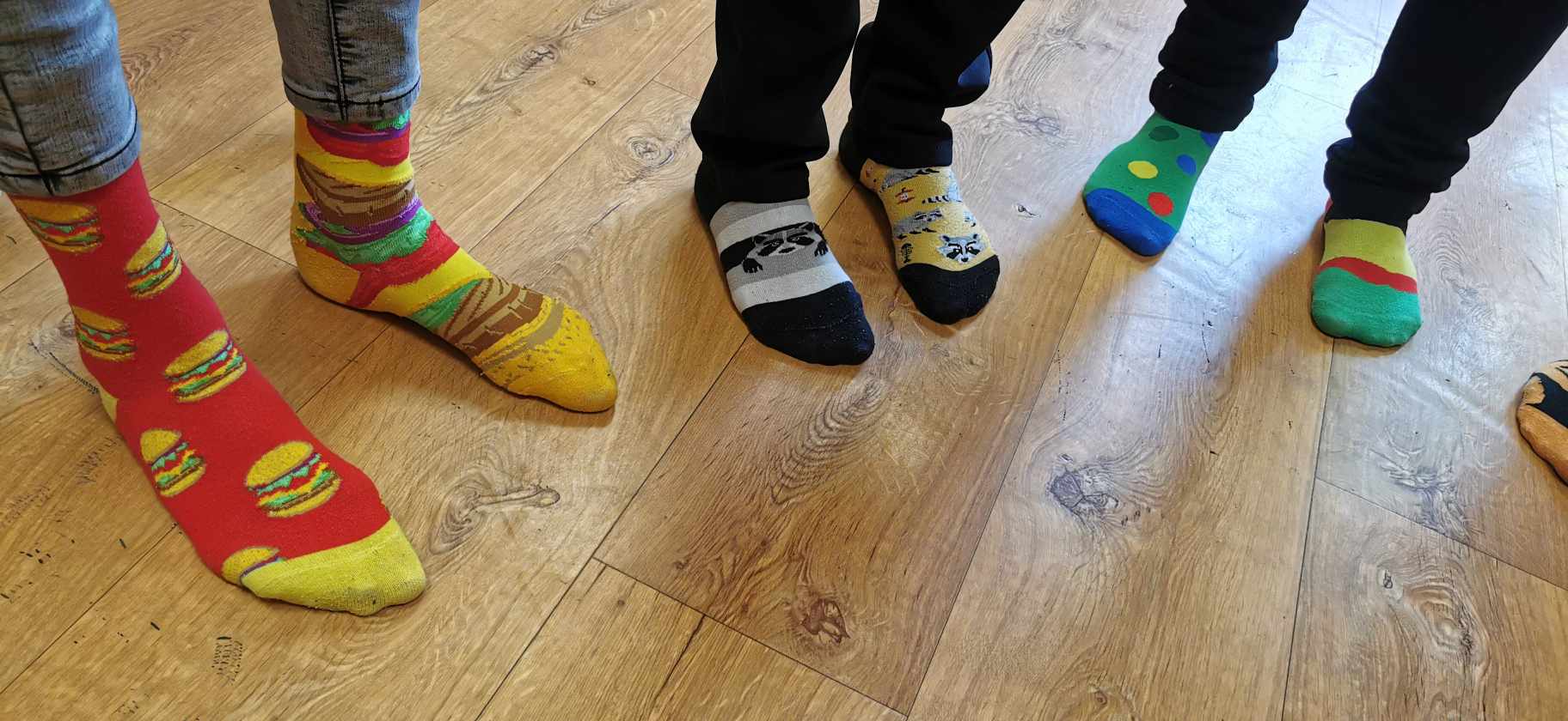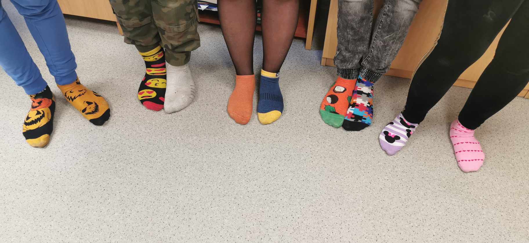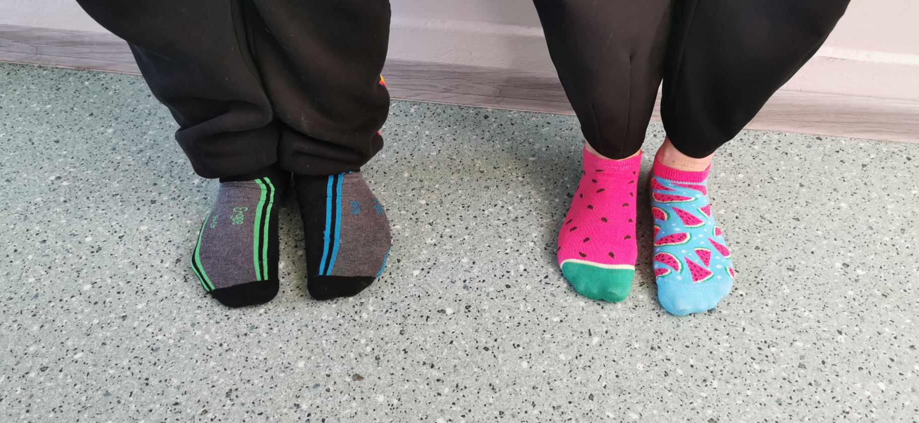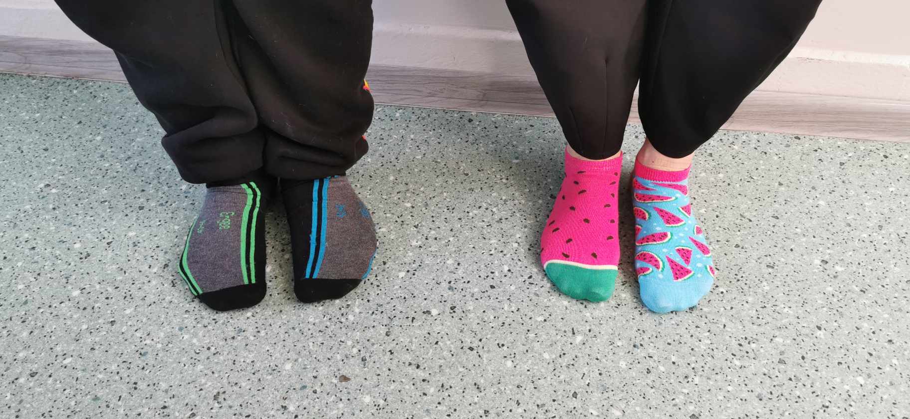 W tym dniu, jako wyraz solidarności, wielu uczniów jak i pracowników założyło kolorowe skarpetki "nie do pary".