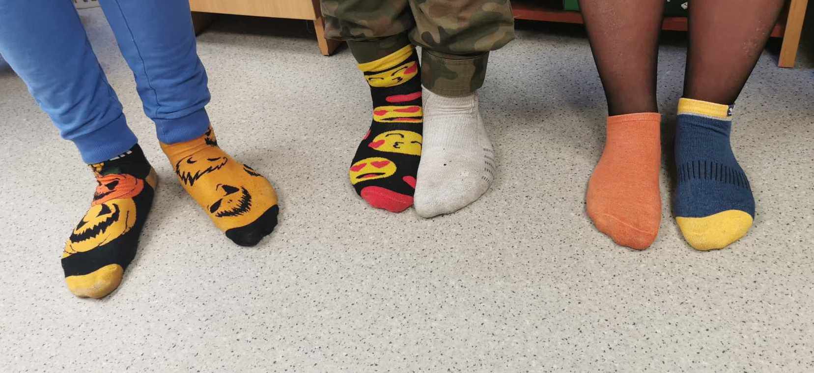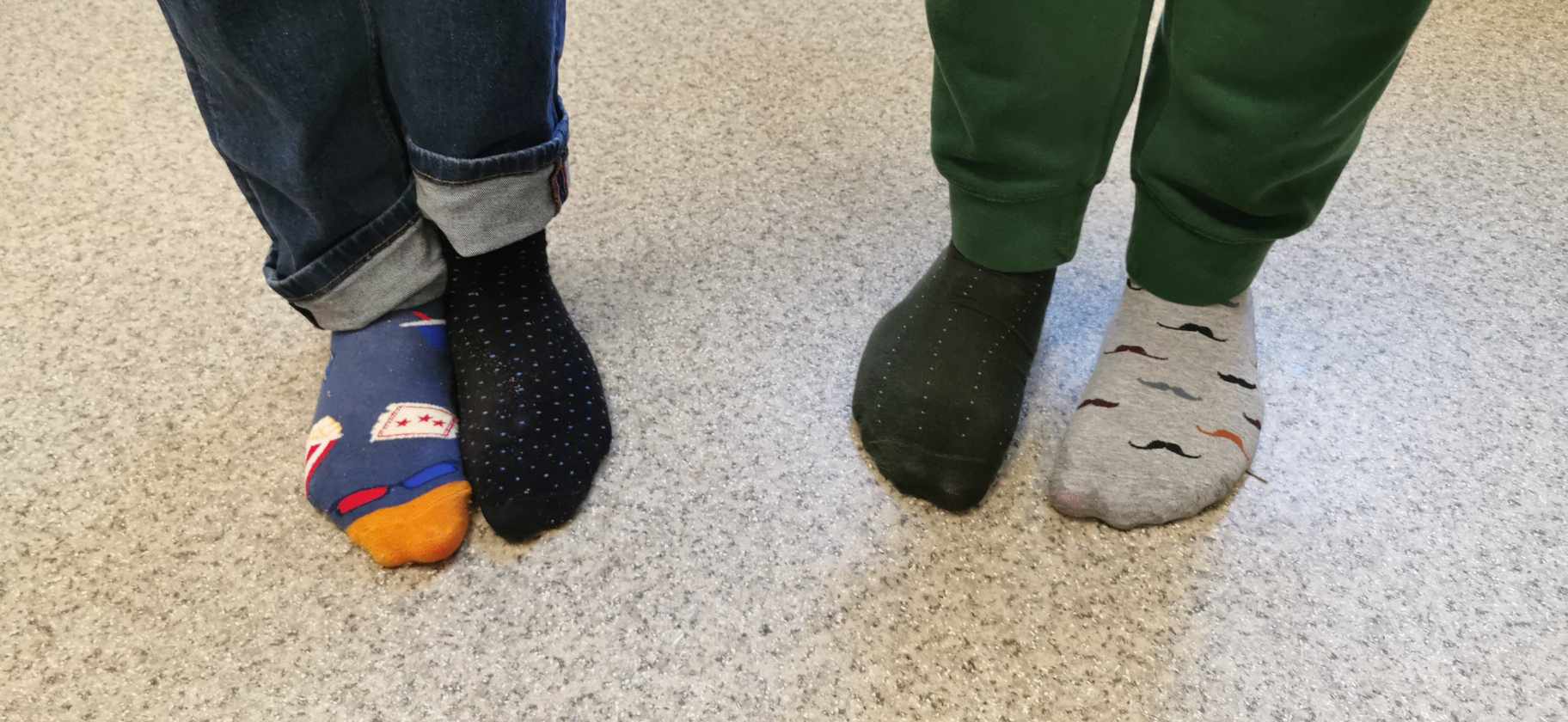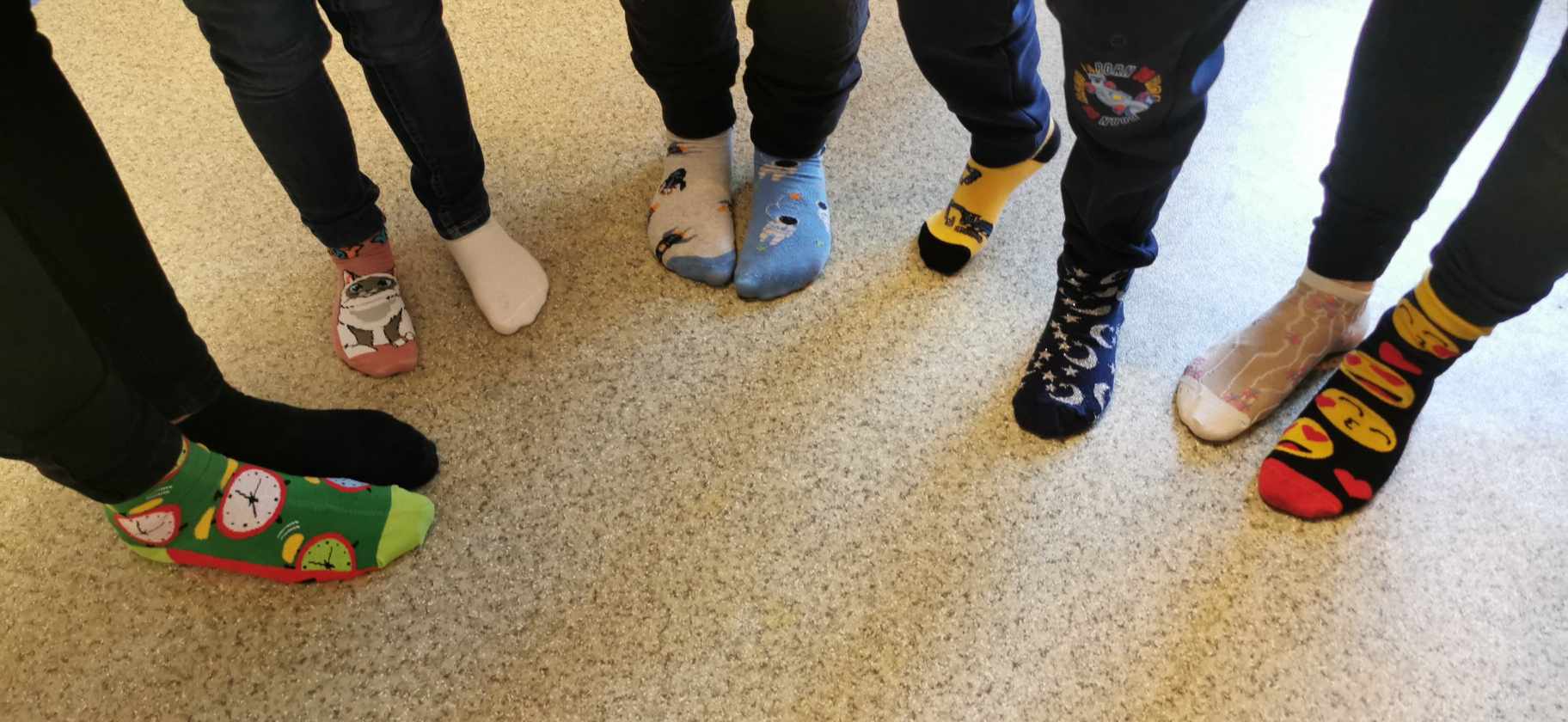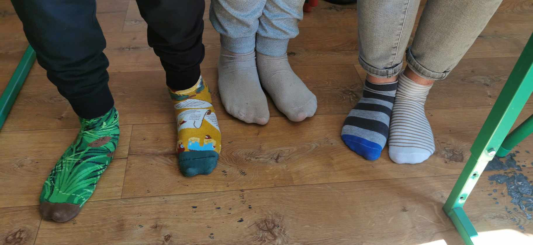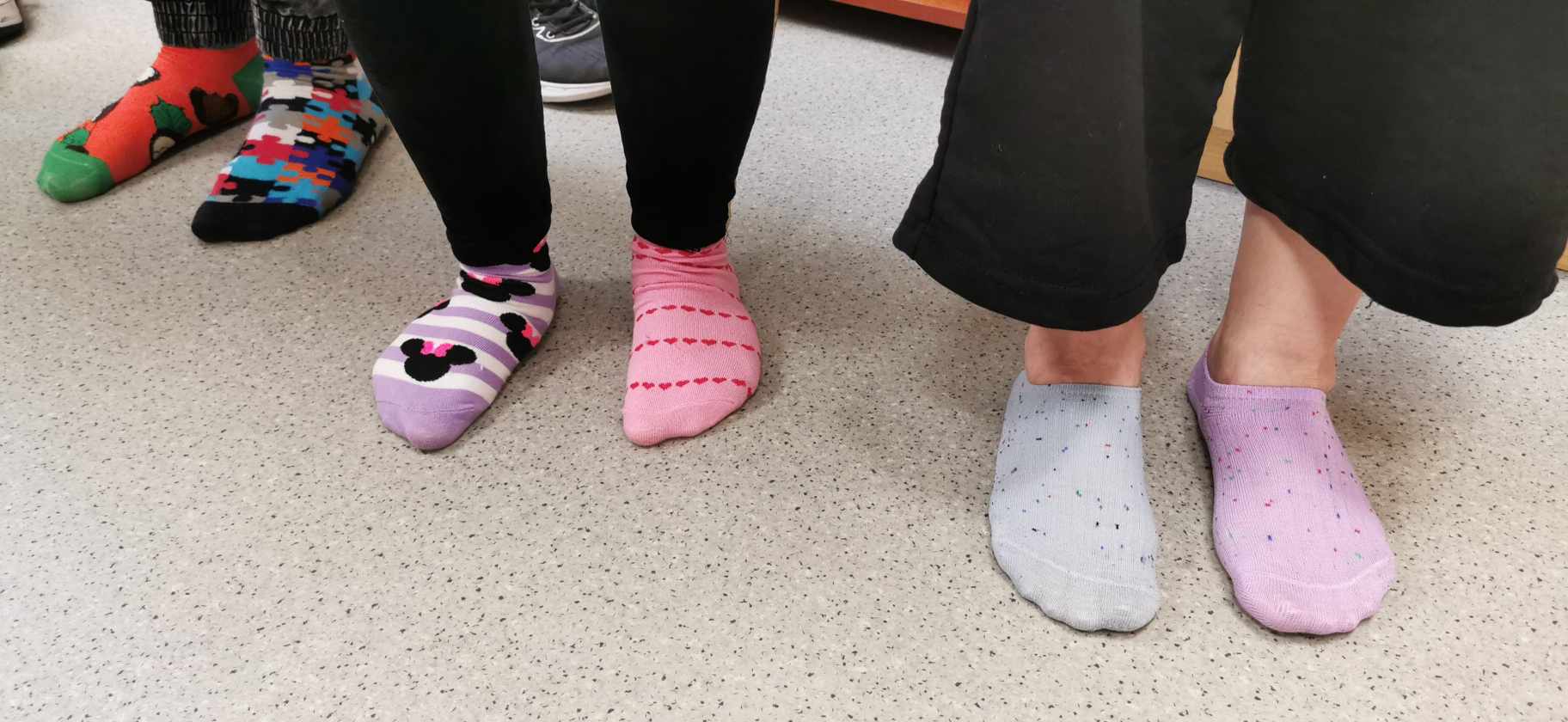 W tym dniu, jako wyraz solidarności, wielu uczniów jak i pracowników założyło kolorowe skarpetki "nie do pary".