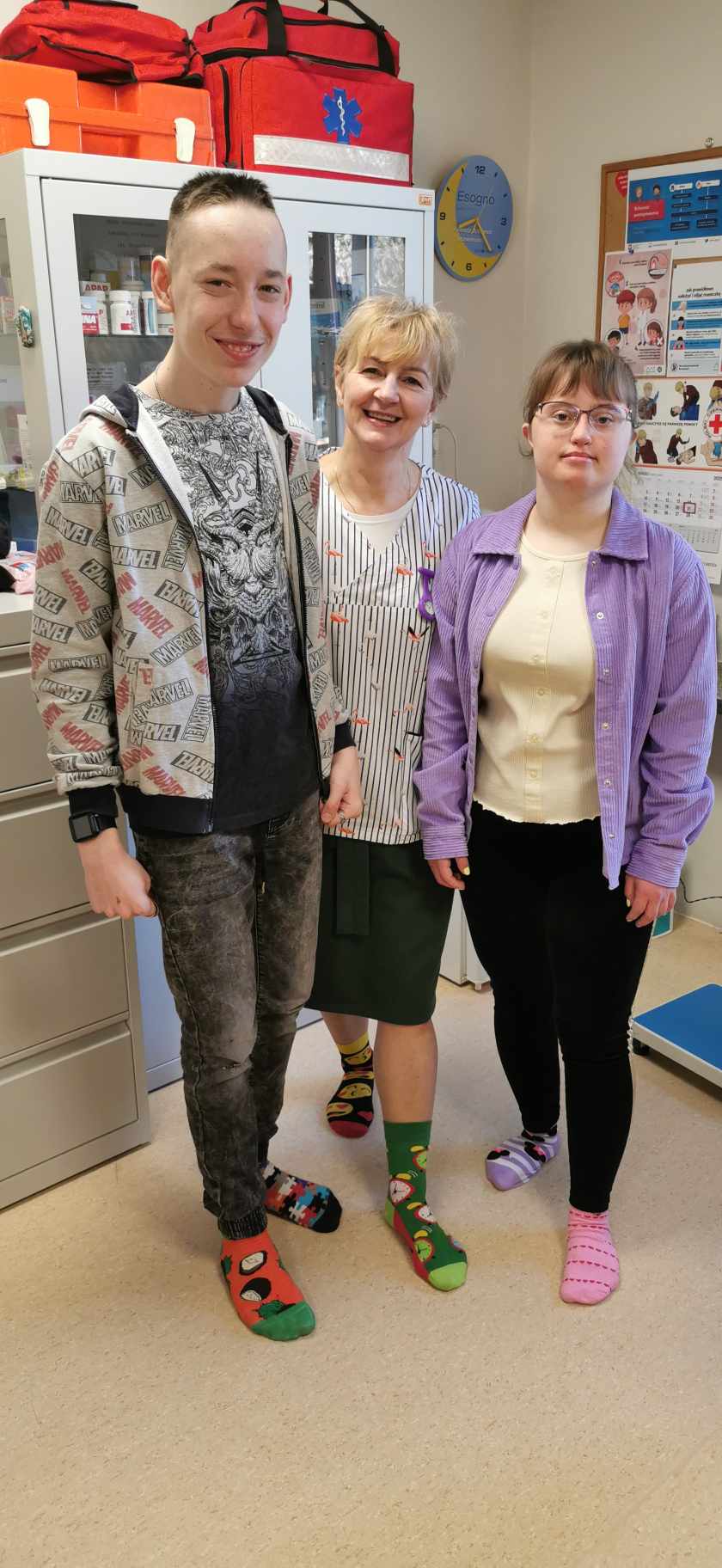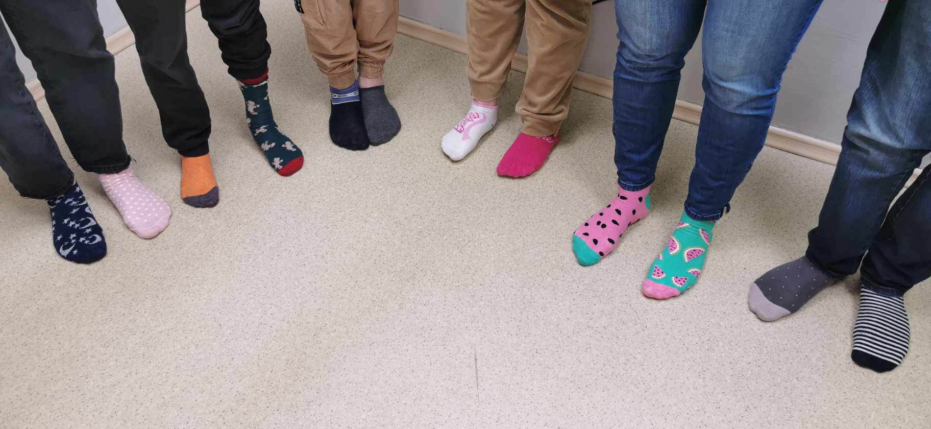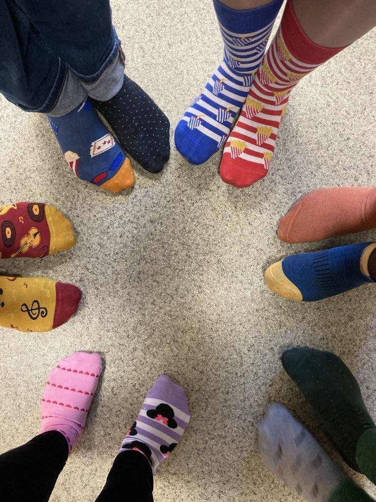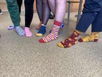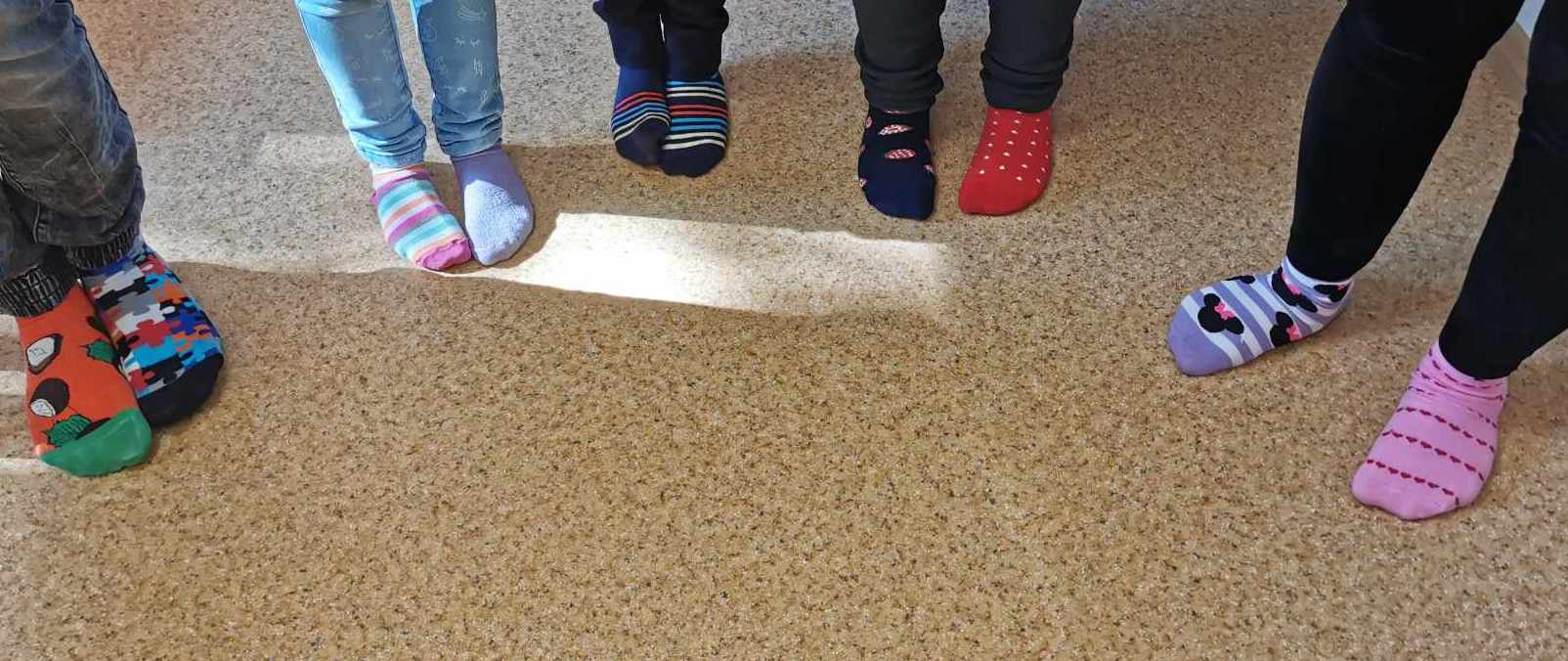 W tym dniu, jako wyraz solidarności, wielu uczniów jak i pracowników założyło kolorowe skarpetki "nie do pary".