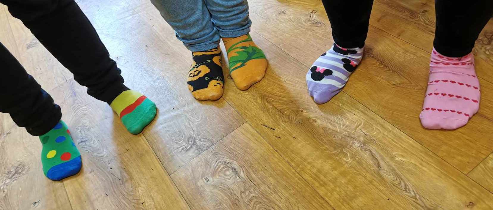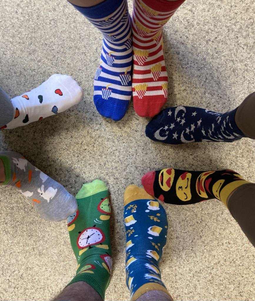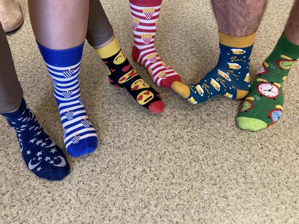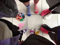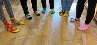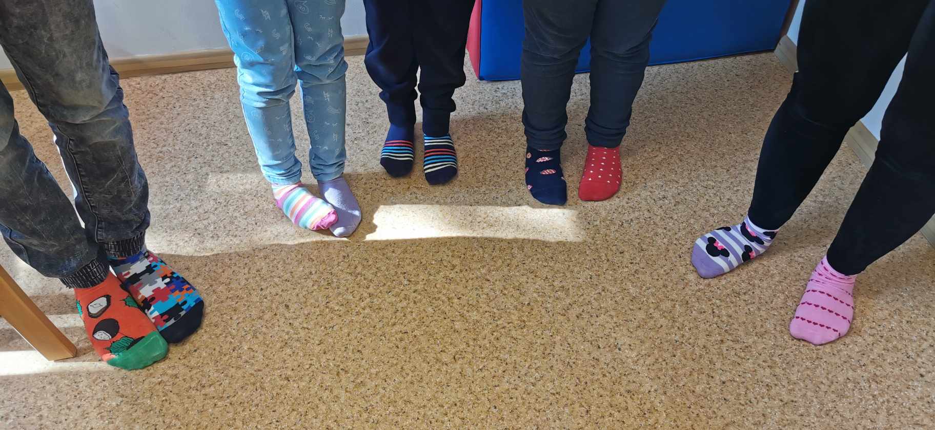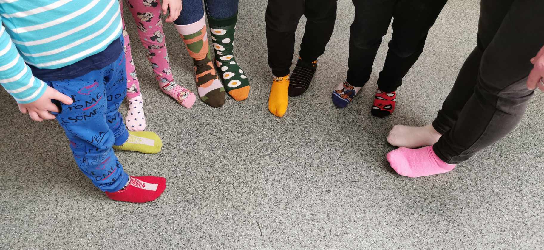 W tym dniu, jako wyraz solidarności, wielu uczniów jak i pracowników założyło kolorowe skarpetki "nie do pary".