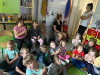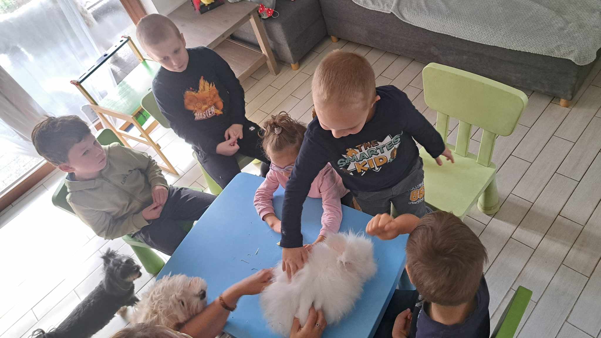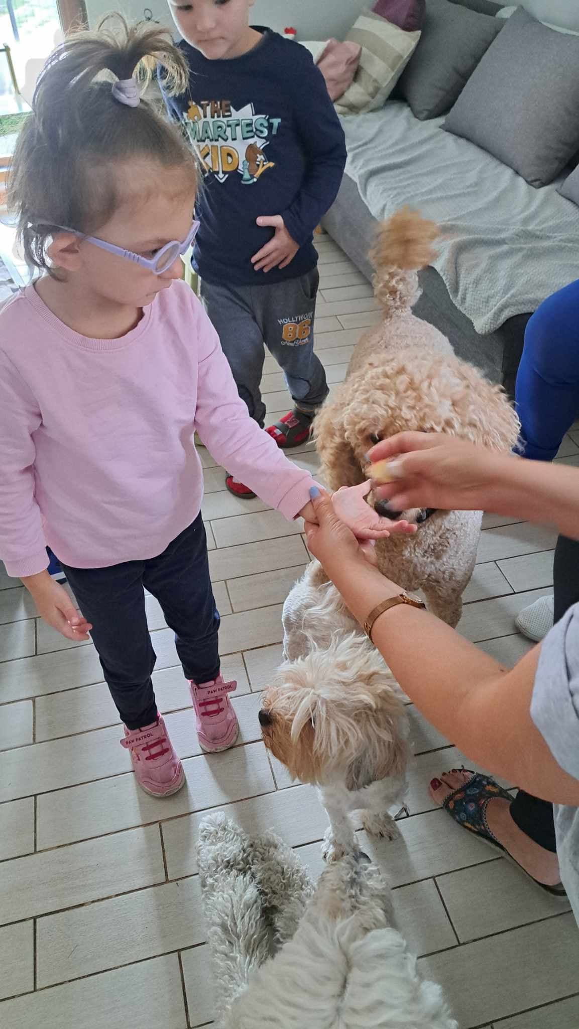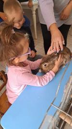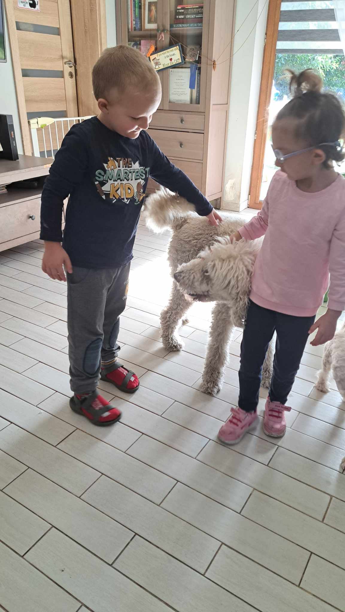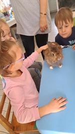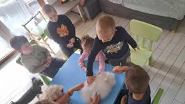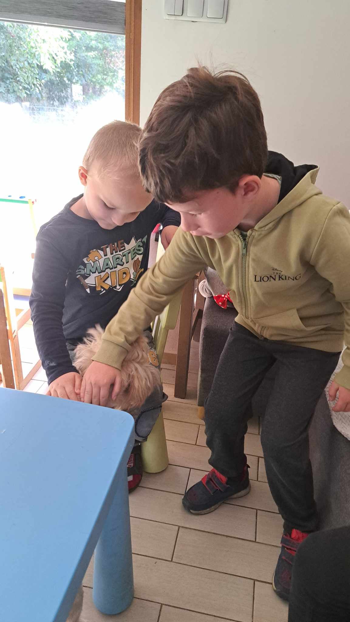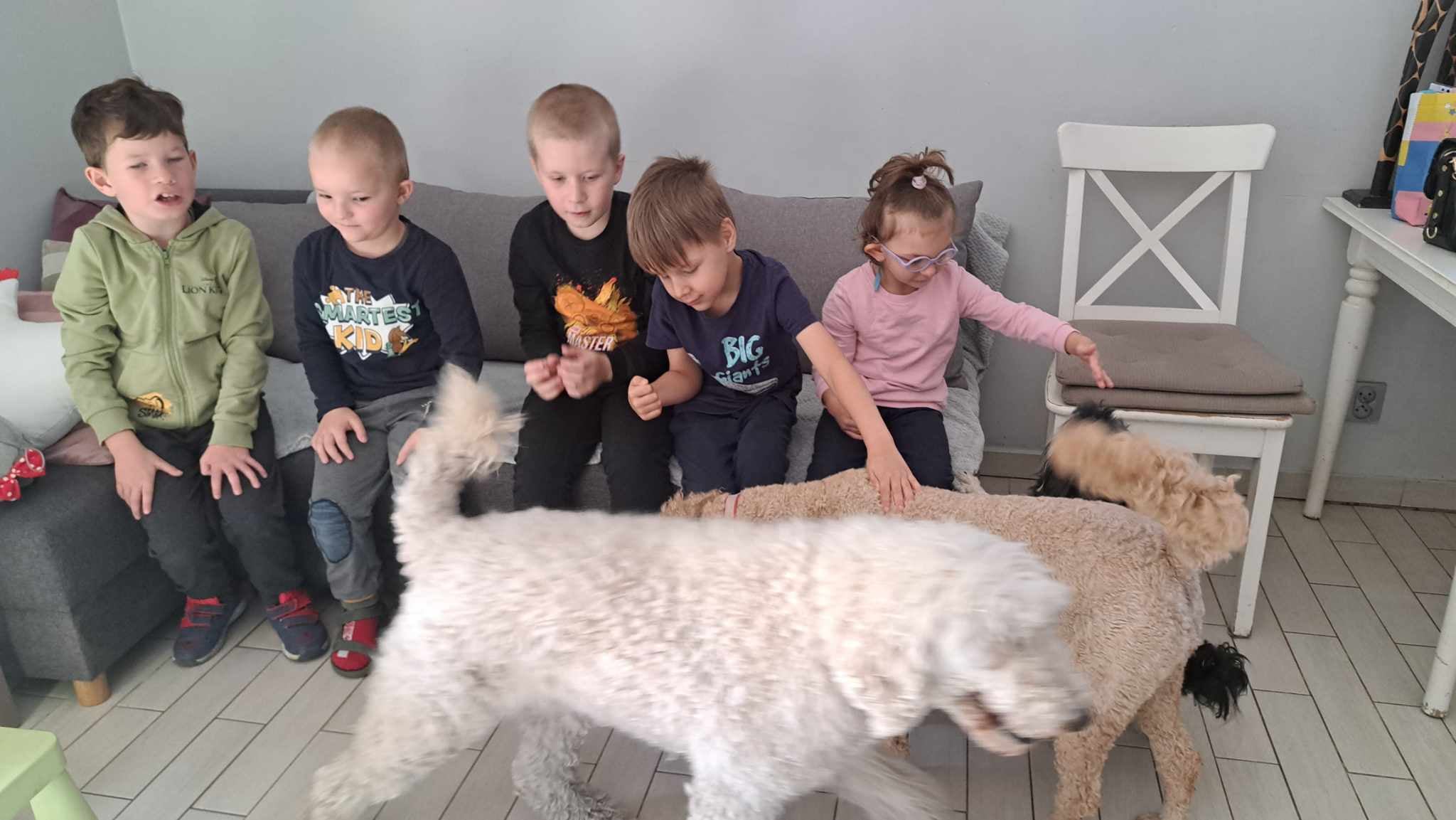 Pszczółki w odwiedzinach w hodowli "Domisie" w ramach projektu " Bliżej pieska". Realizacja zadania: poznajemy i uczymy się opiekować zwierzątkami domowymi.