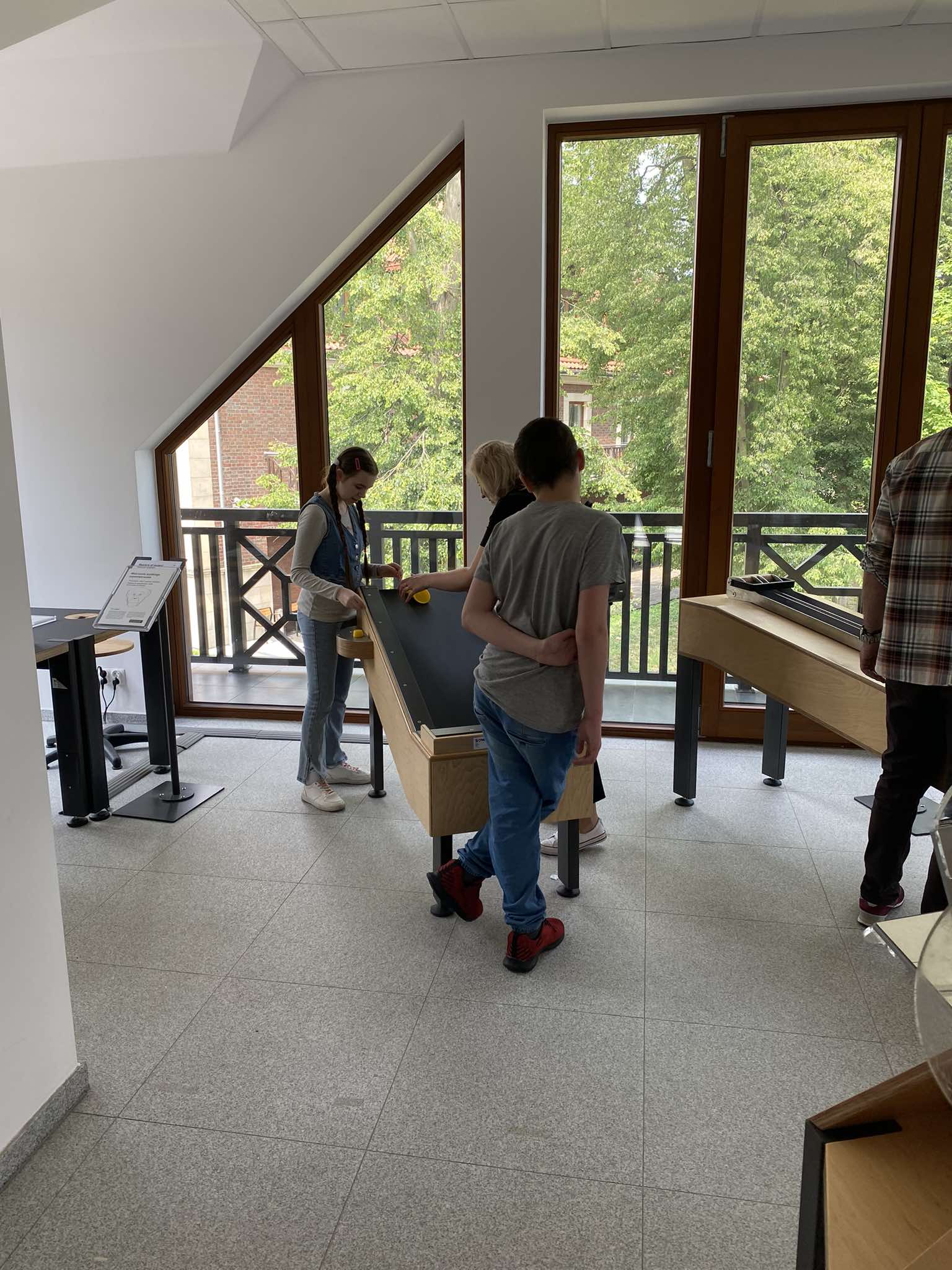 Interaktywna ekspozycja składa się z dwóch części: wystawowej oraz Majsterni. W części wystawowej znajduje się 18 angażujących eksponatów, ukazujących doświadczalny charakter nauki. Z kolei Majsternia to przestrzeń do samodzielnego i kreatywnego rozwiązywania zadań konstrukcyjnych i logicznych. Każdy znalazł tu coś interesującego dla siebie.