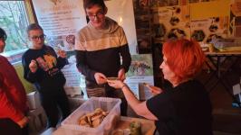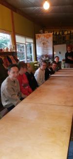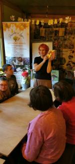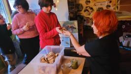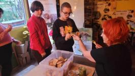 Skoro pasieka to i miód. By móc efektywnie pracować musieliśmy się wzmocnić kanapkami z różnego rodzaju miodami. Następnie przystąpiliśmy do wymagającej pracy - wałkowania ciasta oraz wycinania za pomocą wielokształtnych foremek pierniczków, które następnie zostały wypieczone. Po upieczeniu lukrowaliśmy i ozdabialiśmy pierniczki według własnej inwencji twórczej. Efekty były zaskakujące.