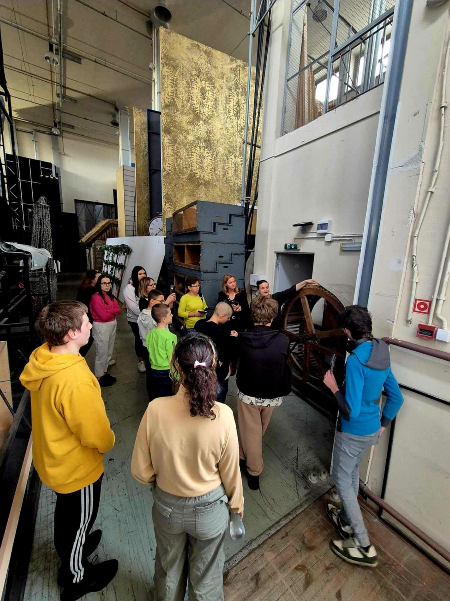 W dniu dzisiejszym uczniowie klas 1-2J, 8r i 3 Branżowej uczestniczyli w zajęciach "Za kulisami" w Teatrze Wielkim w Łodzi. Pani Ewa, opowiadając ciekawe rzeczy oprowadzała nas po teatrze, gdzie mogliśmy zobaczyć magazyn kostiumów mieszczący ponad 55 tys. kostiumów, pracownie malarskie zajmujące powierzchnię jak 2,5 boiska do siatkówki. Stanęliśmy na jednej z największych scen operowych w kraju i Europie oraz uczestniczyliśmy w próbie artysty muzyka, który przygotowywał się do wieczornego występu. Wizyta za teatralnymi kulisami to niezapomniana przygoda nie tylko dla tych najmłodszych, ale również dla tych trochę starszych.