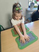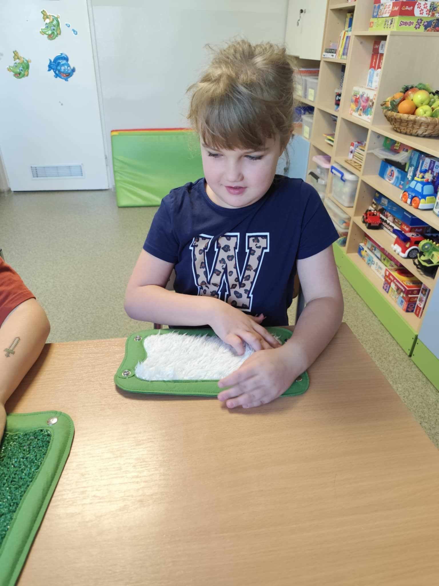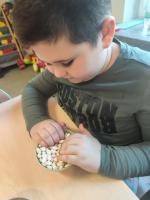 Zabawy dla zmysłów w ramach projektu "Doświadczam, wiem, potrafię" finansowanego ze środków Miniesterstwa Edukacji Narodowej w ramach programu "Kto Ty jesteś? - Polak mały". Przedszkolaki usprawniały swój dotyk.