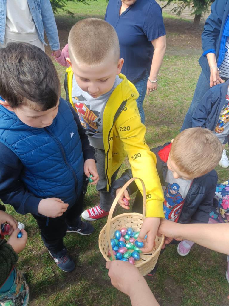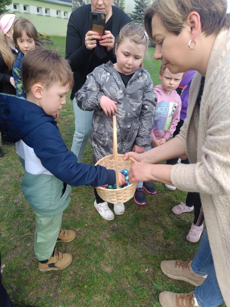 W naszym przedszkolu odbyły się zabawy wielkanocne. Było udawanie skaczących zająców, naśladowanie odgłosów kurczaczka i baranka, rozwiązywanie zagadek związanych z Wielkanocą, wyścigi z jajkiem na łyżce oraz szukanie pisanek. Dzieci były zachwycone.
