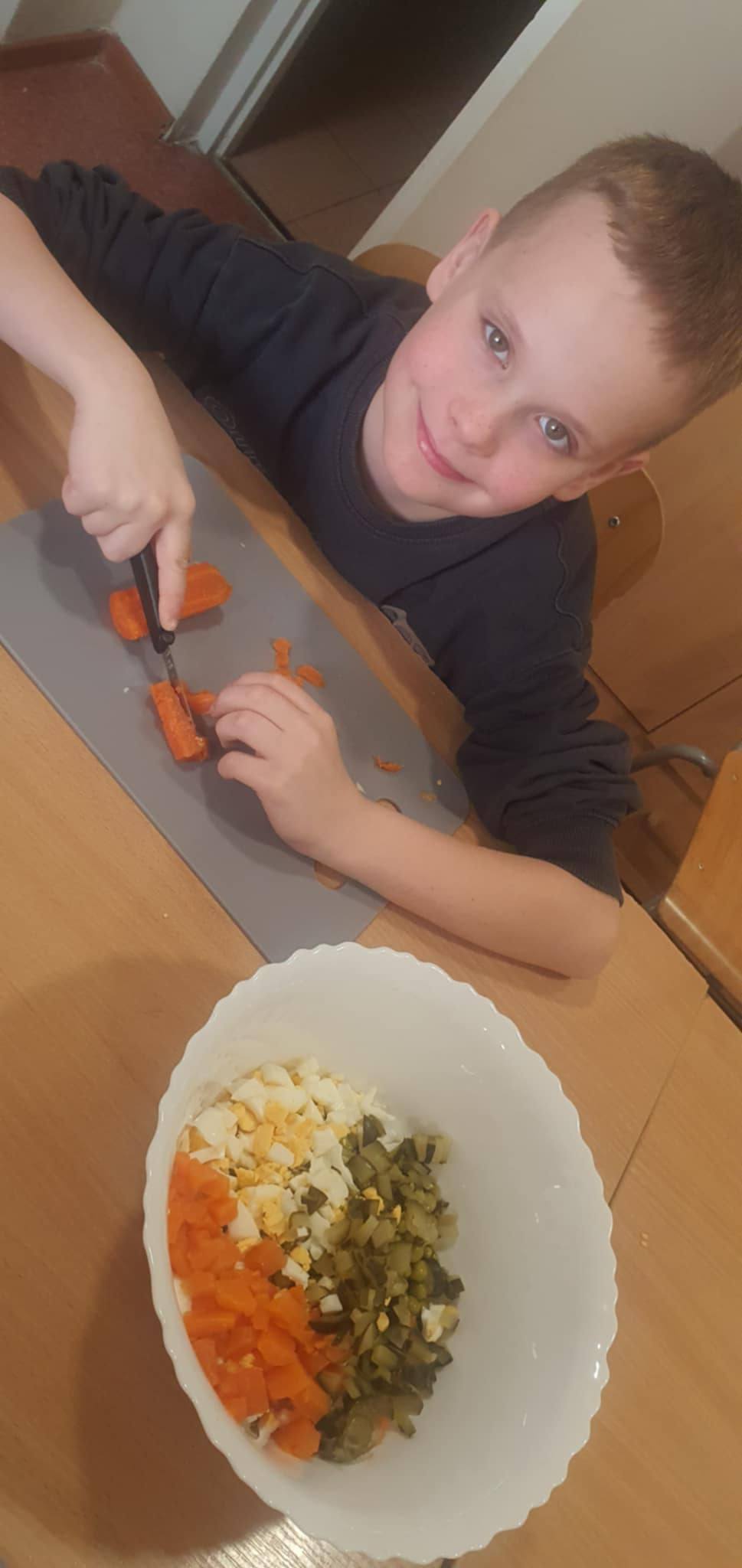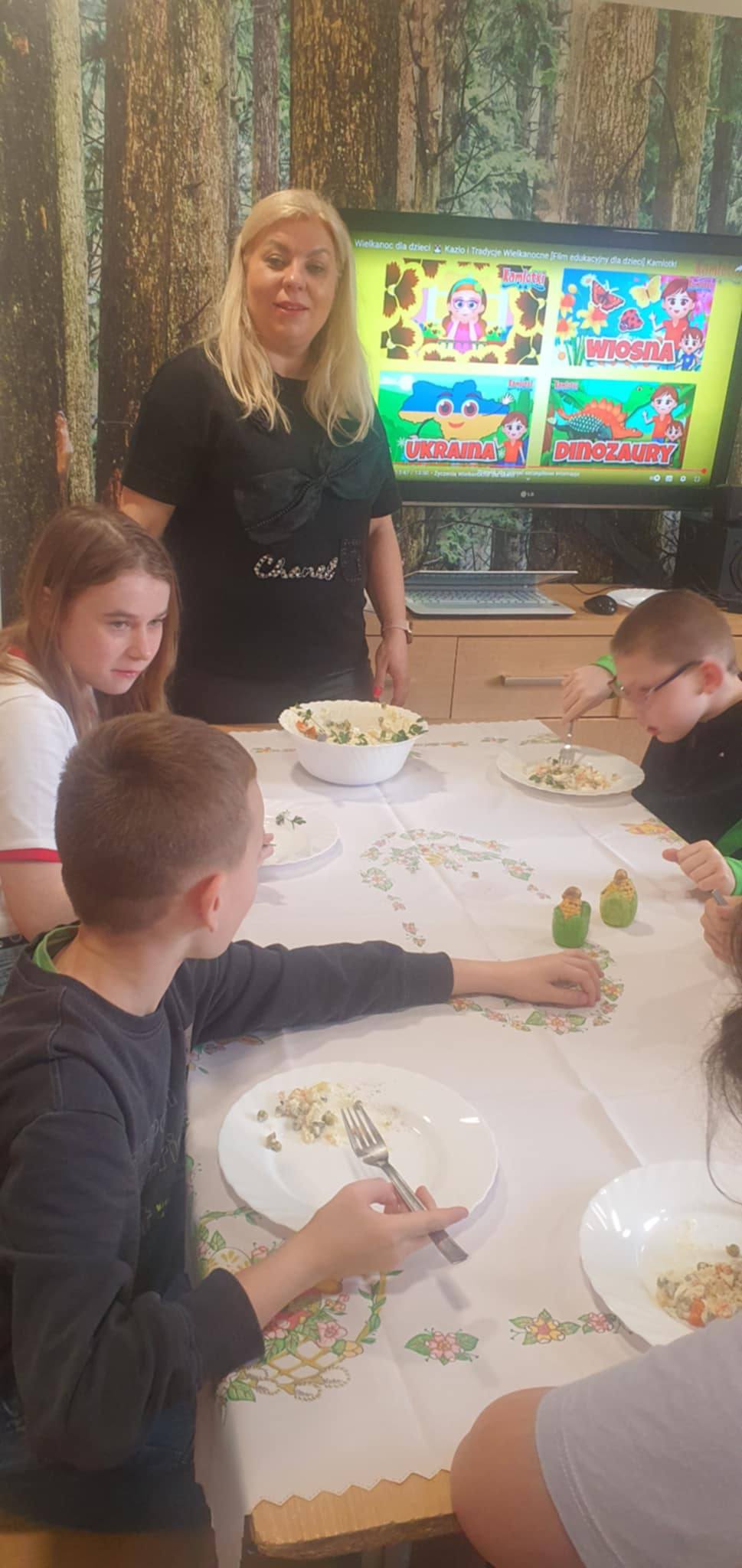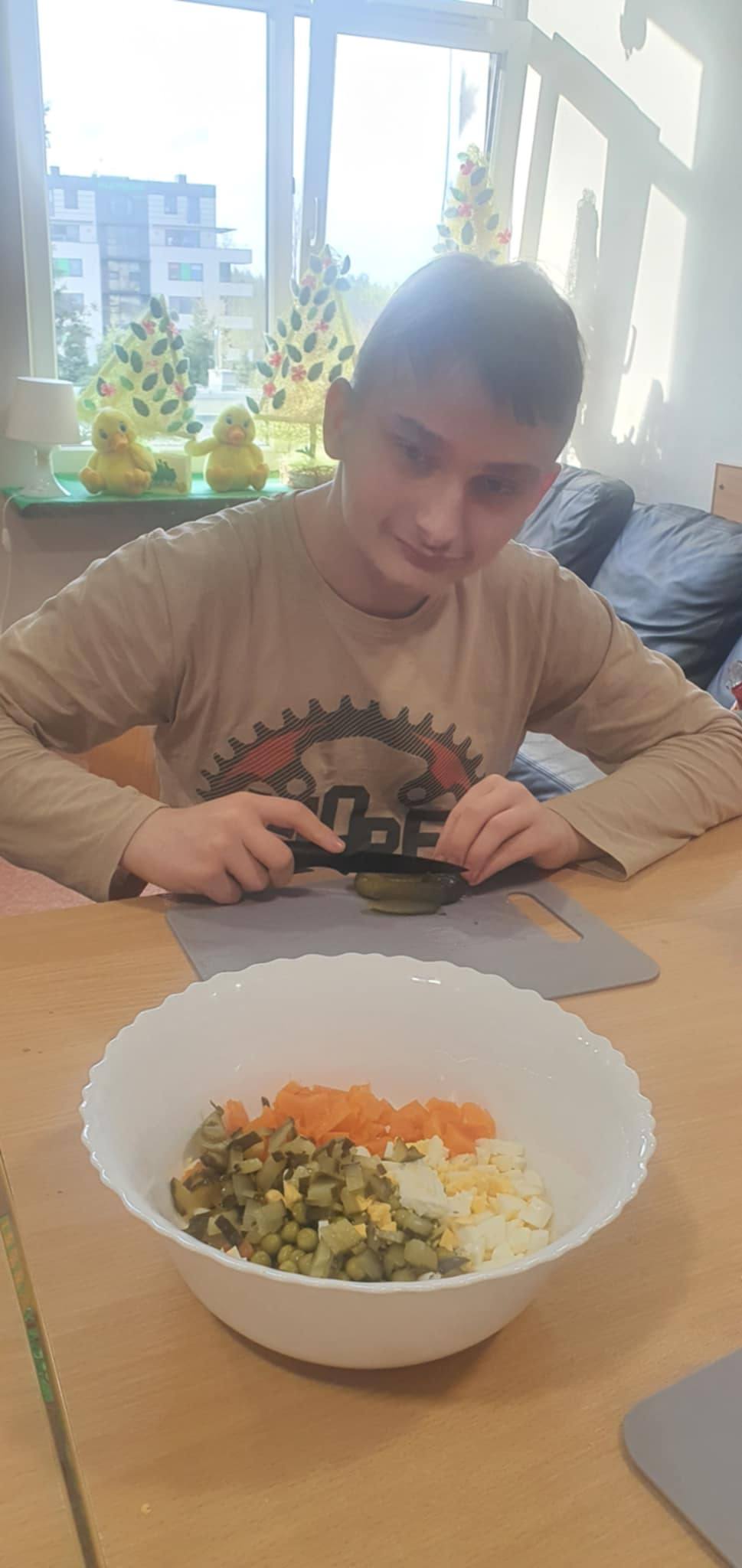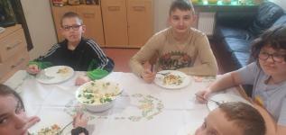 Uzupełnieniem spotkania były zajęcia kulinarne - wspólnie przygotowano tradycyjną potrawę - sałatkę warzywną.