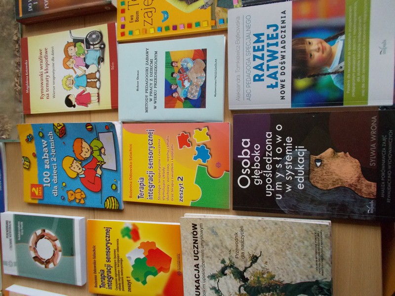 Pani Renata Manista przygotowała w tym dniu ekspozycję książek, które mogły zainteresować nauczycieli pracujących z dziećmi z niepełnosprawnością w stopniu głębokim. Pani Renia służyła pomocą i radą w wyborze lektury zawierającej poszukiwane metody pracy i oferowała nowości wydawnicze.