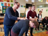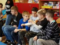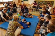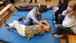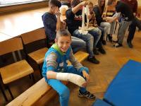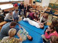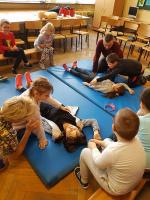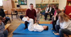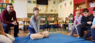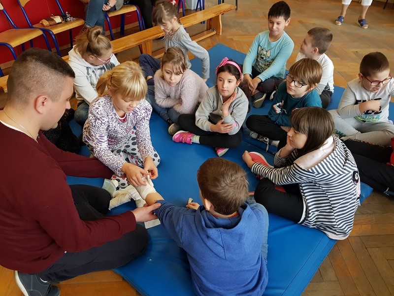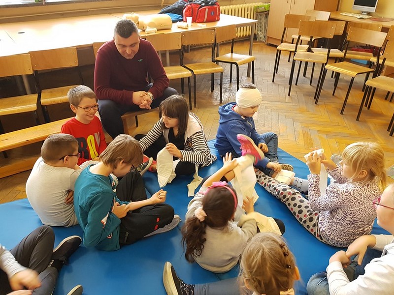 W dniu 12 listopada uczniowie wzięli udział w zajęciach z zakresu udzielania pierwszej pomocy przedmedycznej, które poprowadził ratownik medyczny pan dr n. med. Dariusz Zawadzki. Zademonstrował on sposoby udzielania pierwszej pomocy, a następnie uczniowie pod jego czujnym okiem mogli sami wykonać wszystkie zaprezentowane ćwiczenia. Dzieci z prawdziwym zapałem podjęły wyzwanie, wiedząc, że znajomość zasad udzielania pierwszej pomocy może ocalić czyjeś życie.