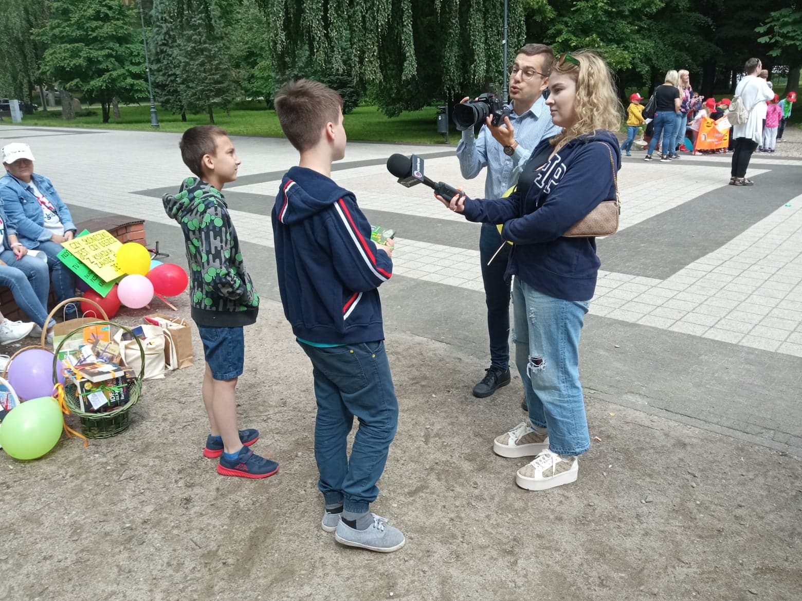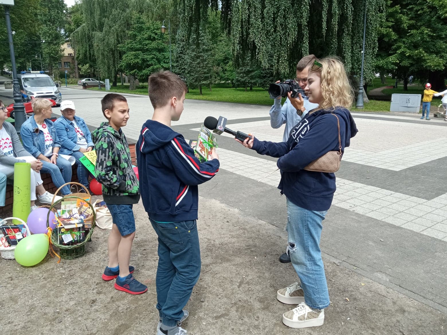 Impreza rozpoczęła się od występów dzieci i młodzieży na scenie Parku Miejskiego, a potem barwny korowód przemieszczał się ulicami miasta do siedziby CER obdarowując mieszkańców Zgierza książkami i objaśniając ideę bookcrossingu. Nasi uczniowie - Michał Borkowski I Mikołaj Szadkowski - udzielili wywiadu telewizji Centrum i wyczerpująco odpowiedzieli na pytania: czym dla nich jest czytanie i dlaczego warto czytać książki.