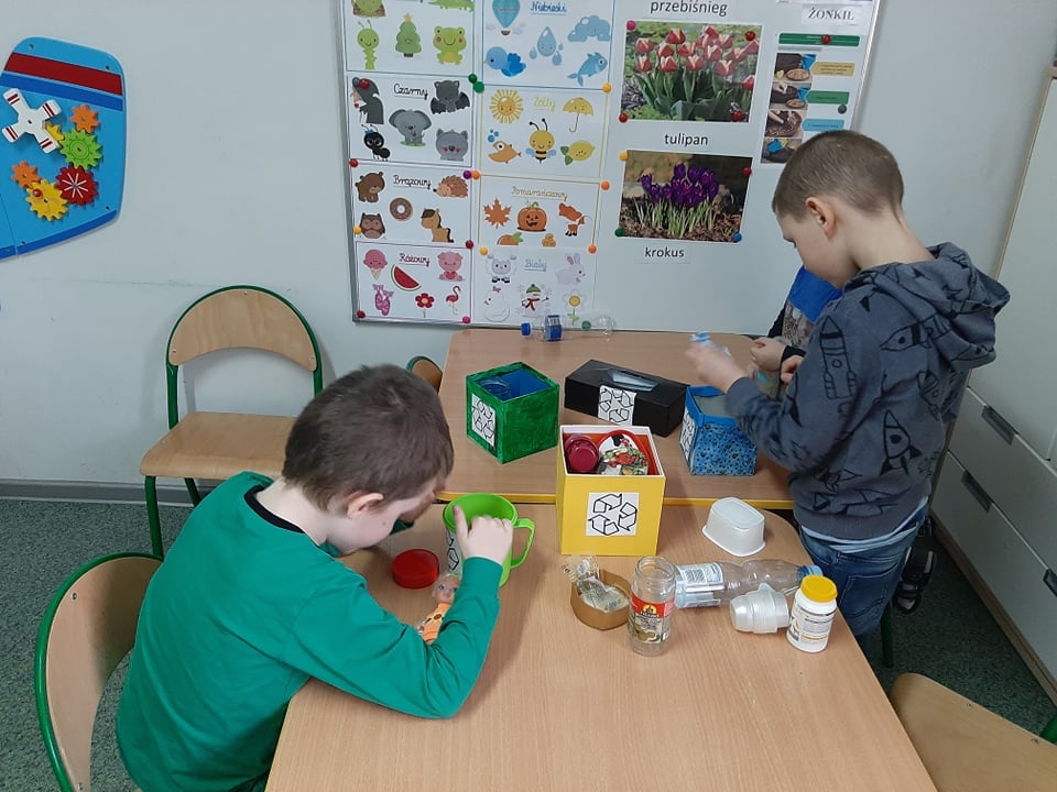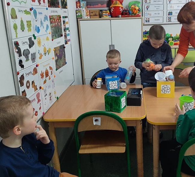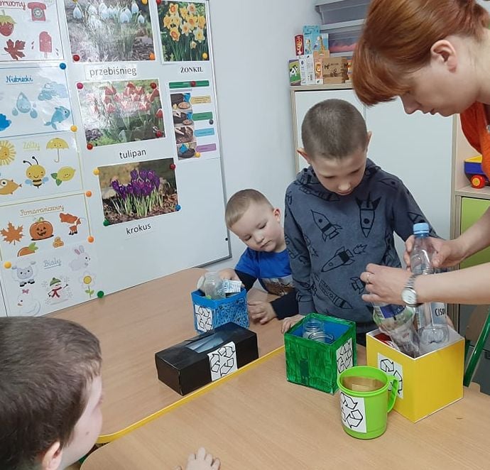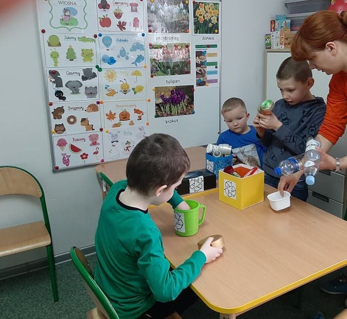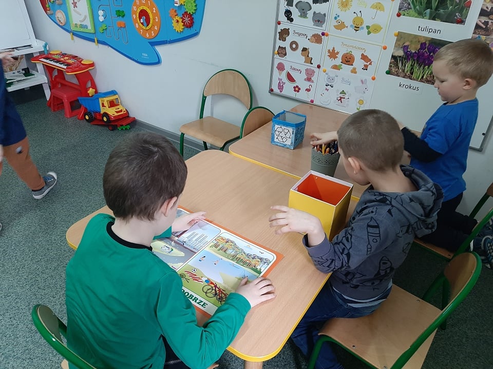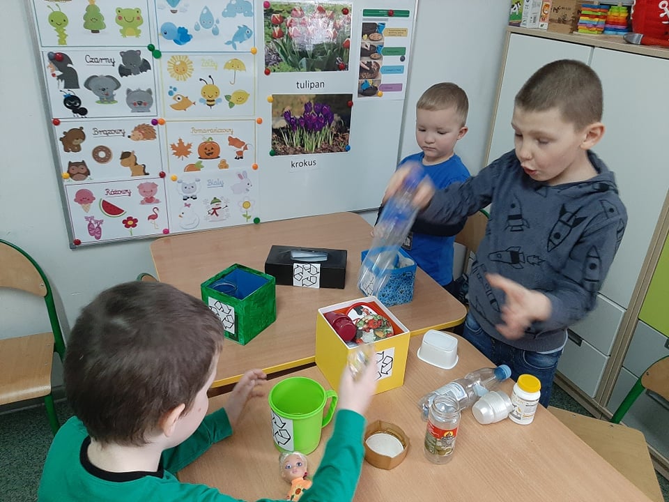 22 kwietnia, w związku z Dniem Ziemi, dzieci z grupy przedszkolnej "Pszczółki" zapoznały się z zasadami segregowania śmieci oraz zasadami ekologicznego korzystania z wody i prądu. Okazało się, że dbać o środowisko można nawet w tak prosty sposób jak wyrzucając papierek do odpowiedniego kosza czy dokręcając wodę po umyciu rąk.