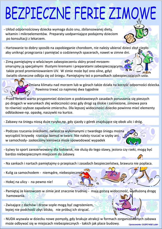 Z okazji zbliżających się ferii zimowych w naszym województwie chcielibyśmy życzyć Wam wspaniałego i przede wszystkim bezpiecznego wypoczynku zimowego.