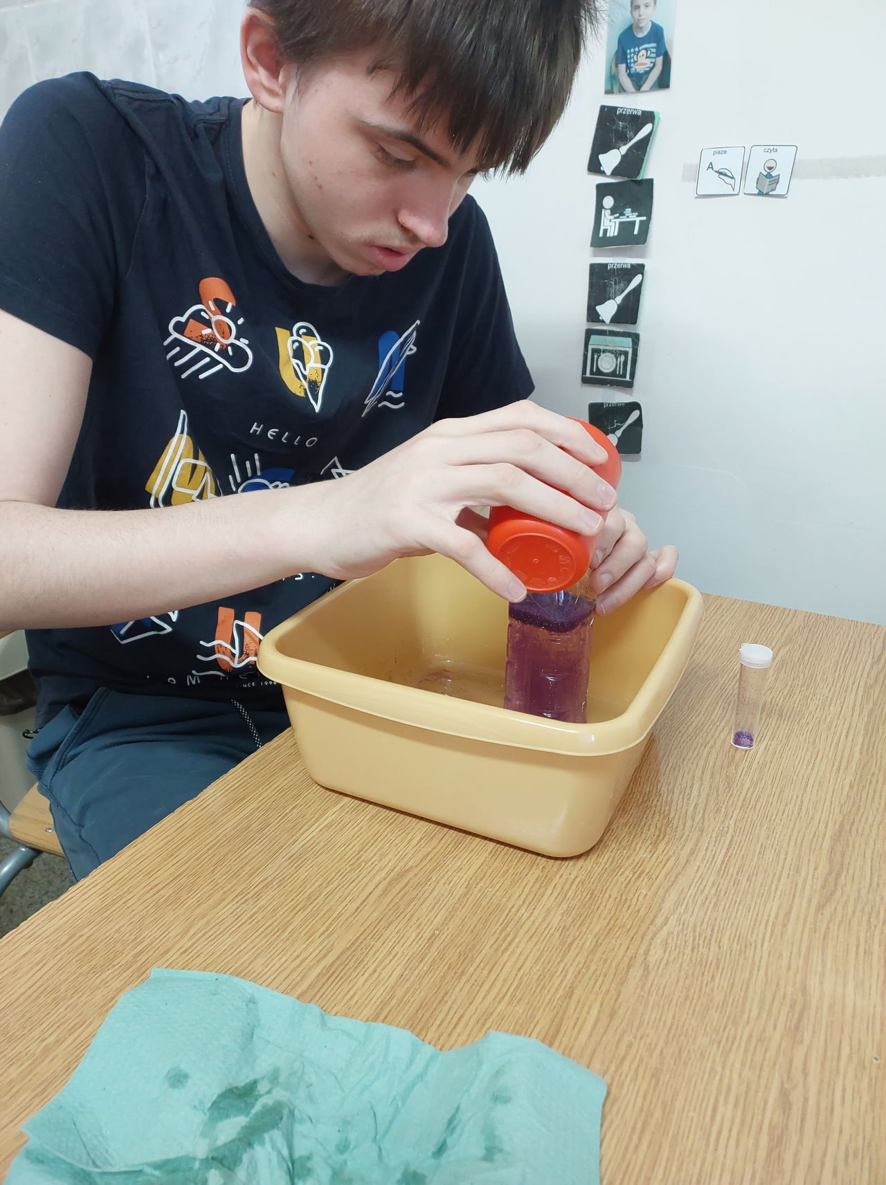 Barwimy, mieszamy kolory, pobudzamy zmysły w ramach Projektu Edukacyjnego "Gramy Zmysłami". Na dzisiejszych zajęciach klasa 5j, 7j, 8j stymulowała zmysł wzroku.