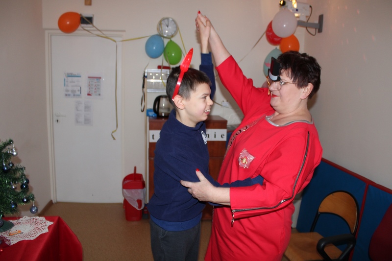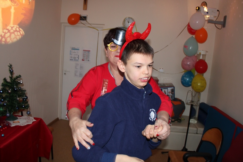 Podczas trwającego karnawału przenieśliśmy się w góry poprzez wykonaną scenerię, muzykę, stroje, instrumenty i taniec. Uczestnicy zajęć, jak widać na zdjęciach, pięknie się prezentowali. Aktywnie uczestniczyli w tym balu karnawałowym poprzez wystukiwanie rytmu na instrumentach perkusyjnych piosenki góralskiej pt. „Hej bystra woda!”, nucenie melodii w rytmie na „la, la, la” oraz zapoznanie z instrumentami muzycznymi charakterystycznymi dla góralskiej muzyki ludowej. Zajęcia te zaktywizowały uczestników, wzbudziły radość i podwyższyły poziom umiejętności muzyczno–rytmicznych.