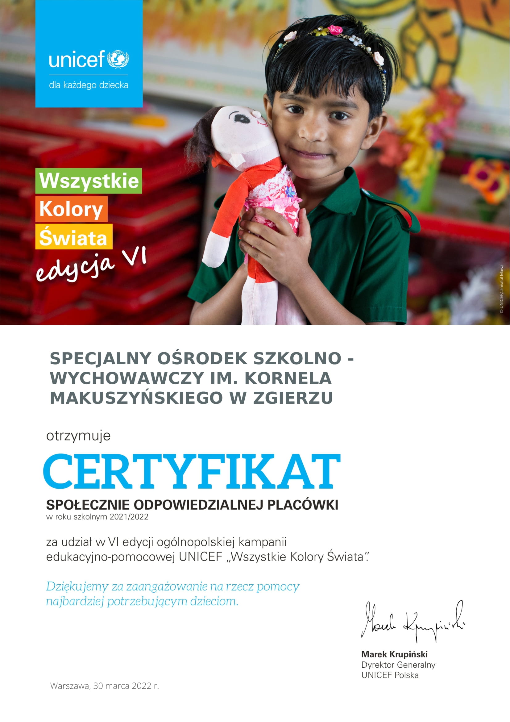 › Archiwum › Archiwum roku szkolnego 2021/2022 › Nasza współpraca z Unicef