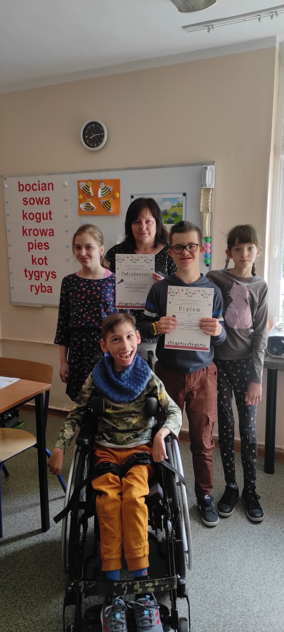 Uczniowie grup przedszkolnych oraz szkoły podstawowej klas I-III wzięli udział w Ogólnopolskim Konkursie piosenki ze wspomaganiem pod hasłem "Każdy może śpiewać". Celem konkursu było wzmacnianie samooceny dziecka oraz propagowanie alternatywnego wspomagania mowy. Gratulujemy pomysłów.