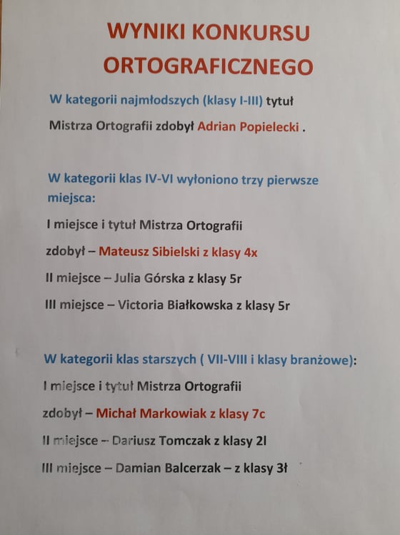 W dniu 21.01.2022 odbył się w naszym ośrodku konkurs ortograficzny pod hasłem: "Ortografia da się lubić". Uczniowie rywalizowali ze sobą w trzech kategoriach: klasy 1-3, klasy 4-6, klasy 7-8 oraz klasy szkoły branżowej. Lista laureatów w fotorelacji. Gratulujemy serdecznie wszystkim uczestnikom, a szczególnie zwycięzcom. Dyktanda wcale nie były takie łatwe, a niektórym udało się je wykonać bezbłędnie.