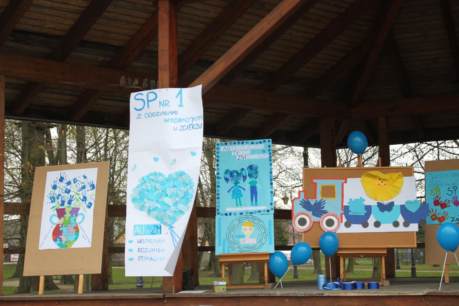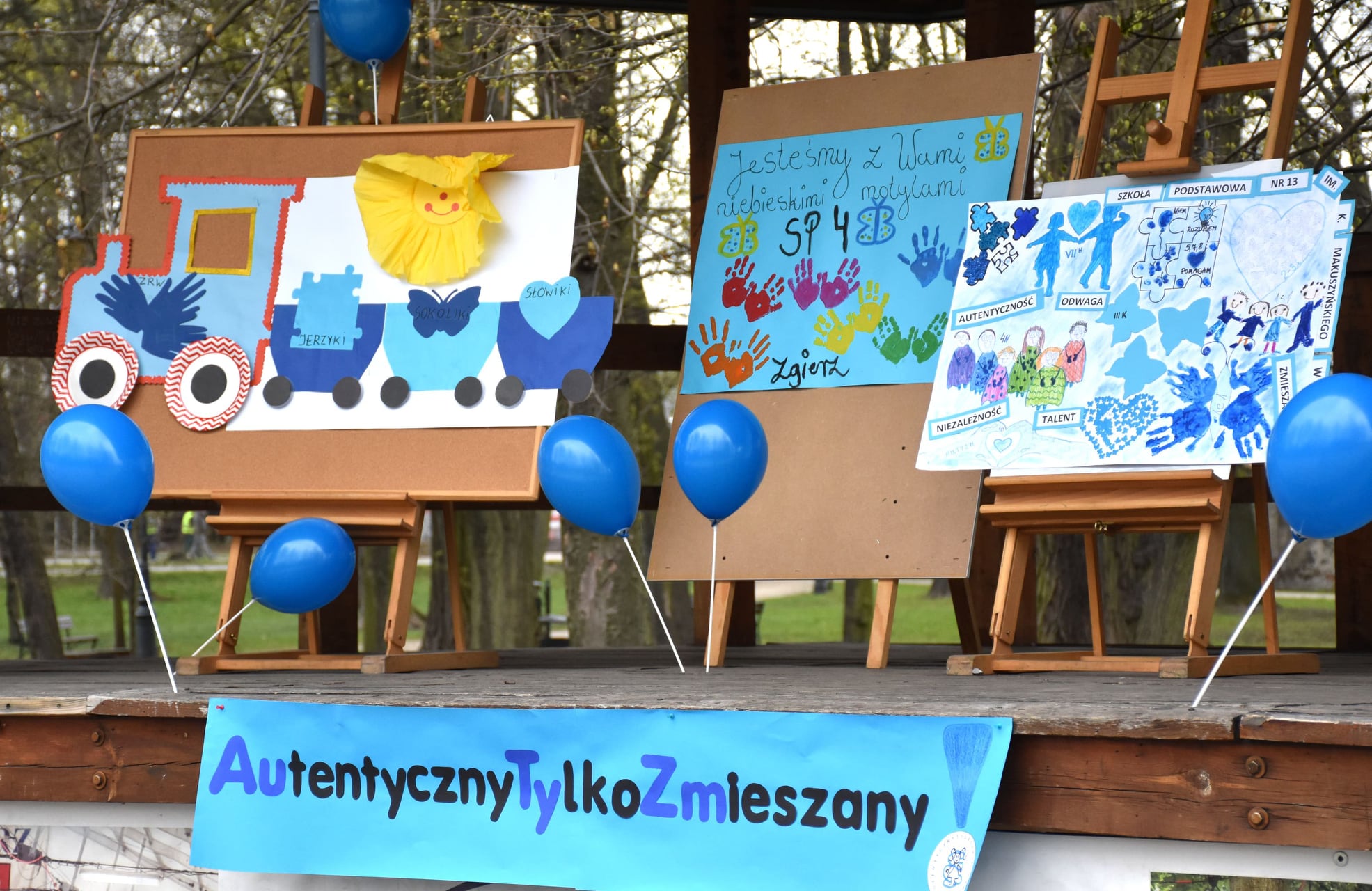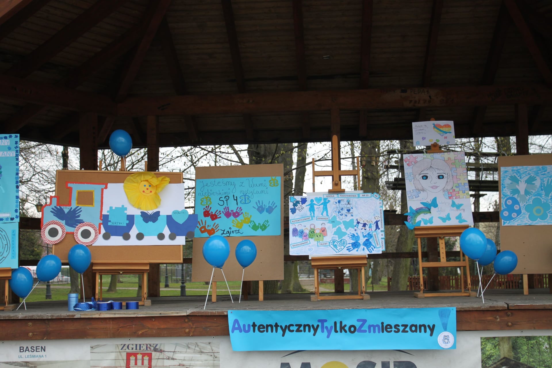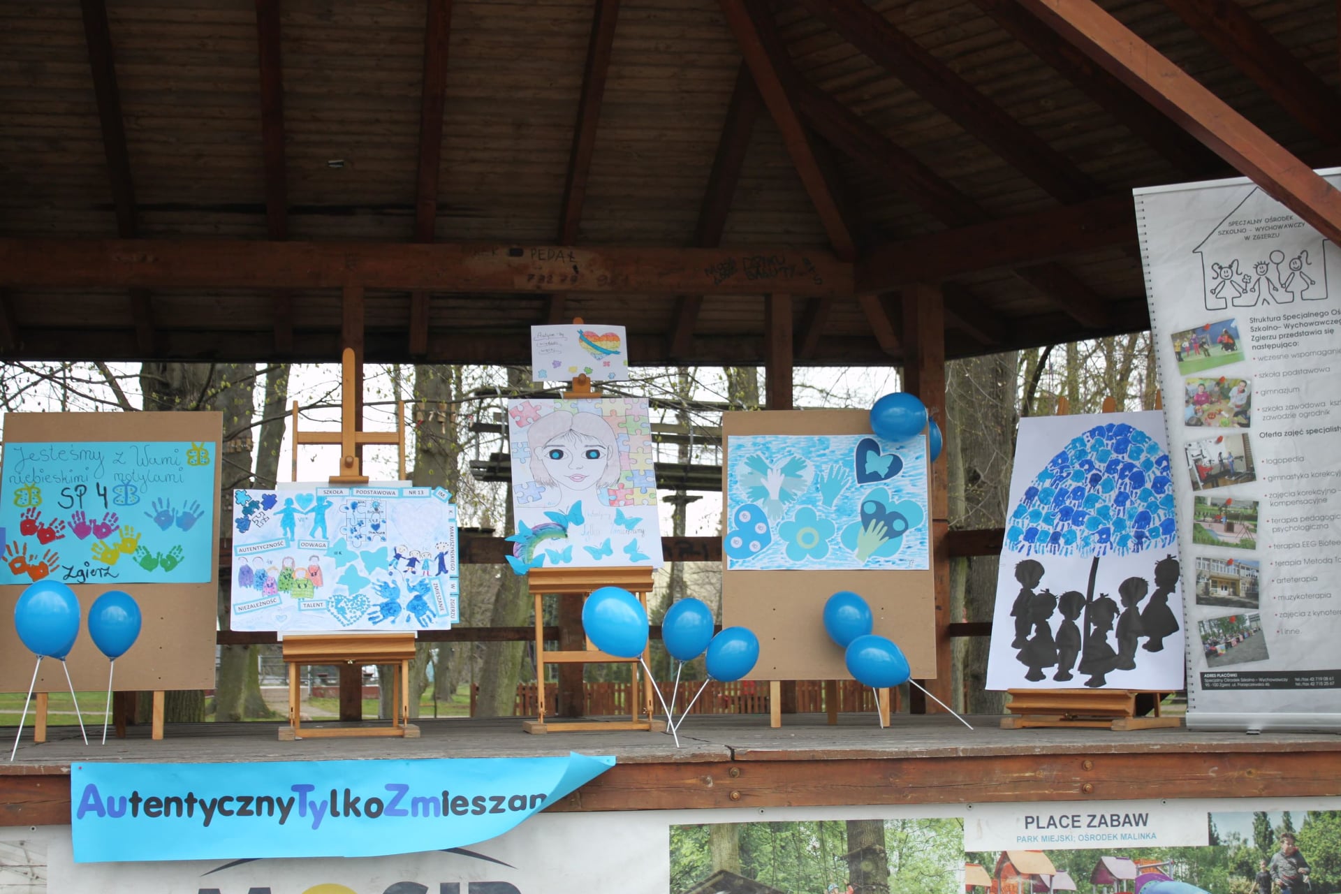 Podczas wydarzenia w parku zaprezentowano wystawę prac plastycznych odnoszących się do tematu autyzmu, przygotowanych przez wychowanków przedszkoli i uczniów szkół.