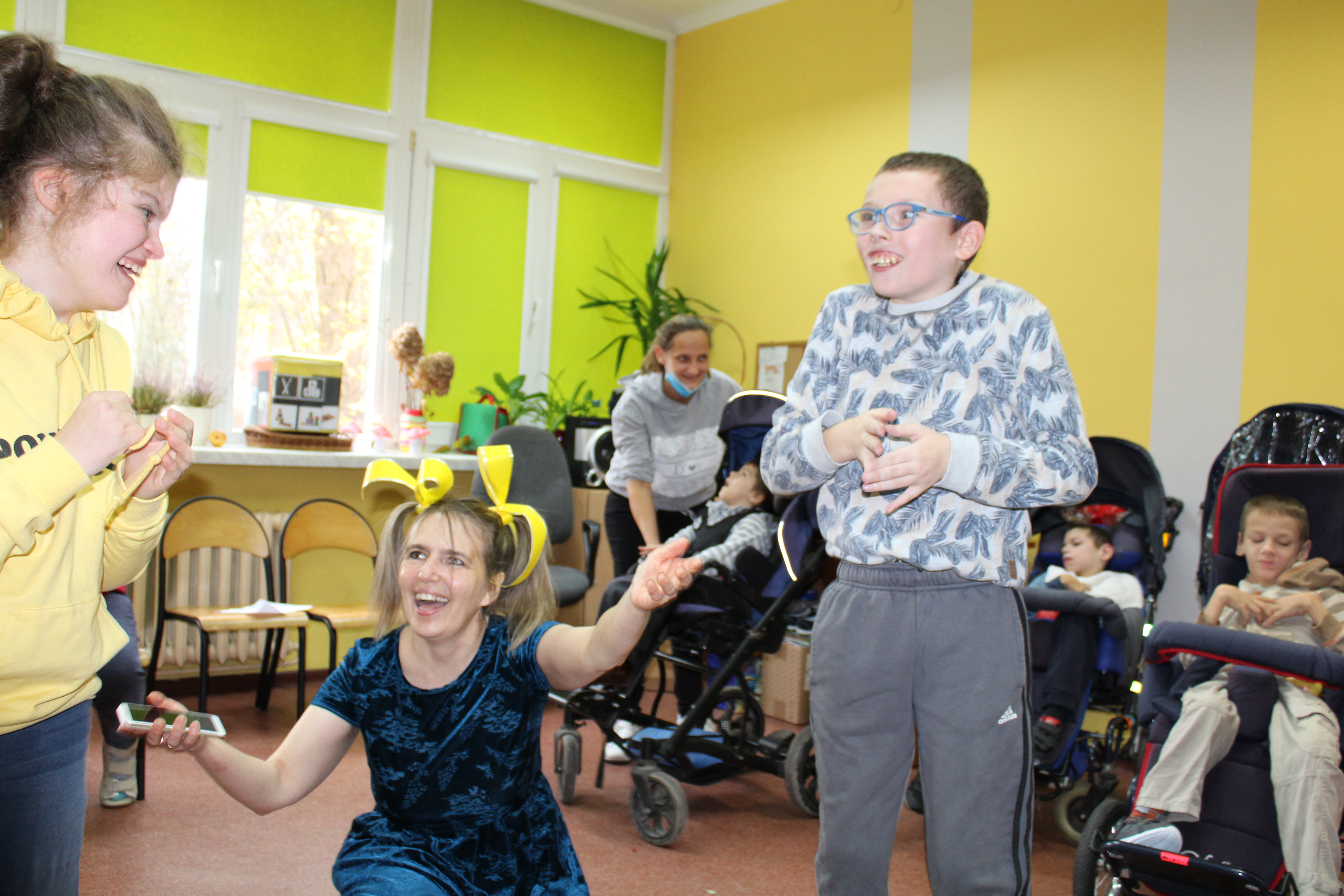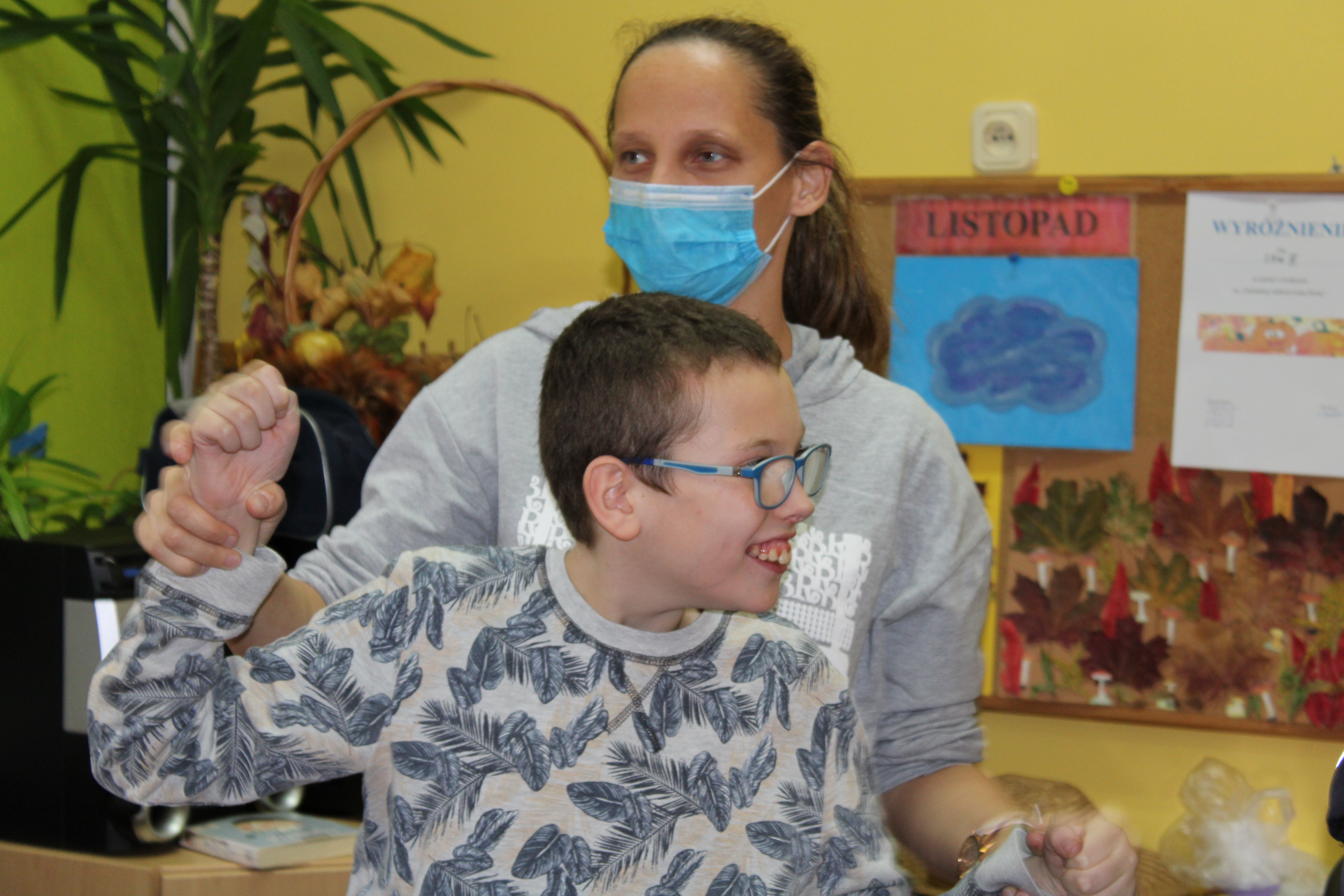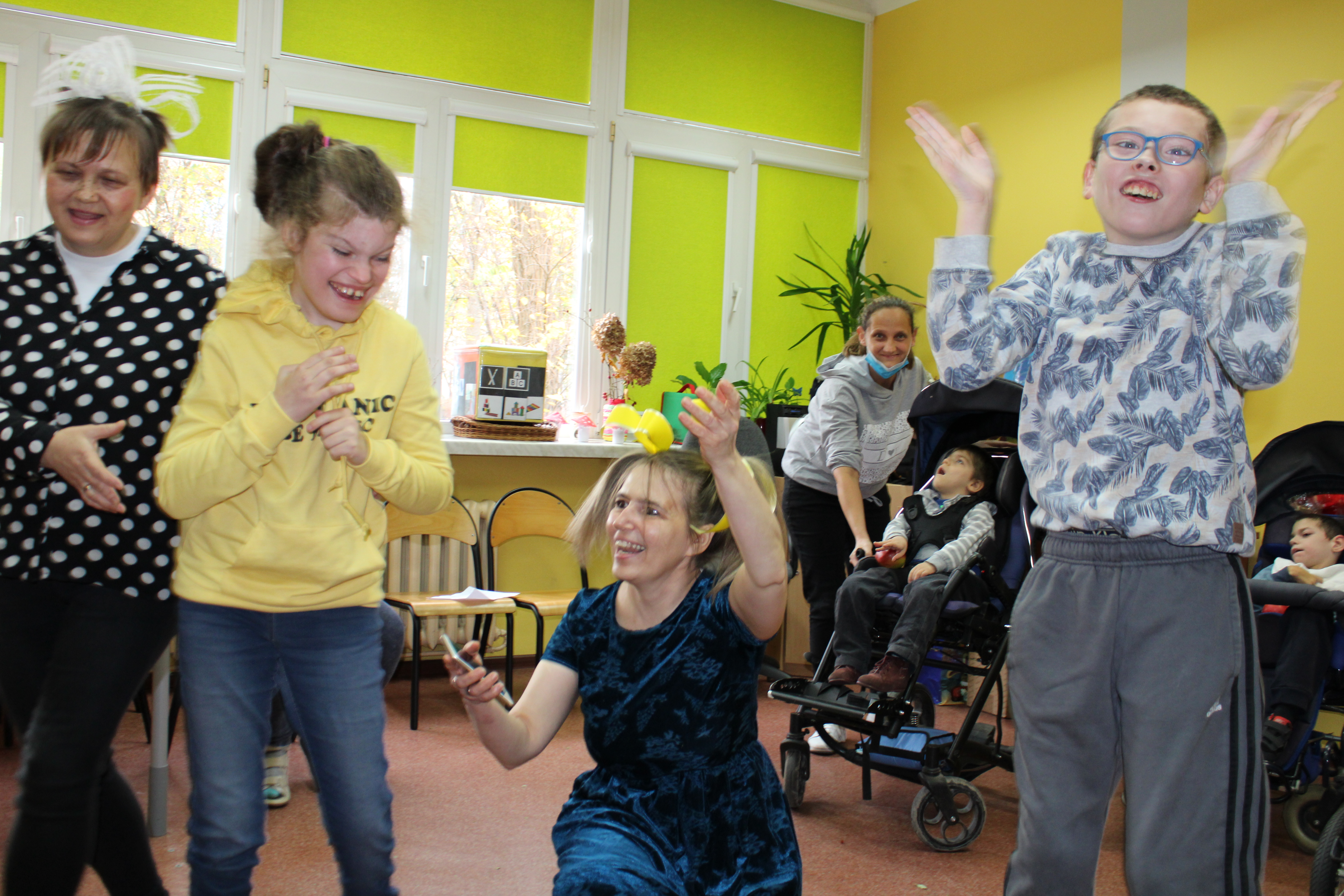 W naszym ośrodku w dniu 05.11.2021r. zorganizowaliśmy przedstawienie "Dary Jesieni" dla uczestników trzech zespołów Rewalidacyjno – Wychowawczych: Słowików, Sokolików i Jerzyków. Uczestnicy włączając się w przedstawienie poprzez taniec i polisensoryczne poznawanie darów jesieni odkrywali piękno tej pory roku.