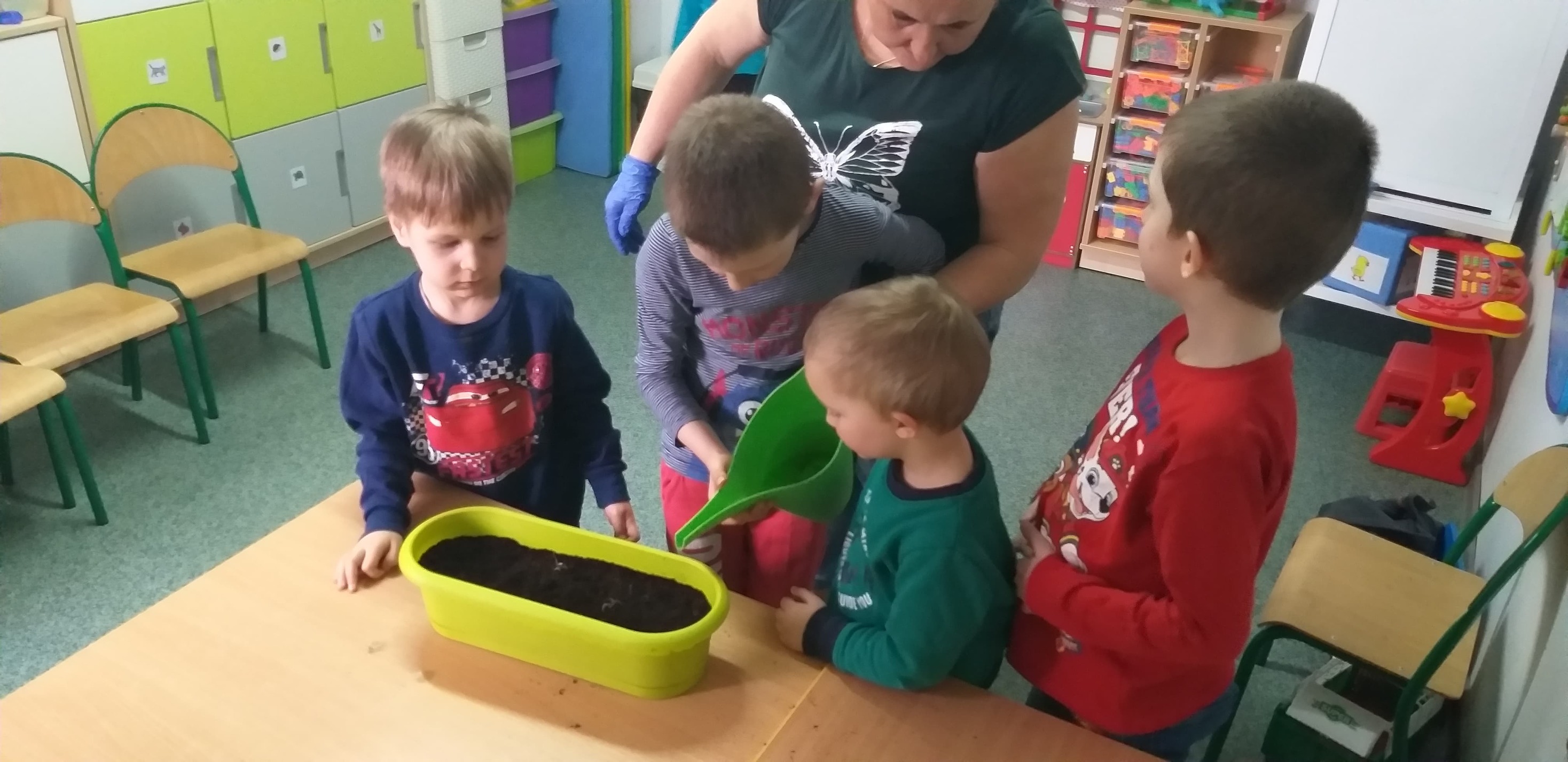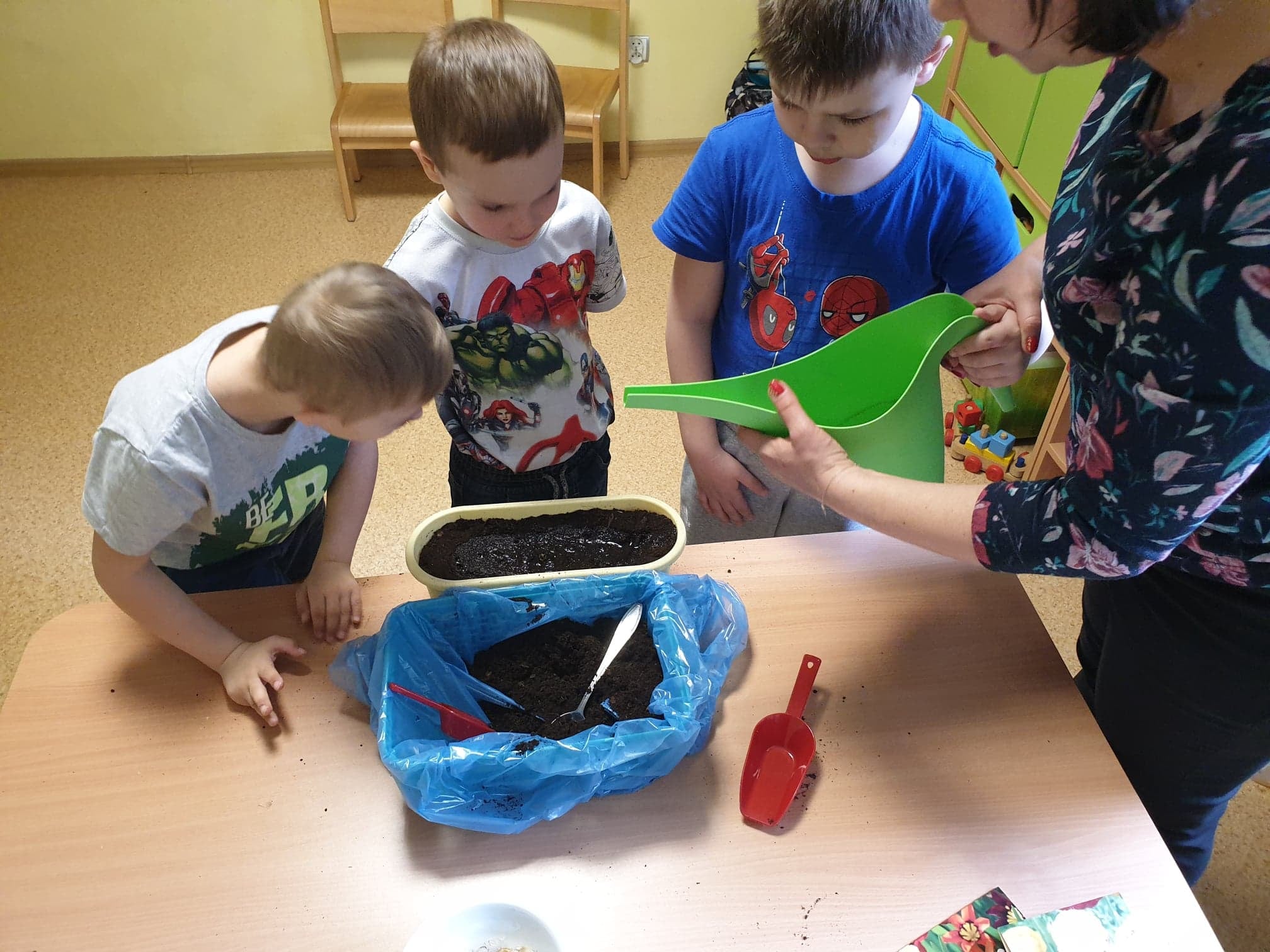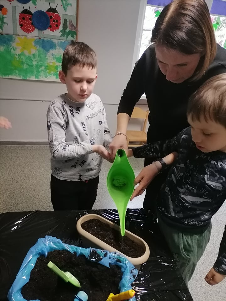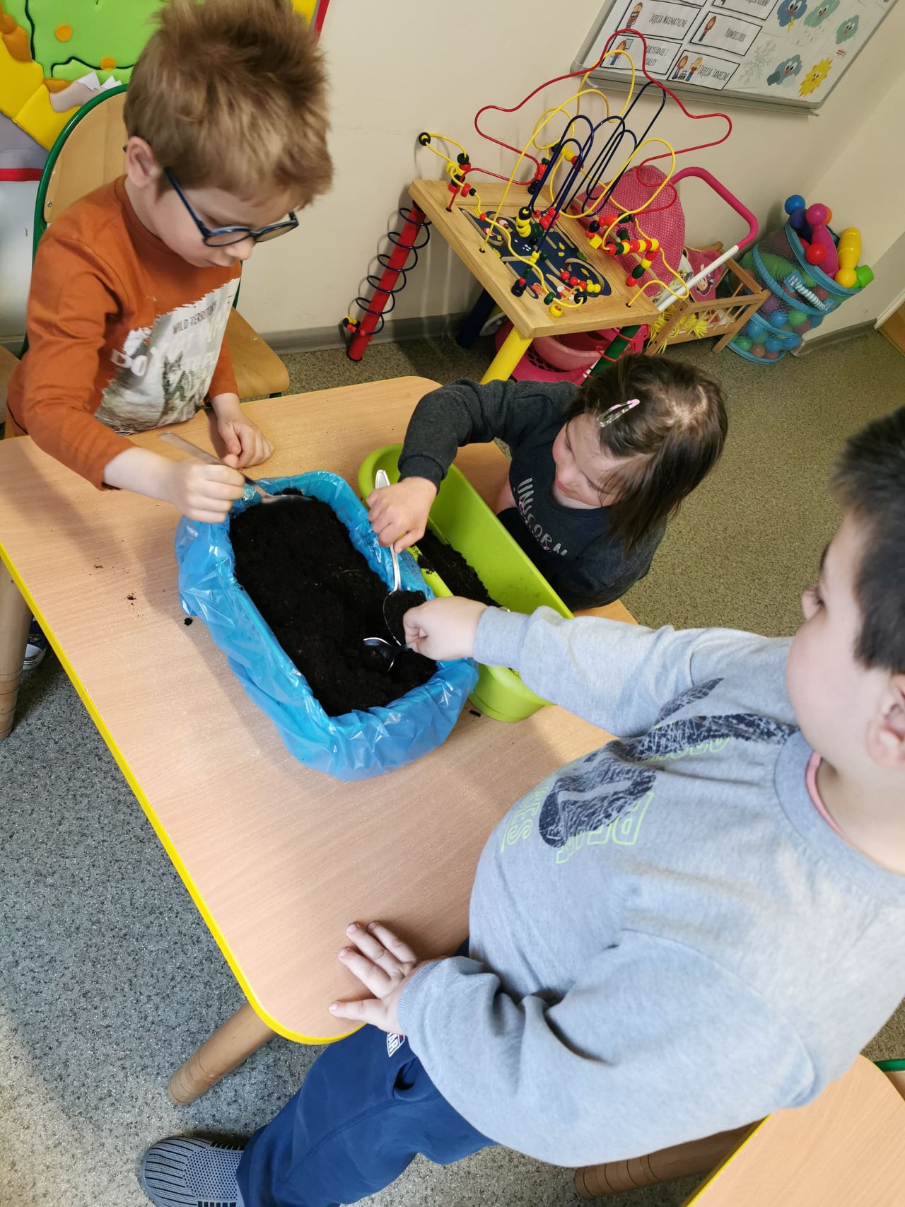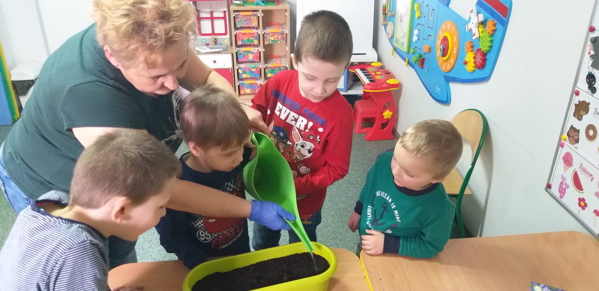 Wraz z nadejściem wiosny przedszkolaki postanowiły stworzyć w swoich klasach zielone kąciki. Nasi mali ogrodnicy podczas czwartkowych zajęć dowiedzieli się, co jest niezbędne dla roślin i samodzielnie wsadzili cebulki wiosennych kwiatów. Teraz przed nami codzienne podlewanie i pielęgnowanie roślin. Niecierpliwie czekamy na pierwsze efekty.