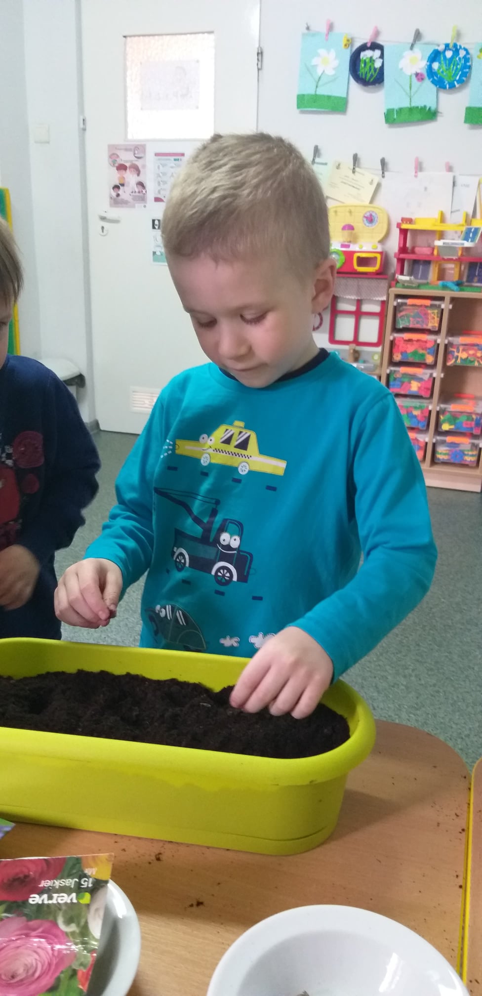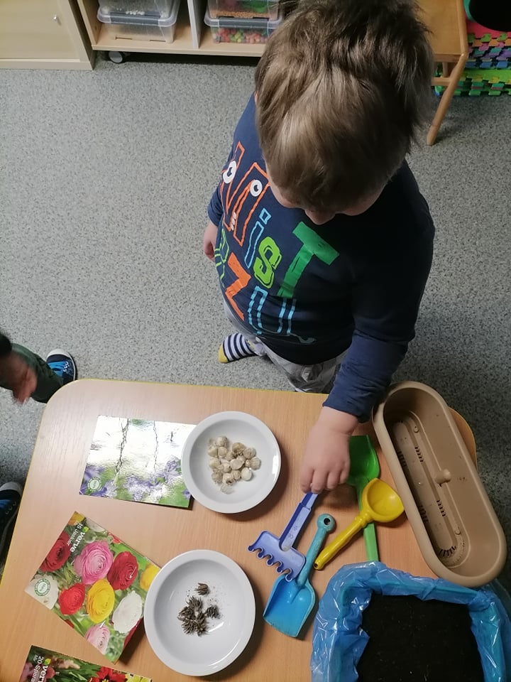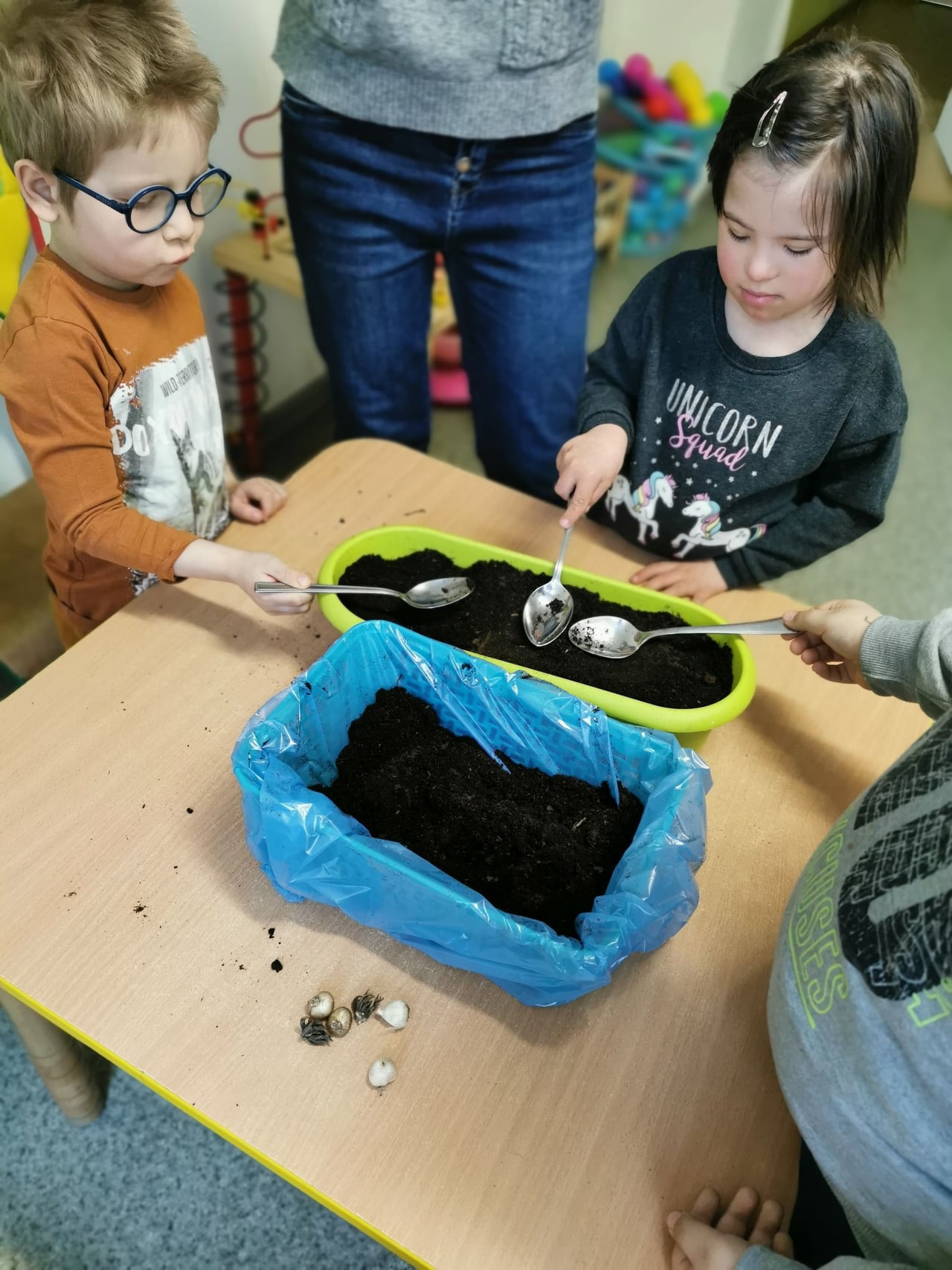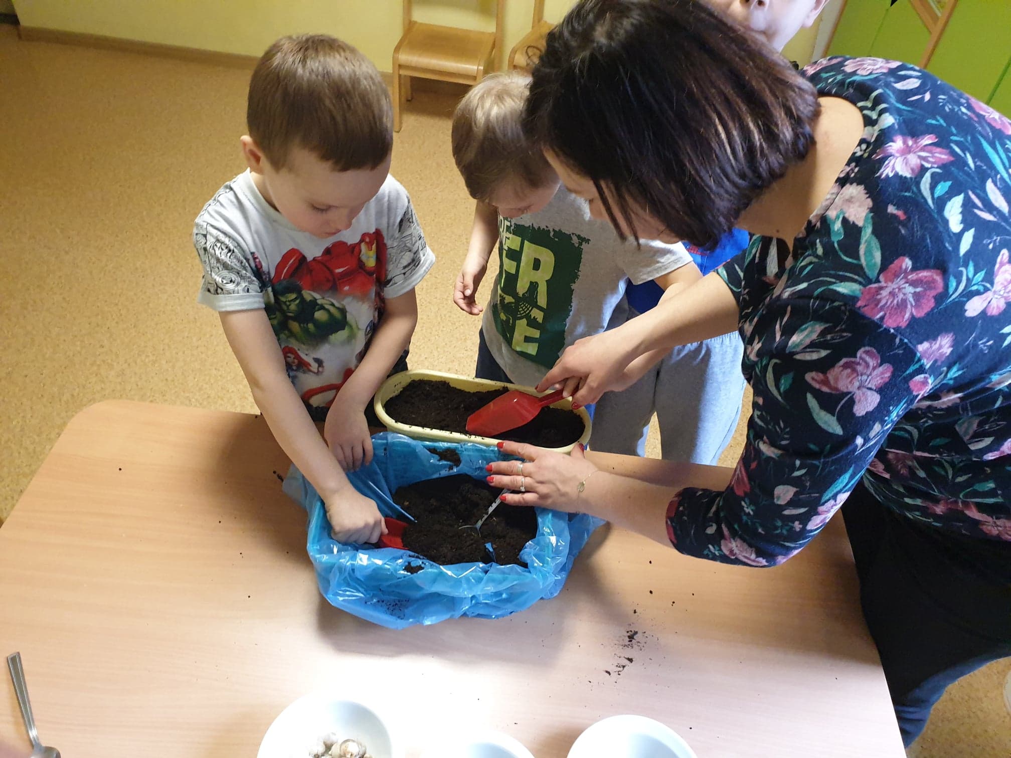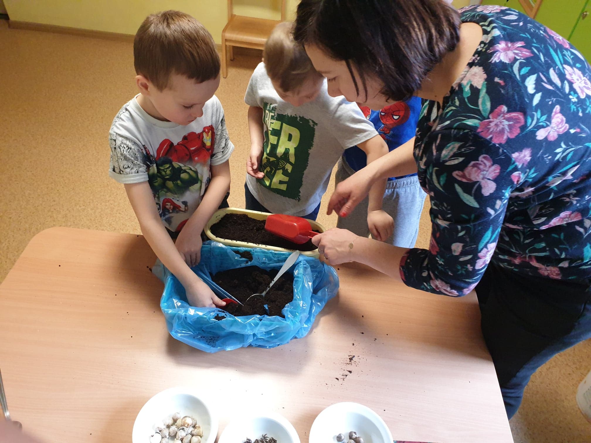 Wraz z nadejściem wiosny przedszkolaki postanowiły stworzyć w swoich klasach zielone kąciki. Nasi mali ogrodnicy podczas czwartkowych zajęć dowiedzieli się, co jest niezbędne dla roślin i samodzielnie wsadzili cebulki wiosennych kwiatów. Teraz przed nami codzienne podlewanie i pielęgnowanie roślin. Niecierpliwie czekamy na pierwsze efekty.