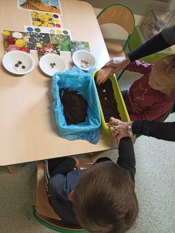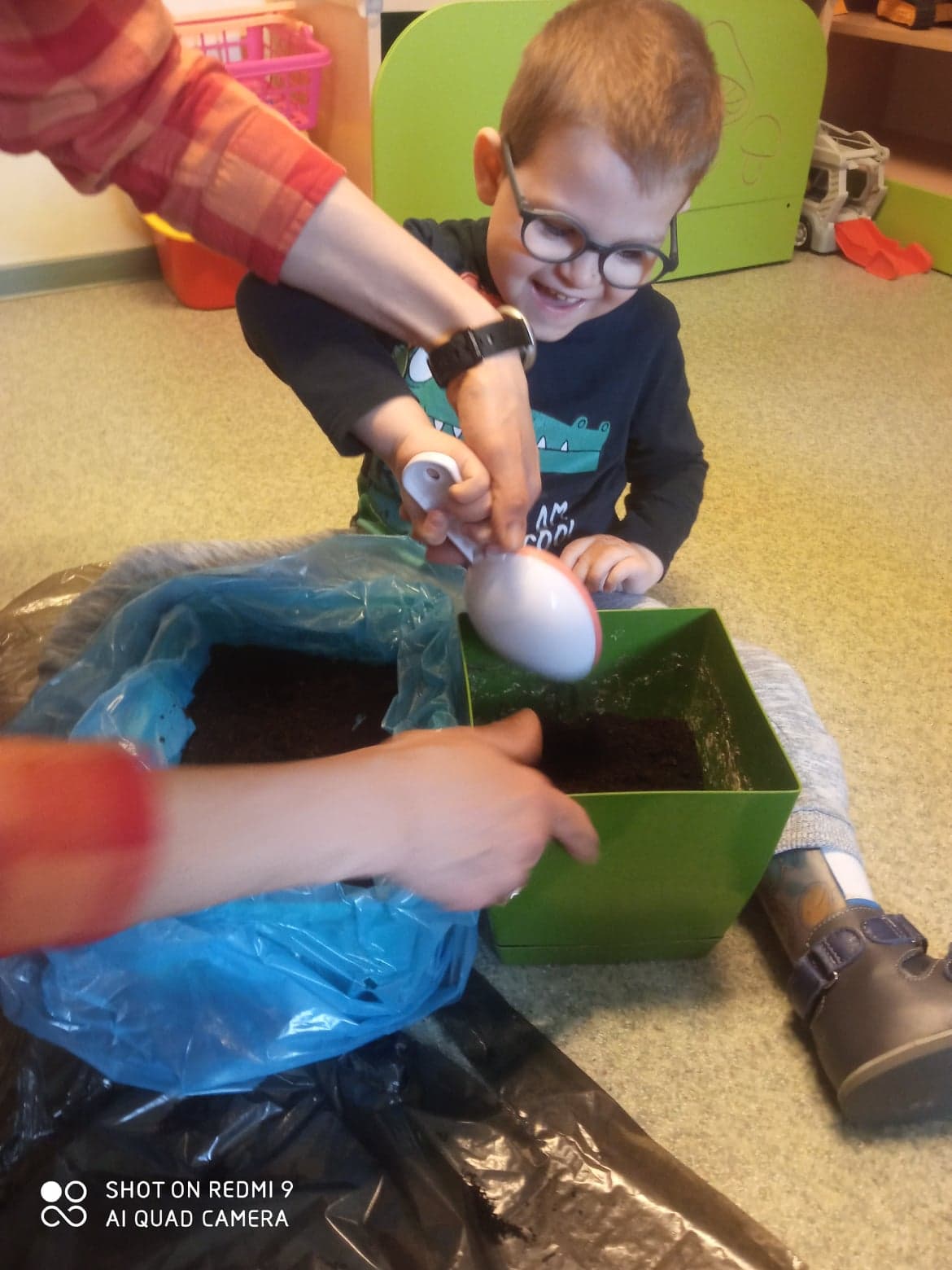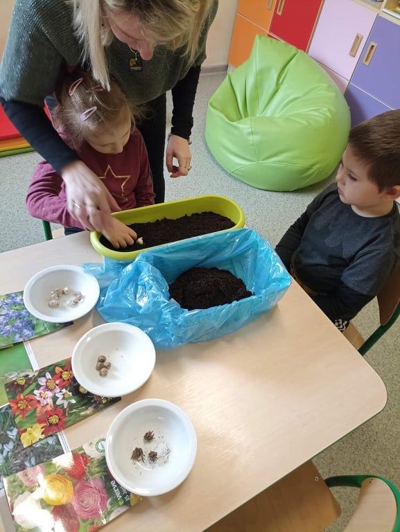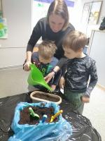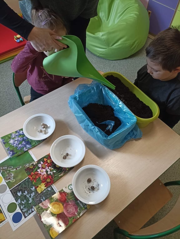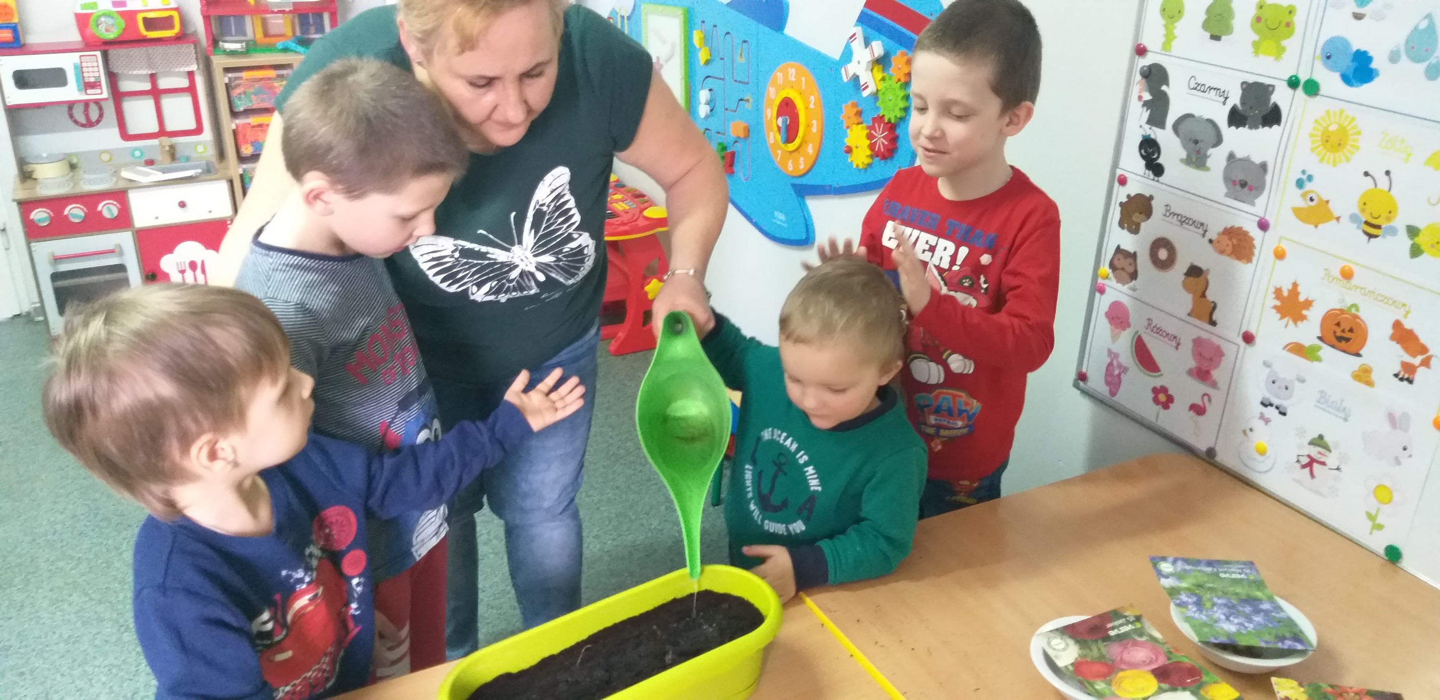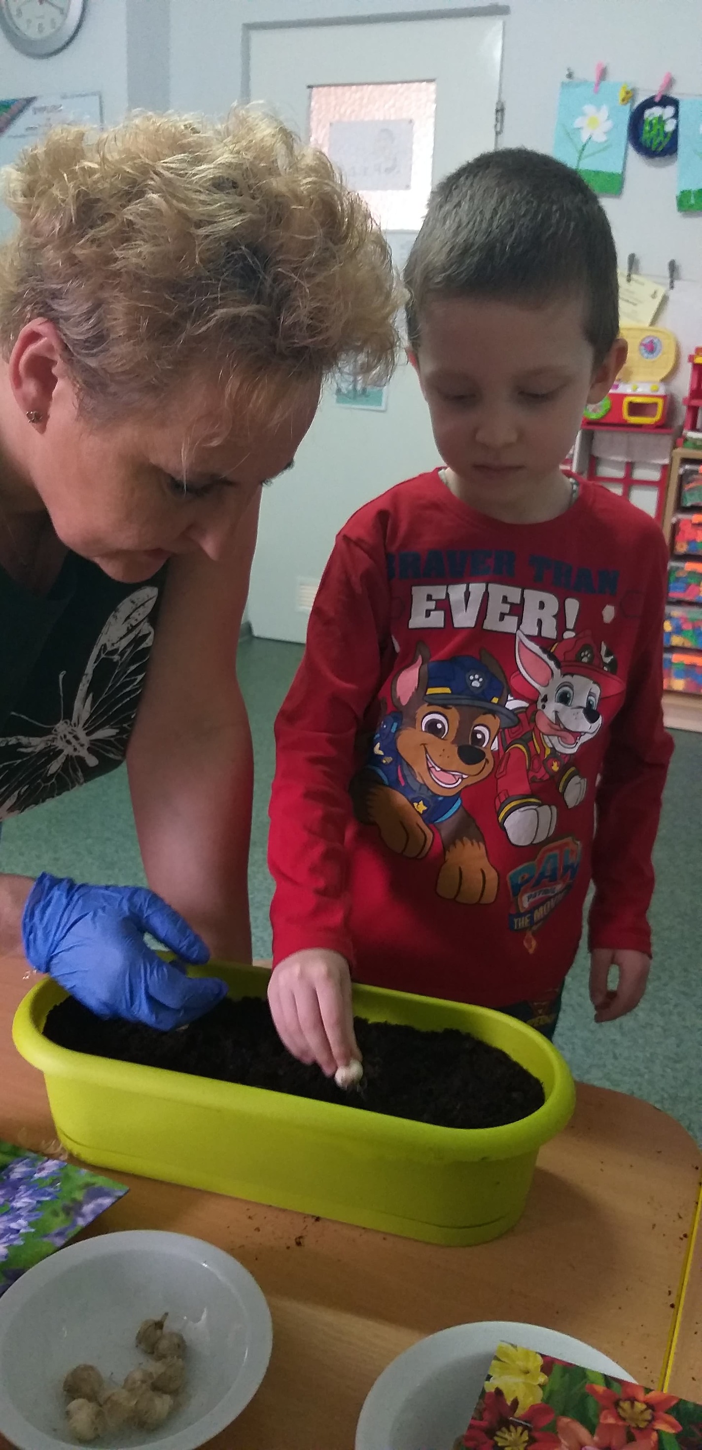Wraz z nadejściem wiosny przedszkolaki postanowiły stworzyć w swoich klasach zielone kąciki. Nasi mali ogrodnicy podczas czwartkowych zajęć dowiedzieli się, co jest niezbędne dla roślin i samodzielnie wsadzili cebulki wiosennych kwiatów. Teraz przed nami codzienne podlewanie i pielęgnowanie roślin. Niecierpliwie czekamy na pierwsze efekty.