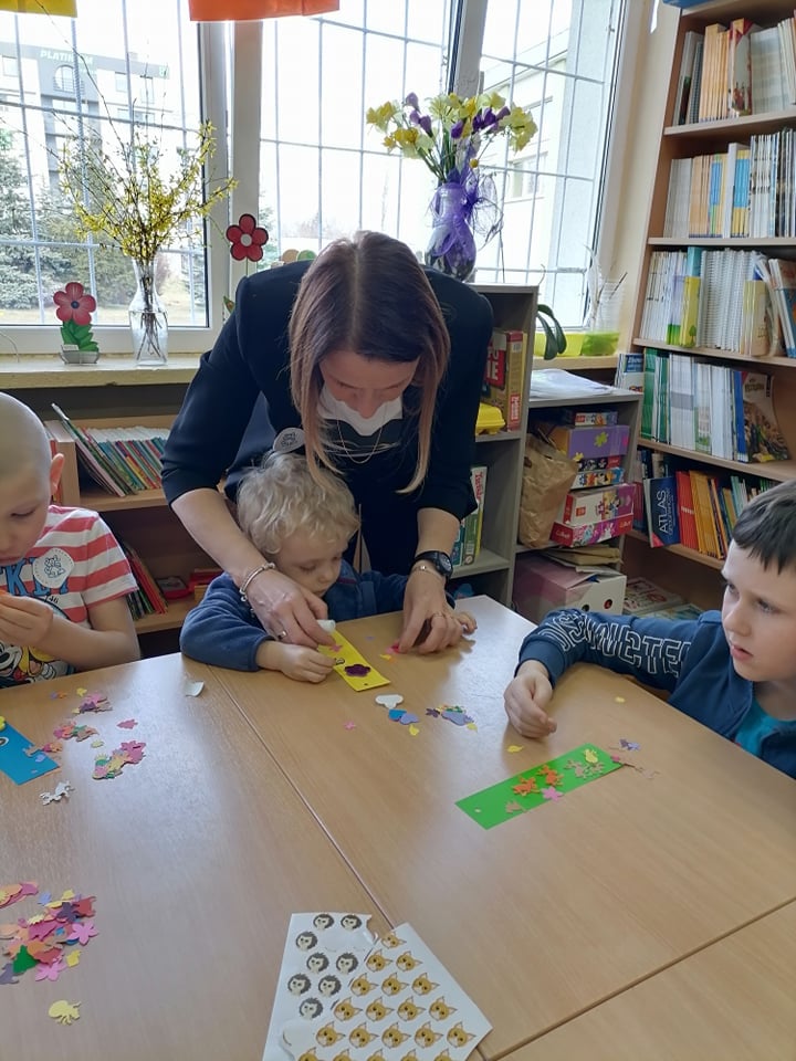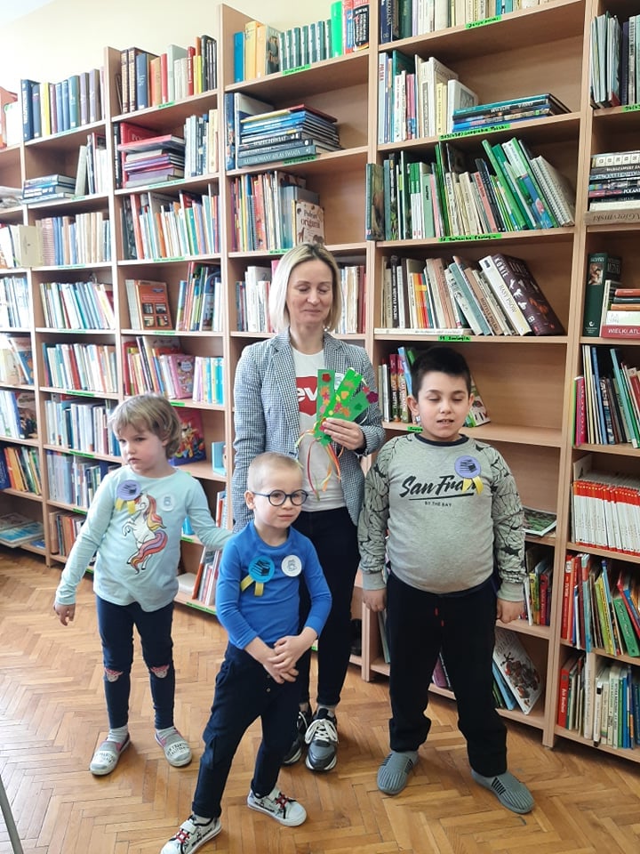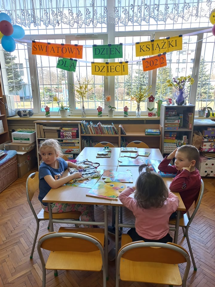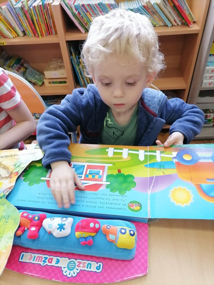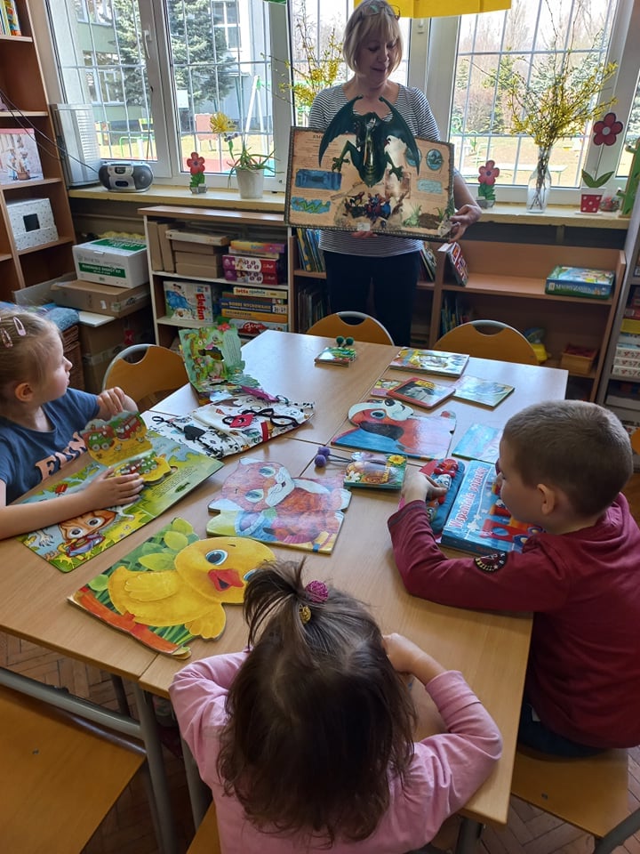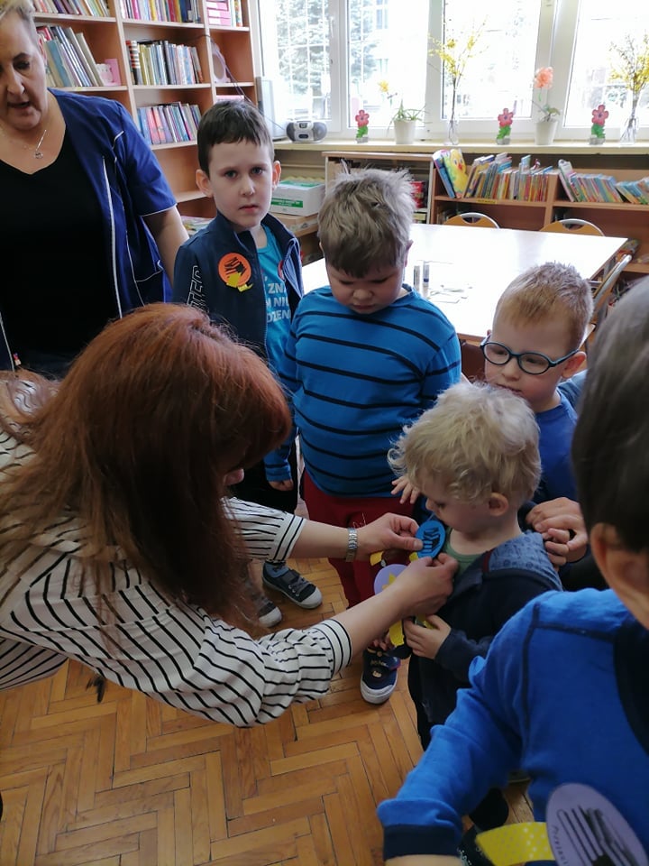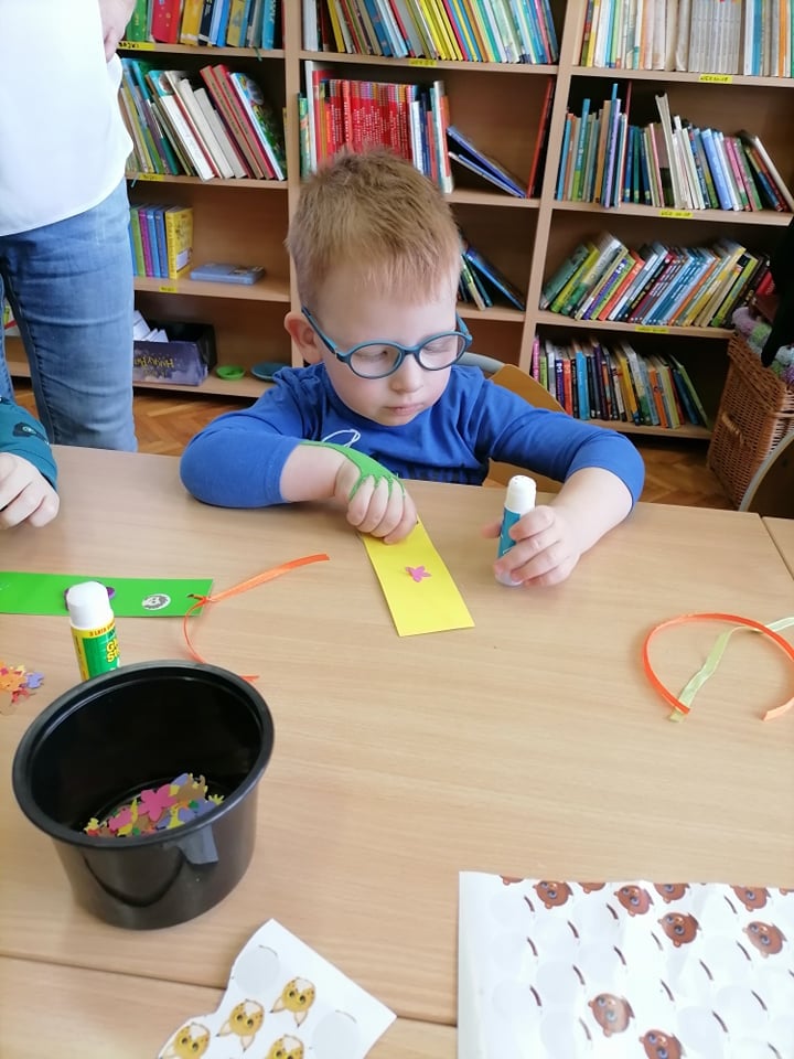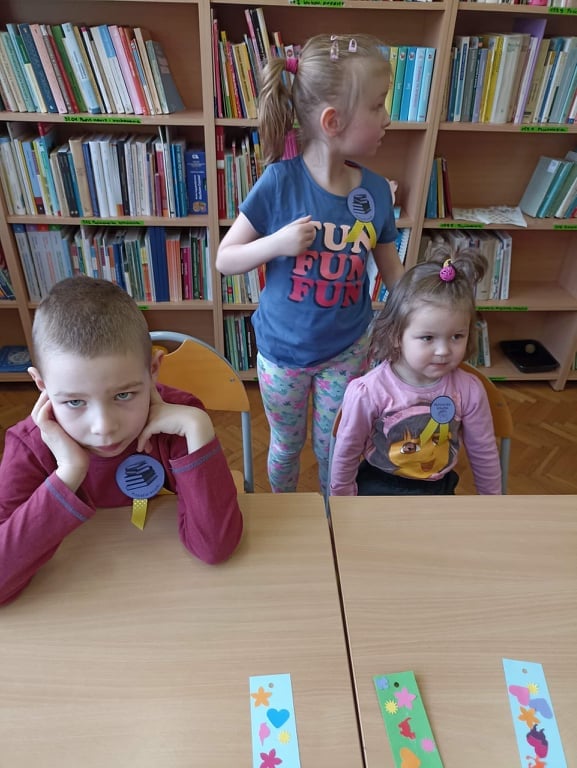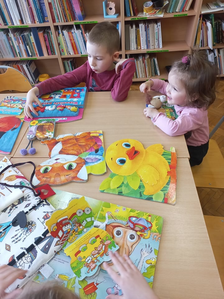W poniedziałek przedszkolaki z SOSW w Zgierzu uczestniczyły w zajęciach w bibliotece z okazji Międzynarodowego Dnia Książki Dziecięcej. Po obejrzeniu książeczek oraz zapoznaniu się z zasadami dbania o książki, dzieci wykonały zakładki oraz otrzymały odznaczenie "przyjaciela książek". Zajęcia bardzo się dzieciom podobały przede wszystkim ze względu na bardzo kolorowe, interaktywne książeczki.