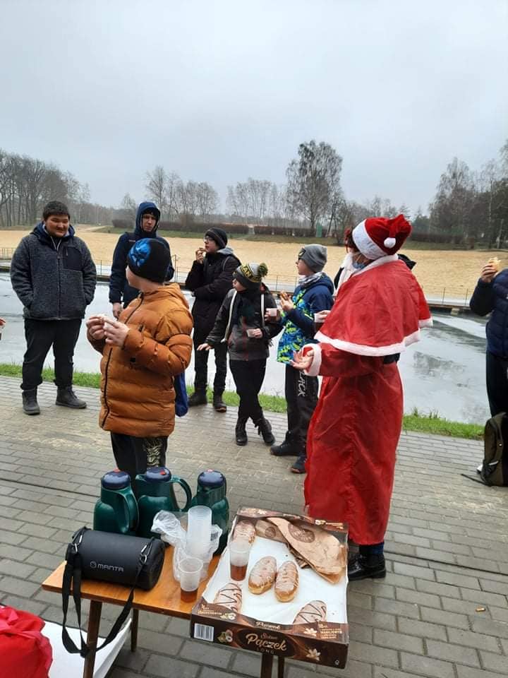 Dzisiaj uczniowie naszej szkoły uczestniczyli w Rajdzie Mikołajkowym po Zgierzu. Trasa liczyła 14 kilometrów. Meta rajdu zorganizowana była na terenie MOSIR Malinka. Tutaj czekało na nas dwóch świętych Mikołajów. Pomimo mało atrakcyjnej aury marsz przebiegał w milej atmosferze. Na mecie nie zabrakło ciepłej herbaty i pączka. Po poczęstunku Mikołaj zadawał pytania i zagadki dotyczące Świat Bożego Narodzenia. Na koniec każdy z uczestników otrzymał paczkę ze słodyczami.